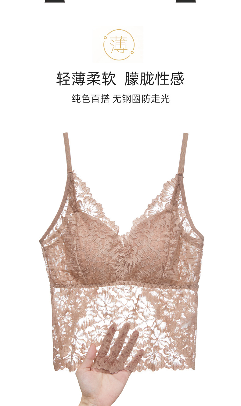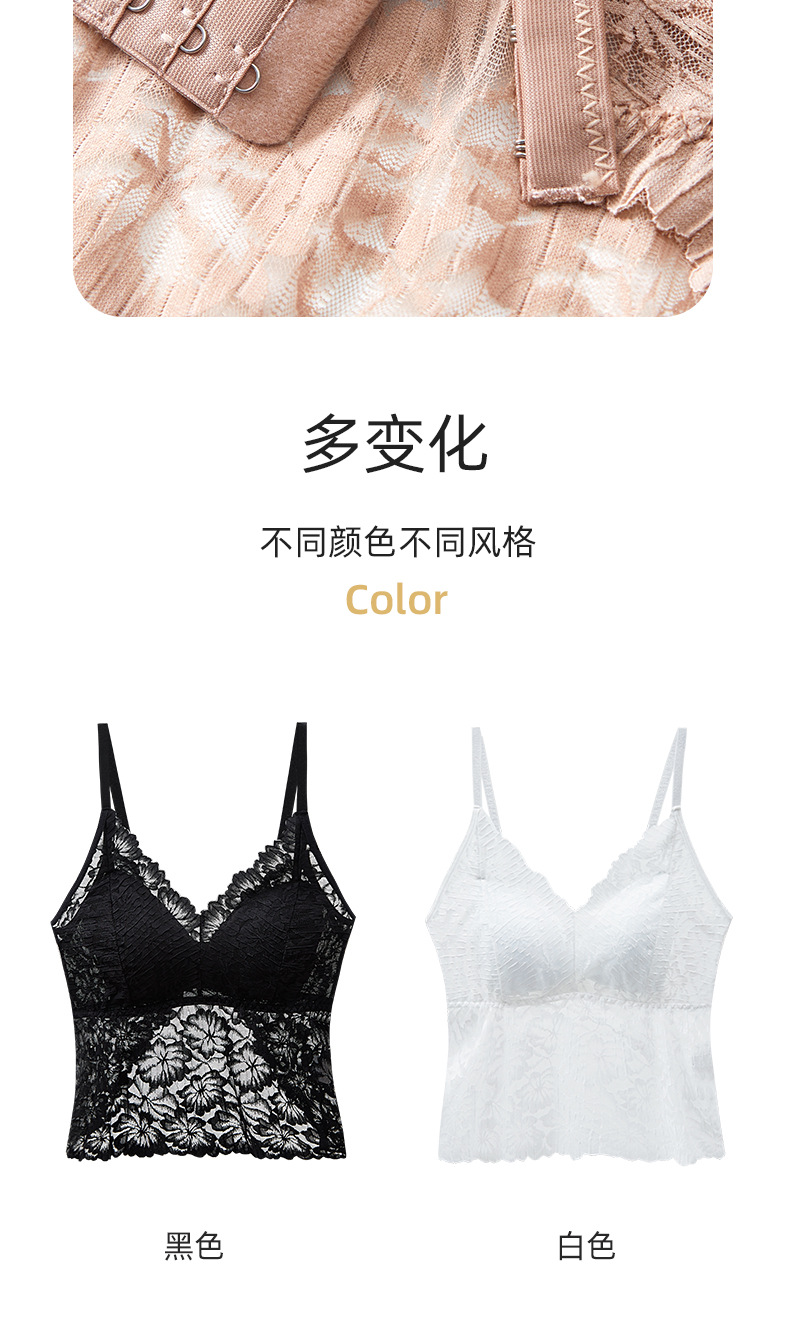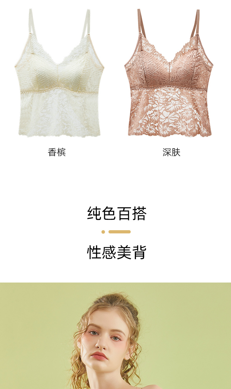 섹시한 레이스 작은 카미 솔 여성 벨트 가슴 패드 통합 스트랩리스 내부 착용 외부 착용 안티 러닝 및 트레이스리스 아름다운 백 속옷스토어 가기