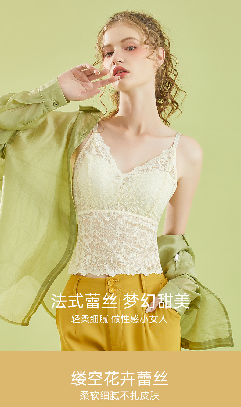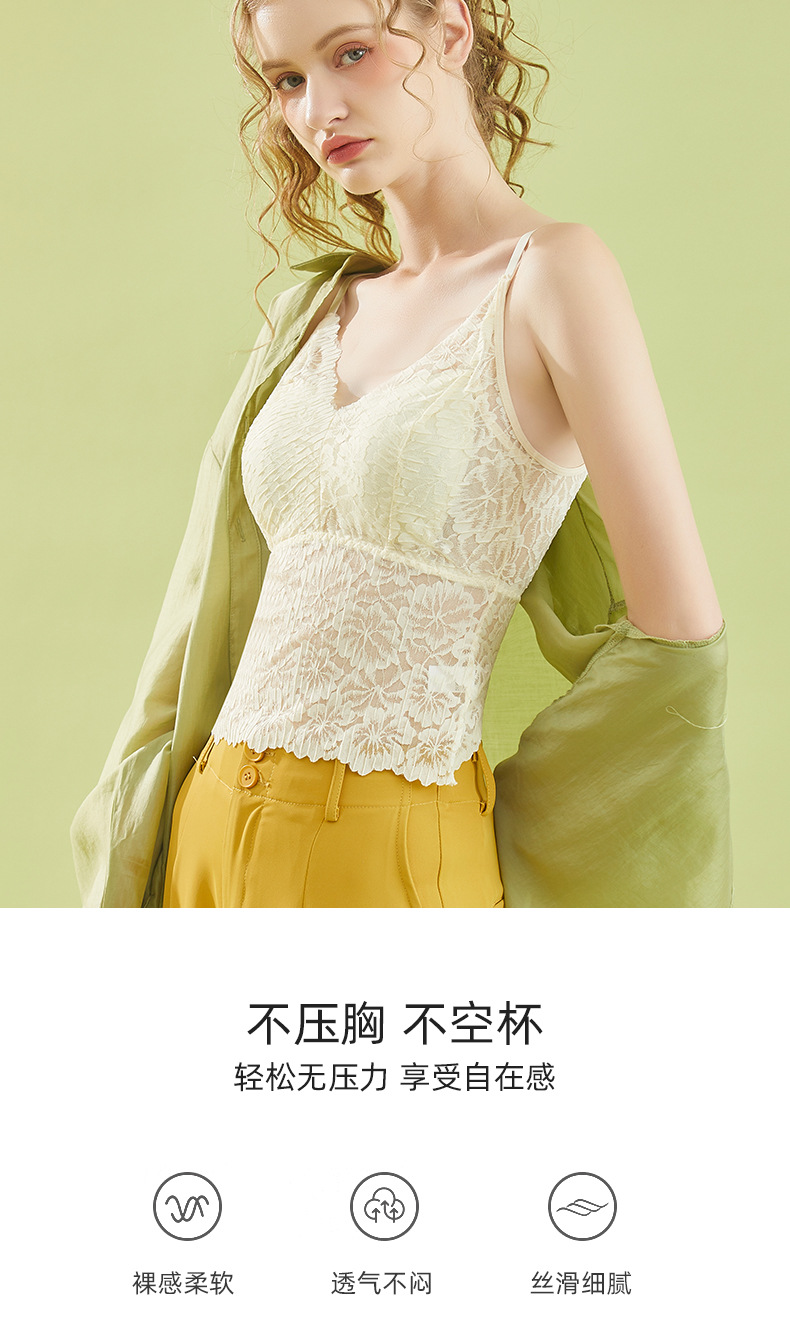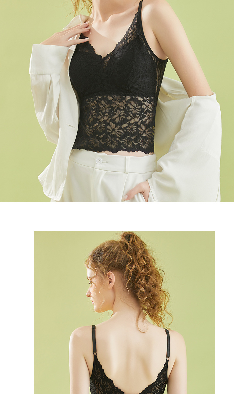 섹시한 레이스 작은 카미 솔 여성 벨트 가슴 패드 통합 스트랩리스 내부 착용 외부 착용 안티 러닝 및 트레이스리스 아름다운 백 속옷스토어 가기