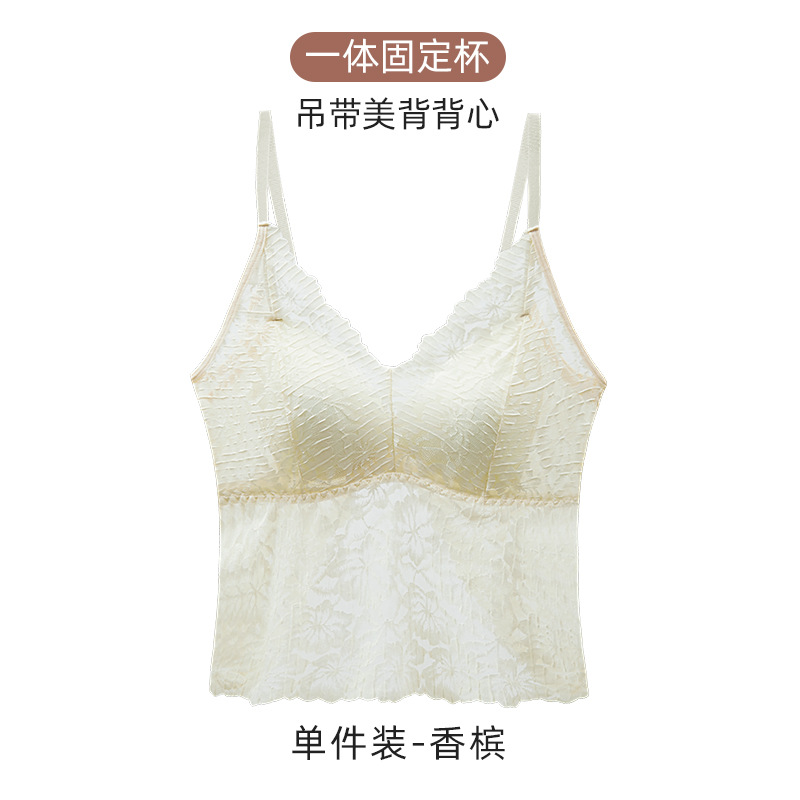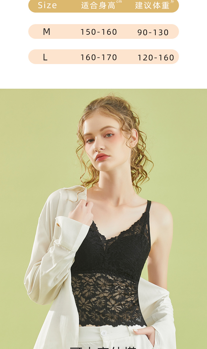 섹시한 레이스 작은 카미 솔 여성 벨트 가슴 패드 통합 스트랩리스 내부 착용 외부 착용 안티 러닝 및 트레이스리스 아름다운 백 속옷
