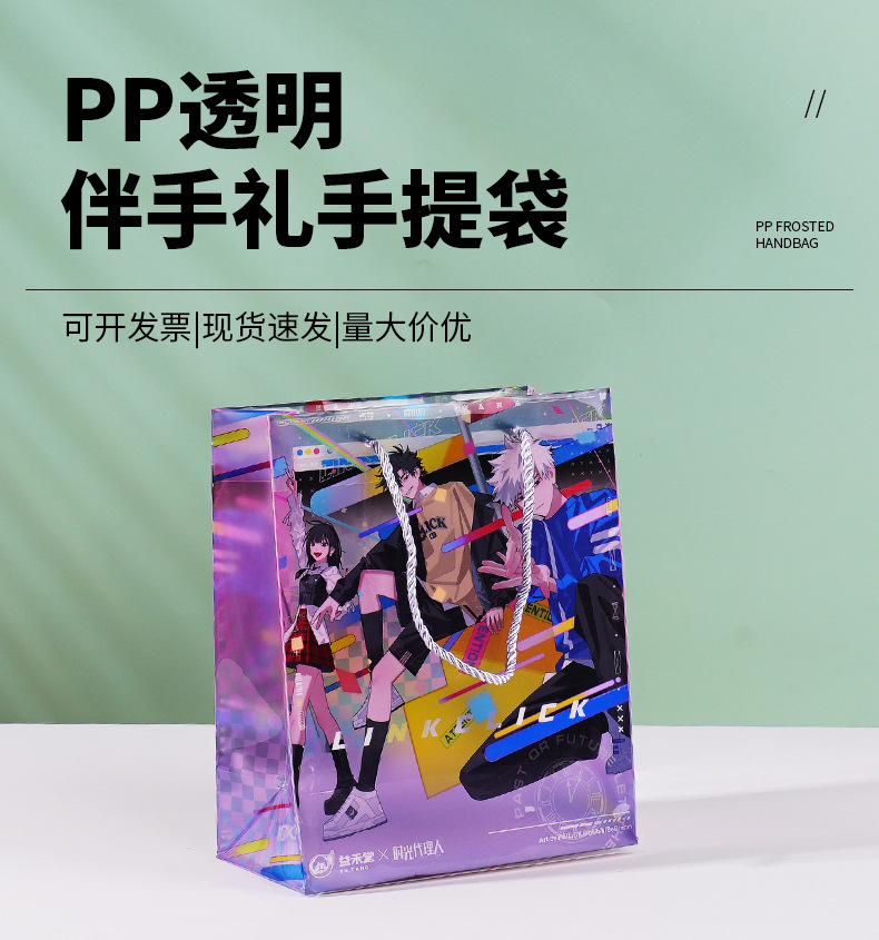 반투명 pp 핸드백 선물 가방 pvc 투명 핸드백 하드 플라스틱 방수 손으로 들고있는 웨딩 사탕 컬러 포장 사용자 정의스토어 가기