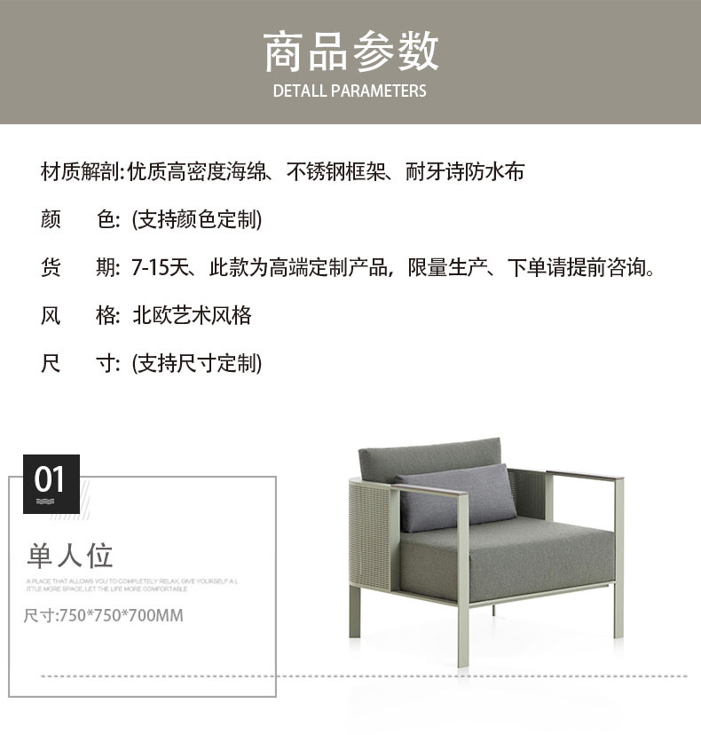 户外不锈钢沙发庭院阳台休闲防水防晒桌椅别墅酒店小区售楼部组合