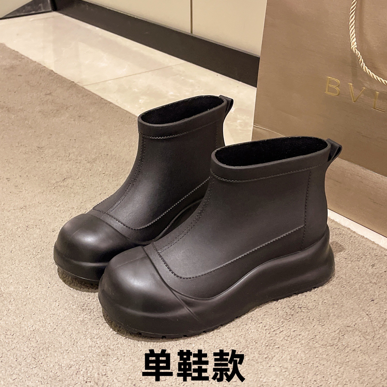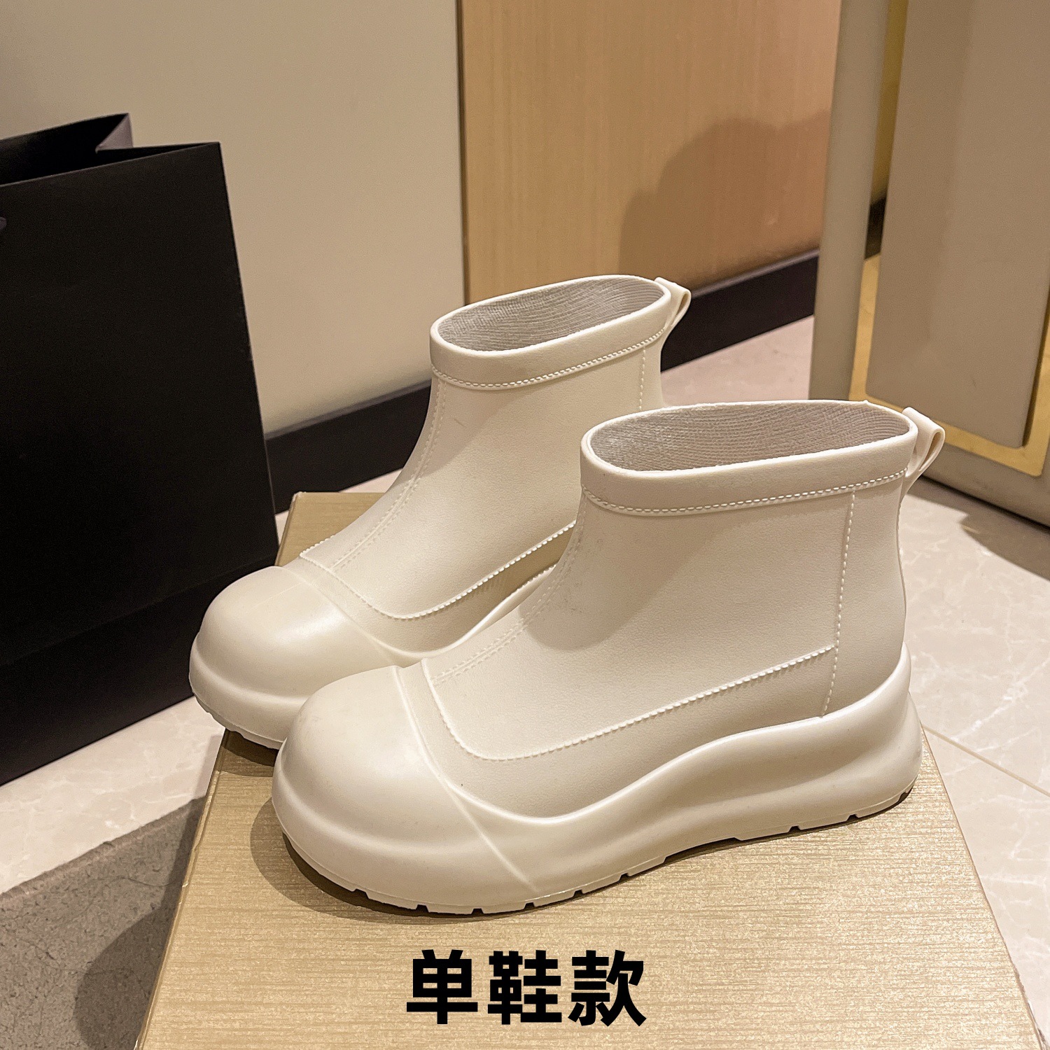[헤어 세대] 일본 온라인 빨간 비 신발 여성 짧은 튜브 외부 착용 패션 모조 가죽 여성 레인 부츠 방수 신발 여성스토어 가기