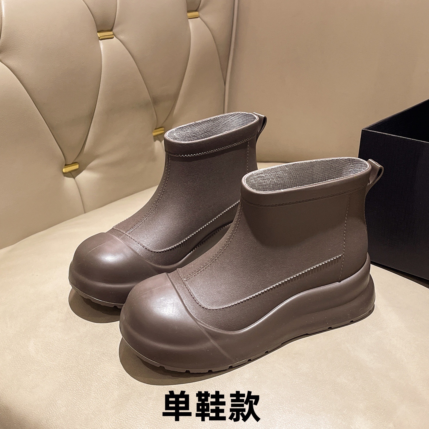 [헤어 세대] 일본 온라인 빨간 비 신발 여성 짧은 튜브 외부 착용 패션 모조 가죽 여성 레인 부츠 방수 신발 여성