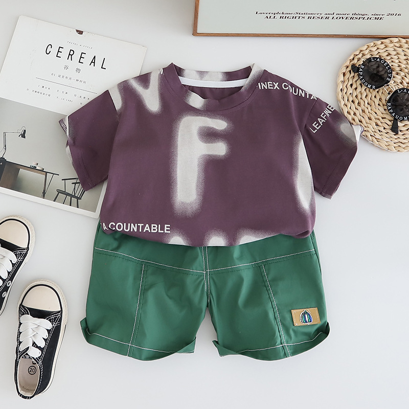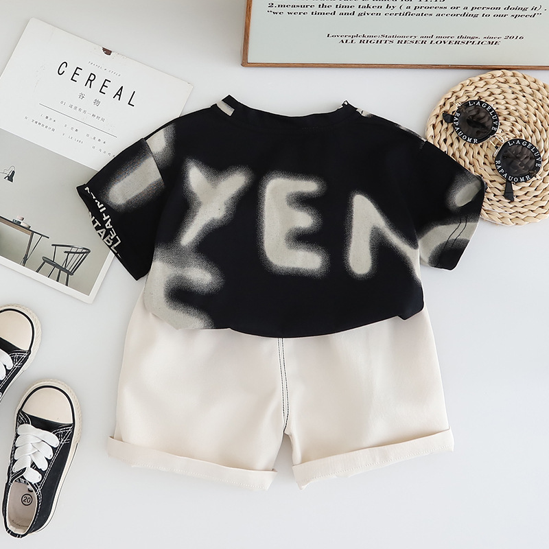 어린이 의류 도매 공장 여름 어린이 세트 영어 인쇄 소년 세트 얇은 어린이 짧은 소매 반바지 조수