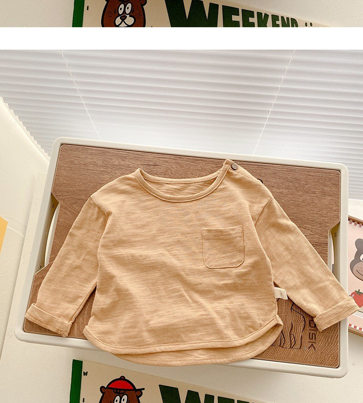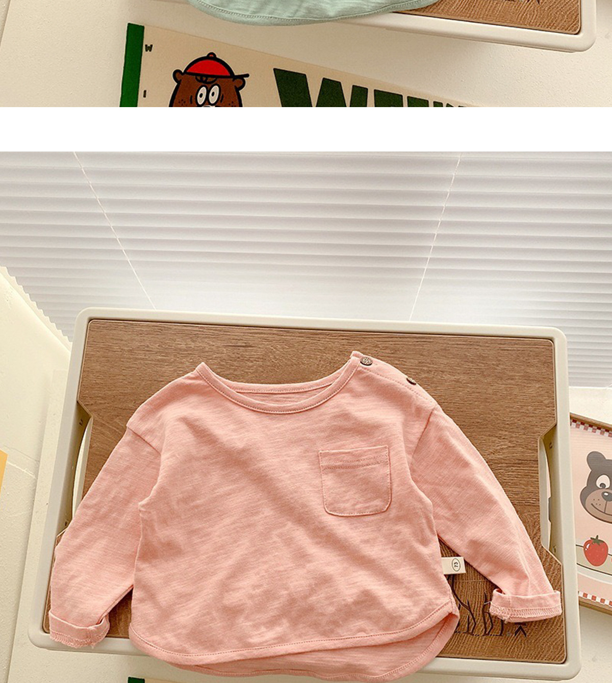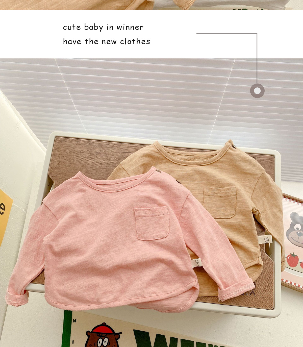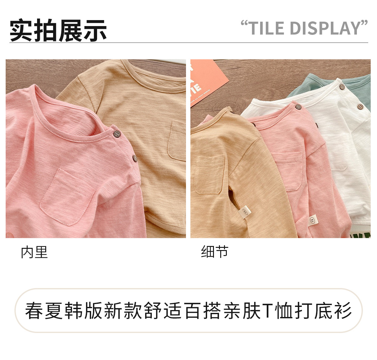 어린이 슬러브면 티셔츠 0-5 세 가을 한국 아동복 소년 단색 기본 셔츠 아기 가을 패션 한국어 버전스토어 가기