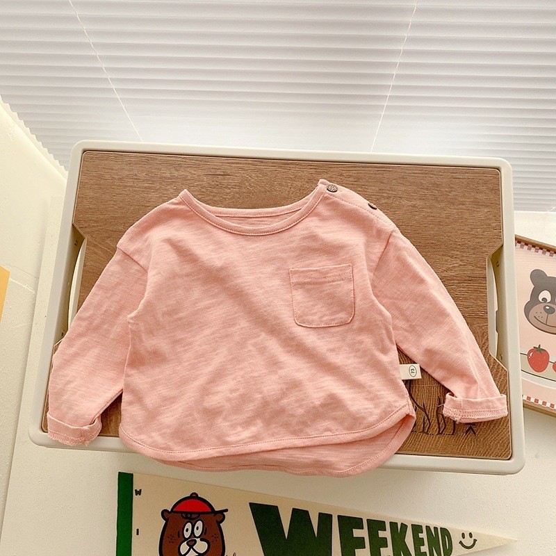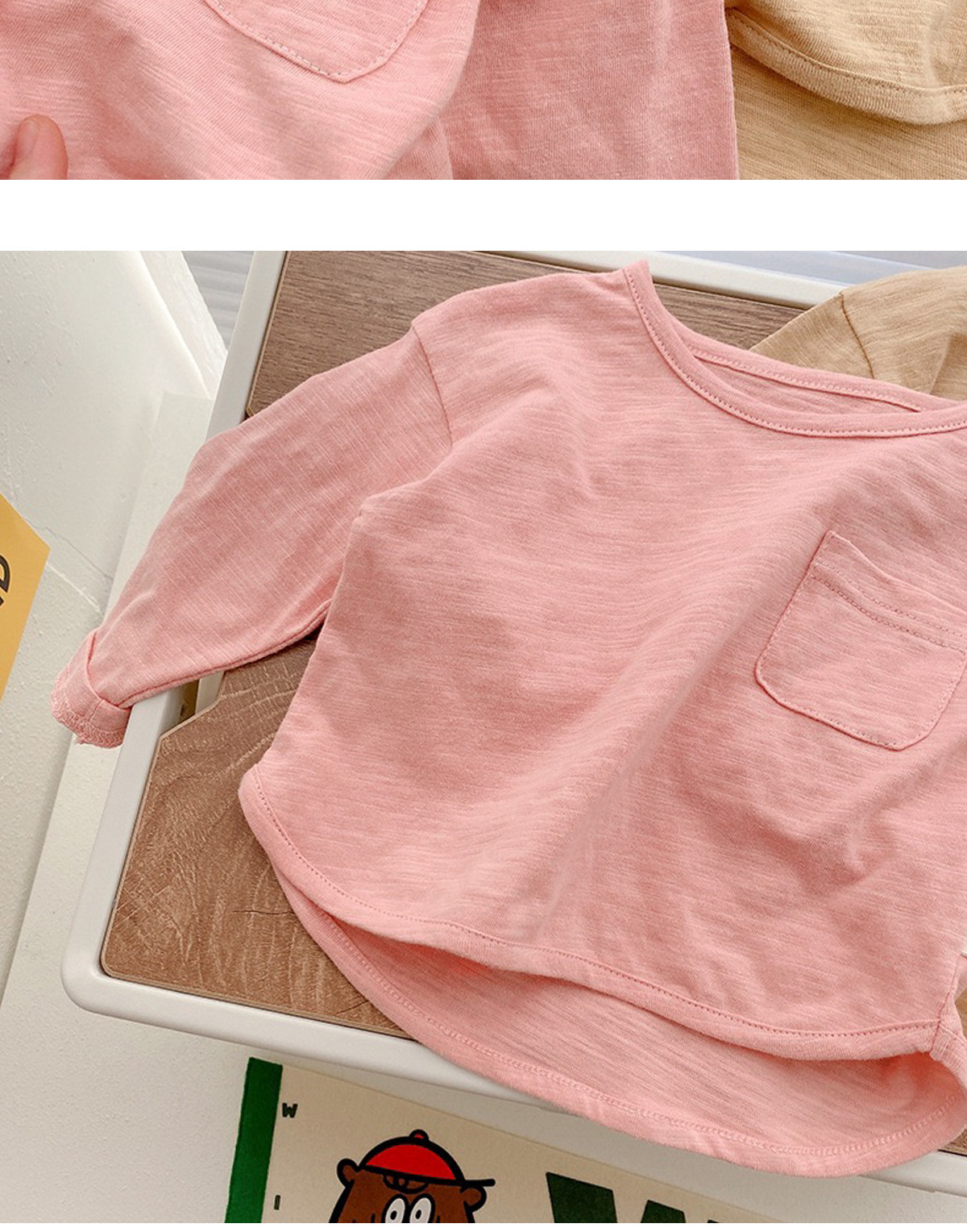 어린이 슬러브면 티셔츠 0-5 세 가을 한국 아동복 소년 단색 기본 셔츠 아기 가을 패션 한국어 버전