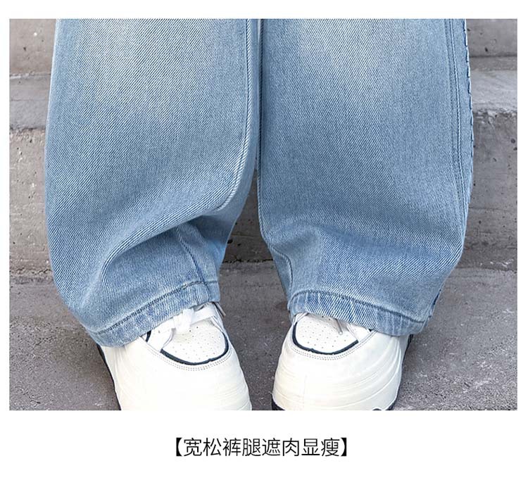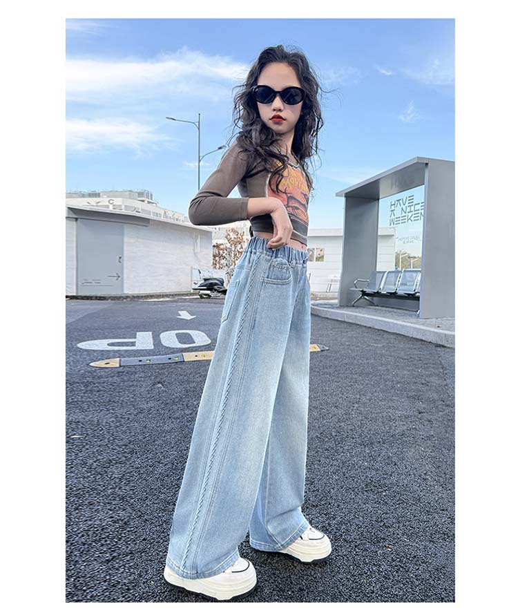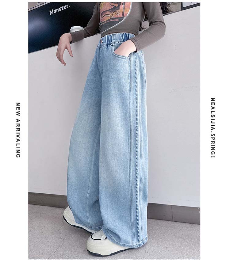 소녀 2025 봄 새로운 데님 넓은 다리 바지 어린이 봄과 가을 바지 큰 어린이 느슨한 패션 스트레이트 바지스토어 가기