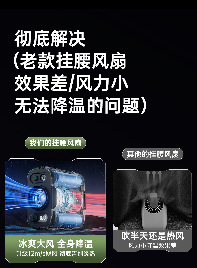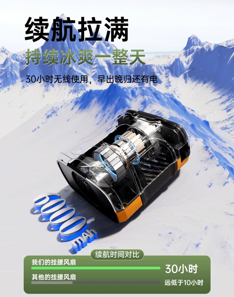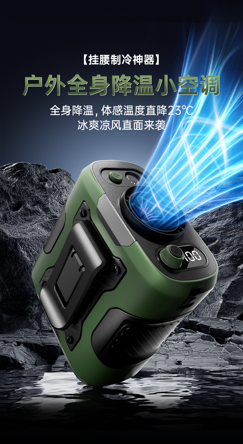2025 새로운 고속 허리 팬 USB 휴대용 충전 보물 클립 허리 야외 사이트 작은 팬스토어 가기