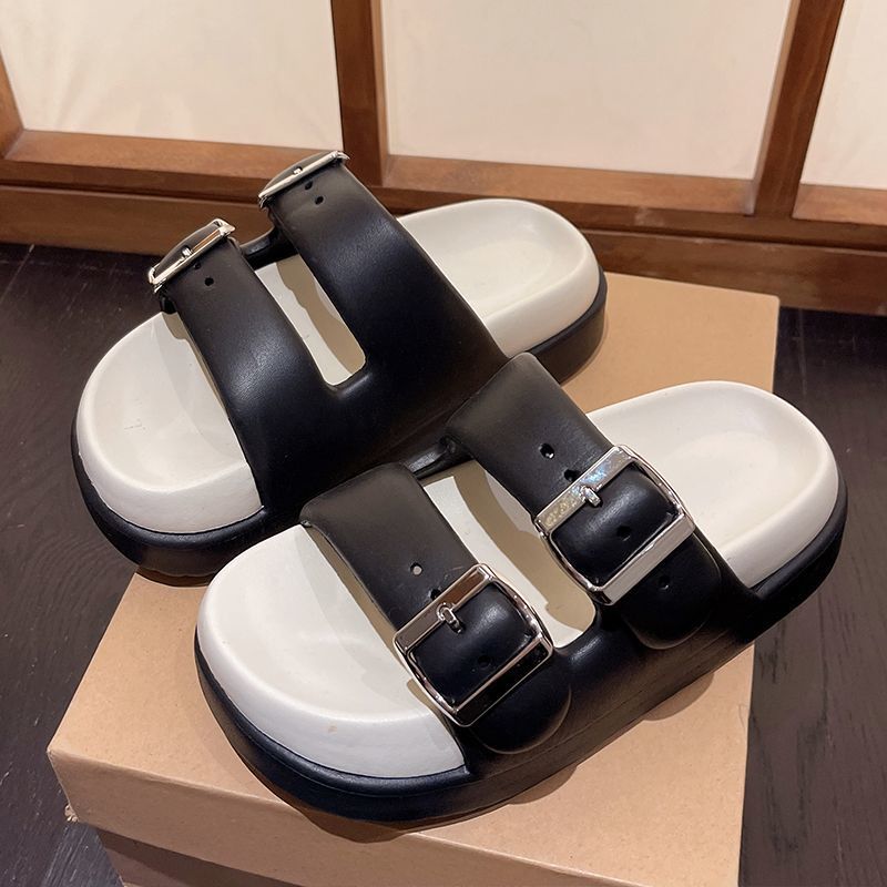 새로운 여성 신발 EVA 두꺼운 밑창 Birkenth 슬리퍼 더블 브레스트 2 자 슬립 온 여성용 두꺼운 밑창 아웃웨어 크로스 보더 슬리퍼