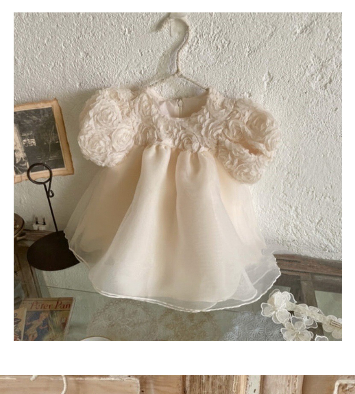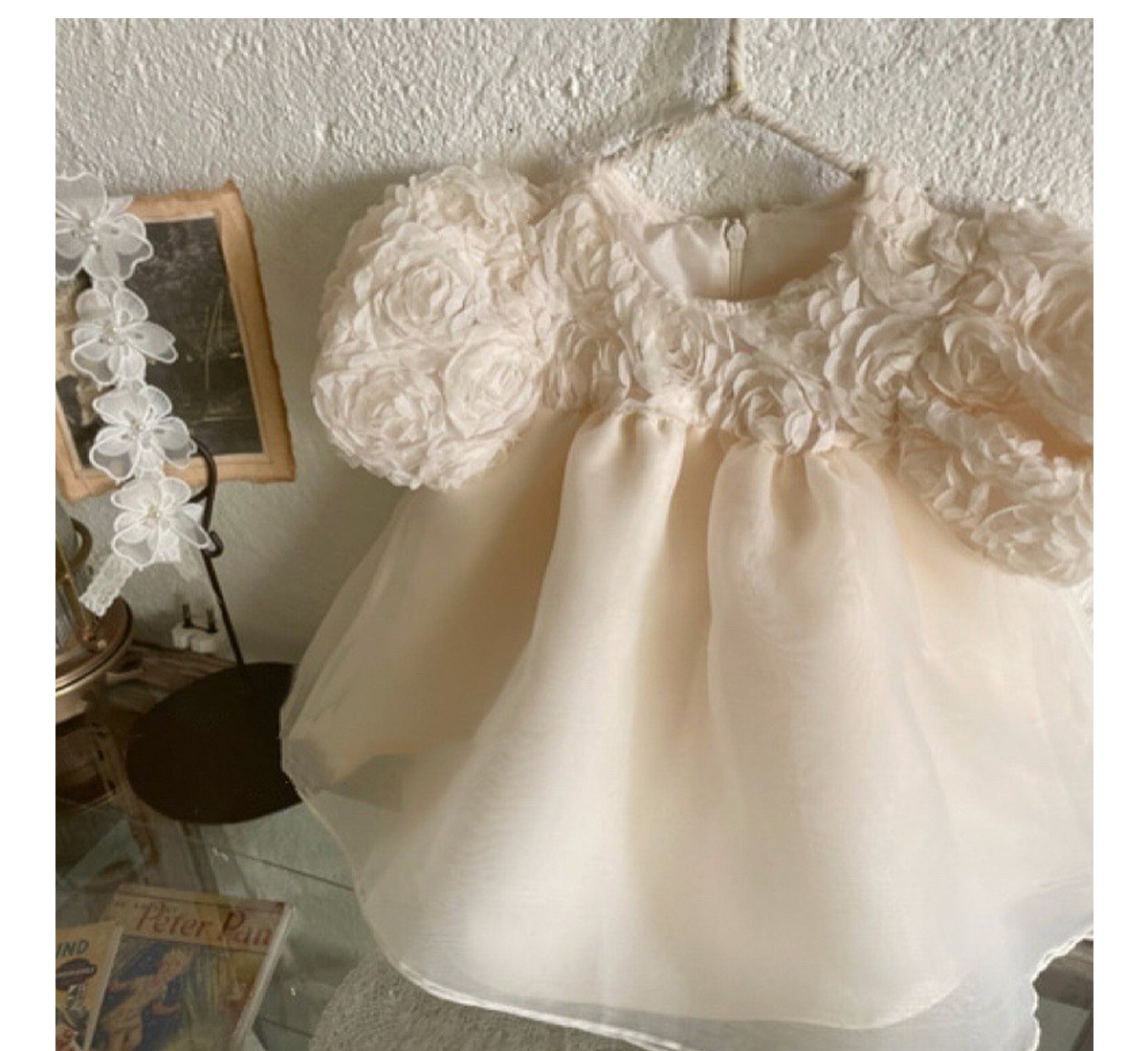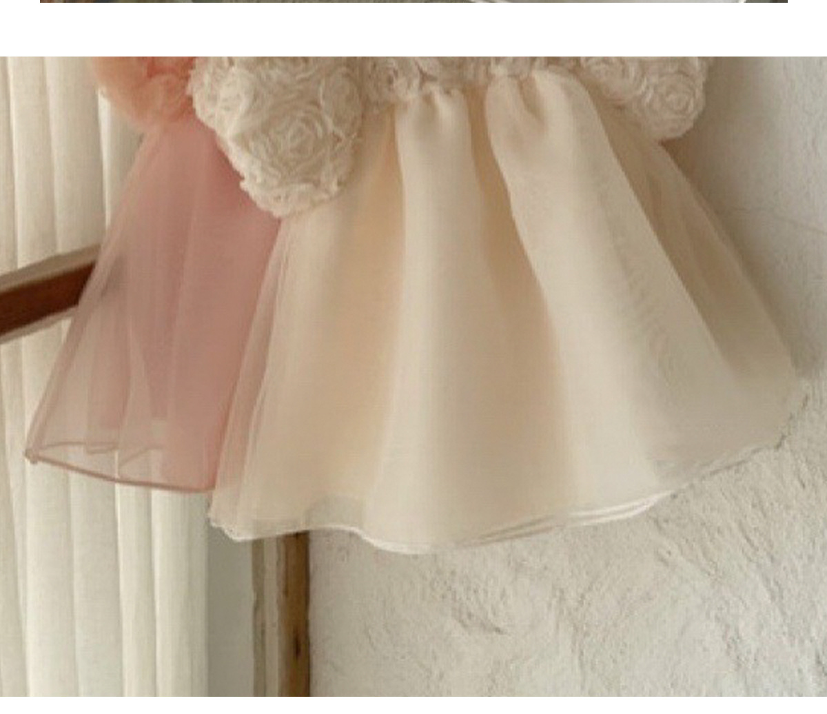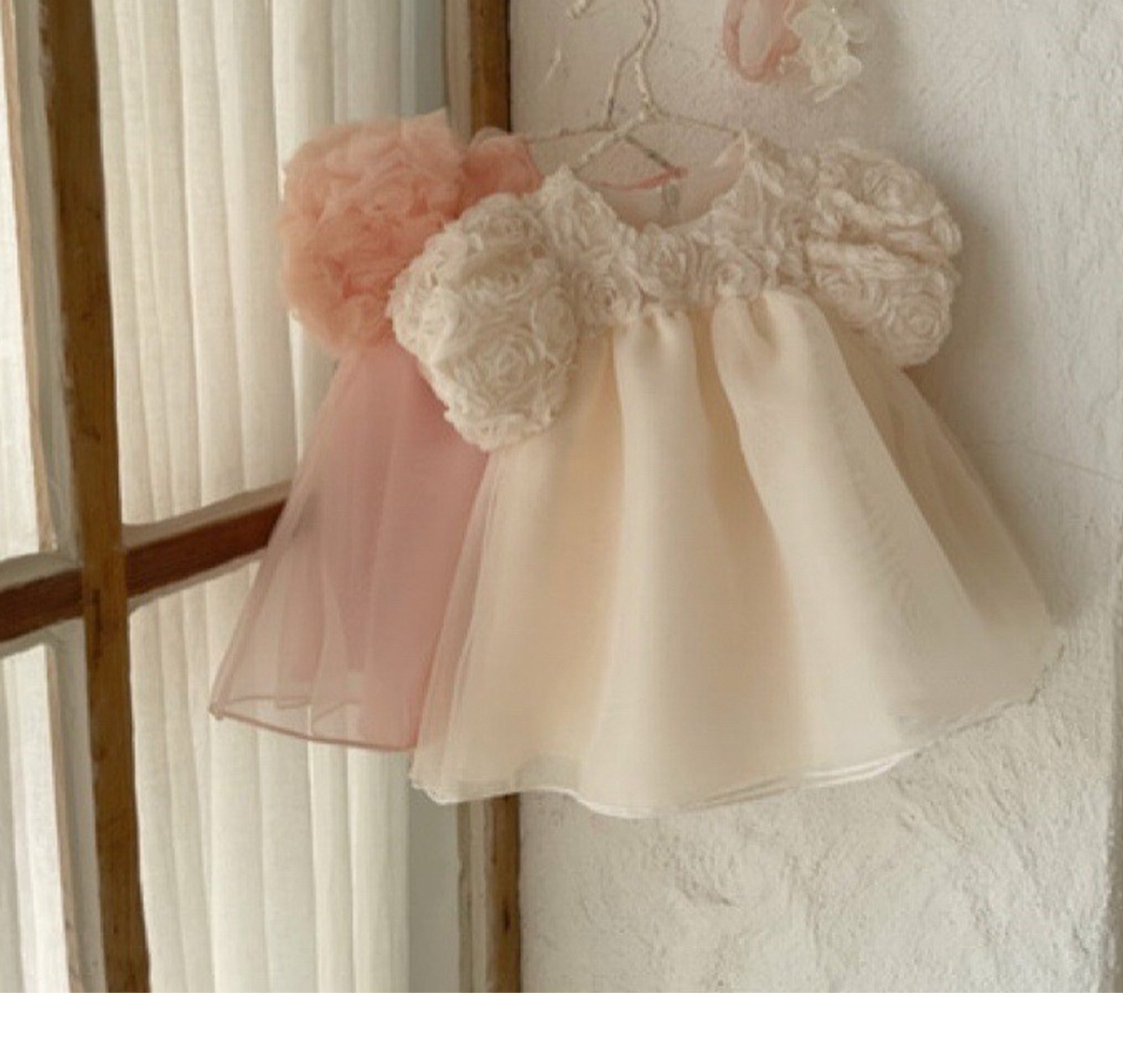 2025 봄과 가을 유아 처녀 아기 달콤한 공주 3 차원 꽃 메쉬 귀 칼라 긴 소매 토끼 원피스 가방 방귀 옷스토어 가기