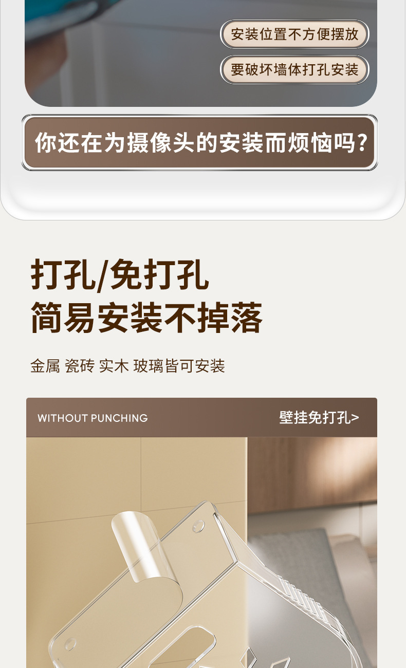 벽걸이형 무타공 가정용 카메라 거치대, 카메라용 무타공 접착식 트레이스토어 가기