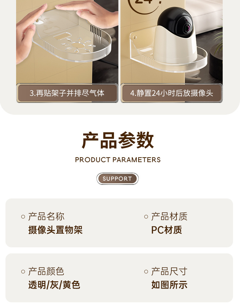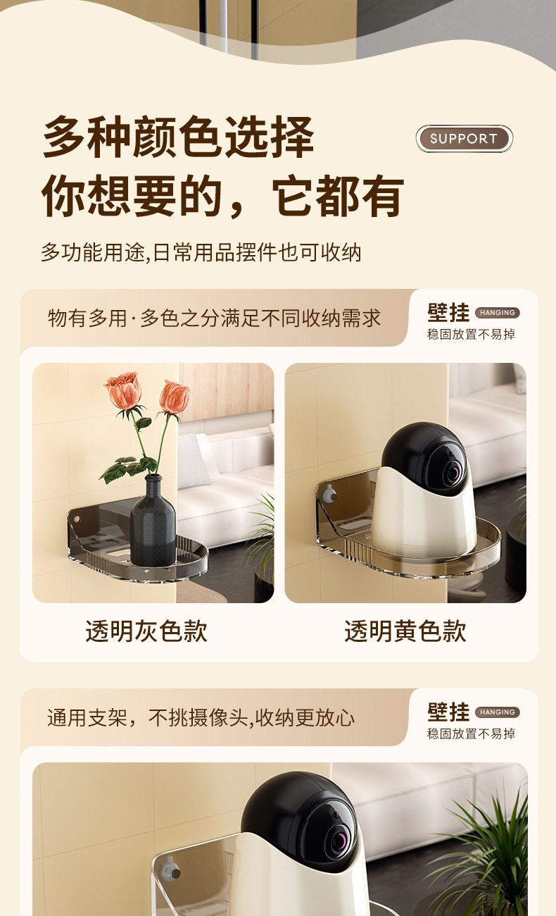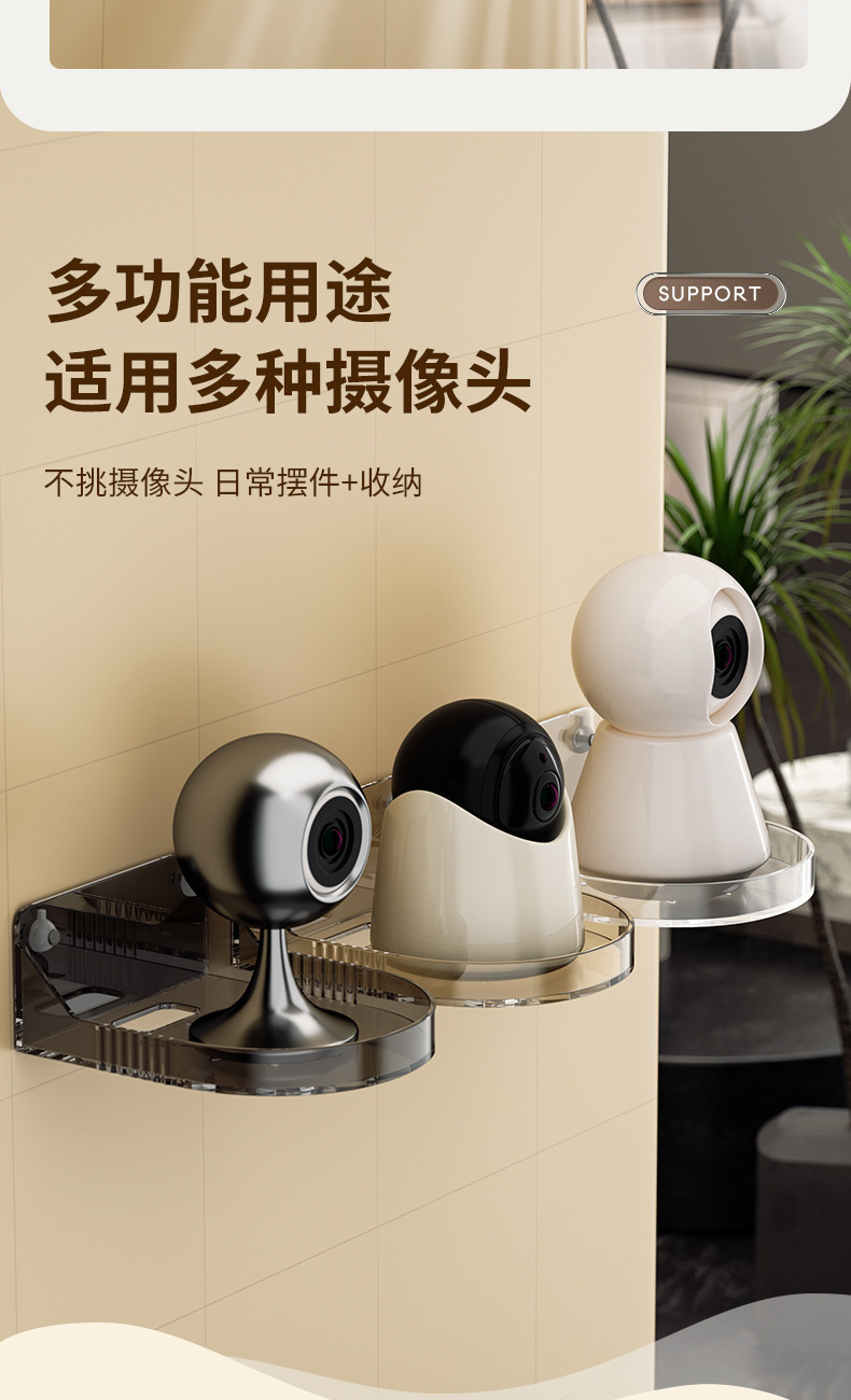 监控支架壁挂式免打孔家用摄像头置物架摄像机无需打孔粘贴式托盘