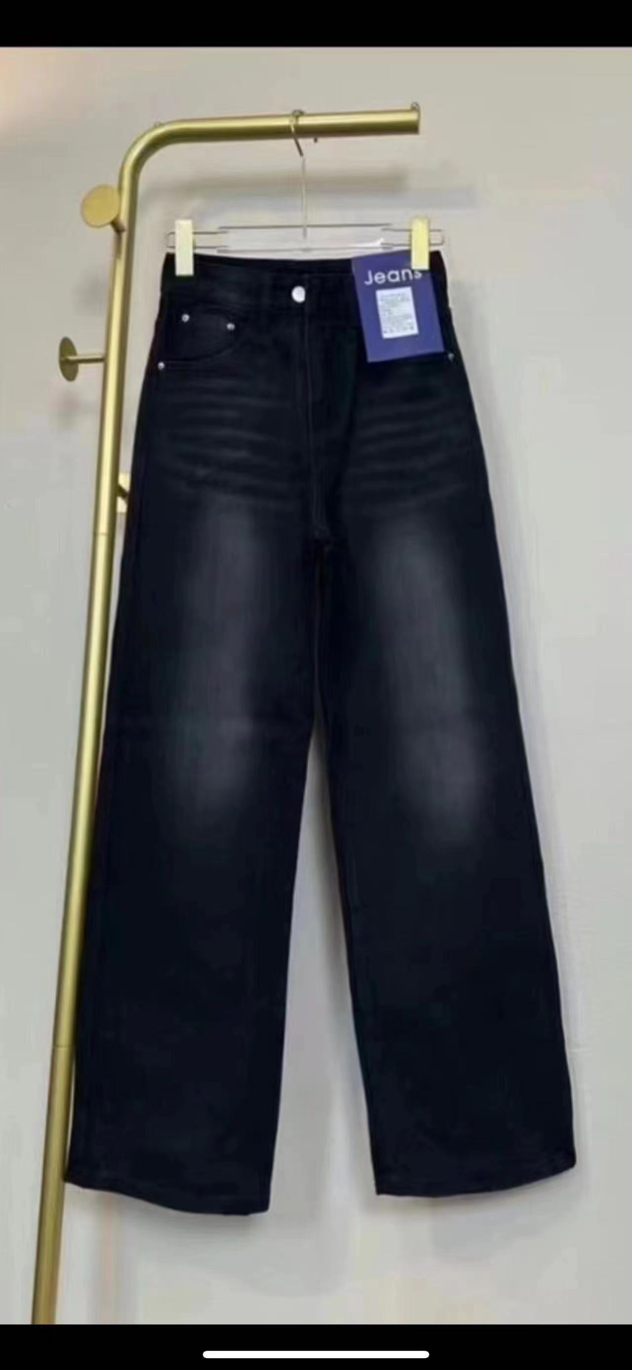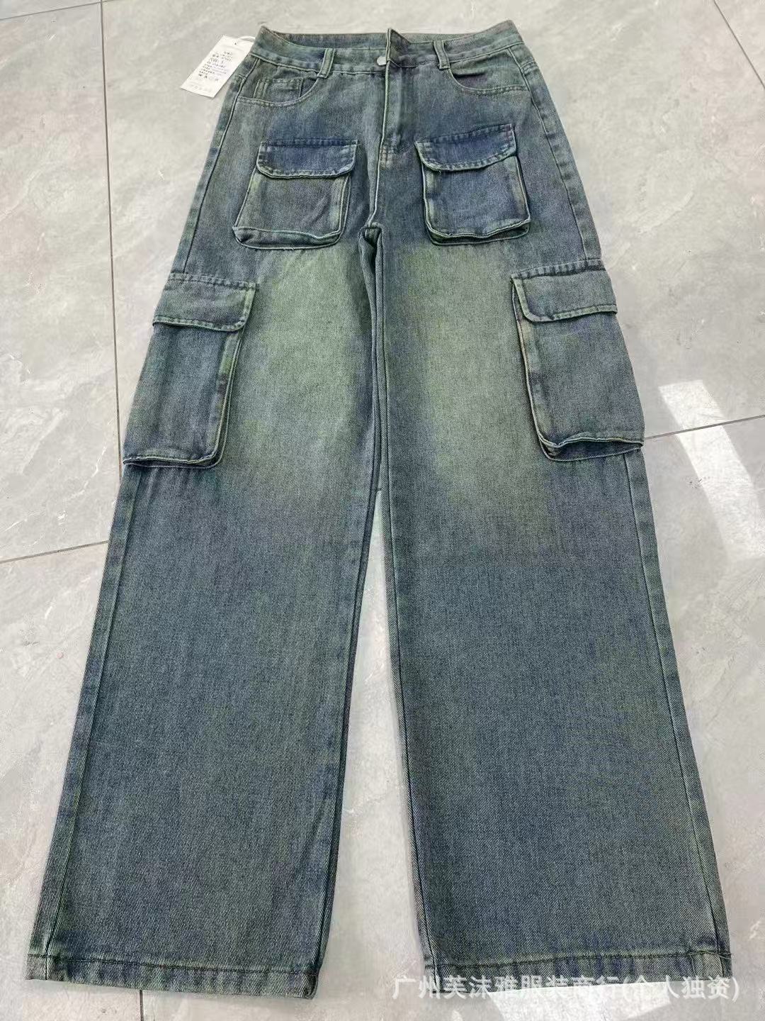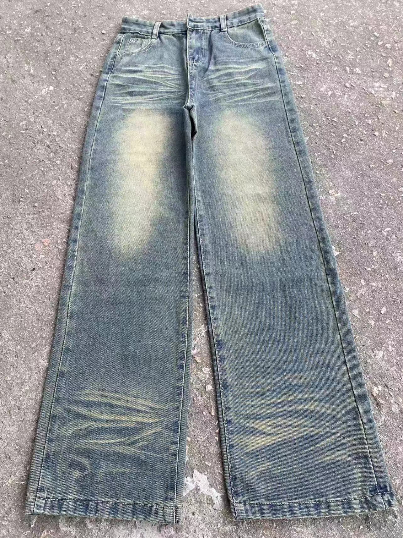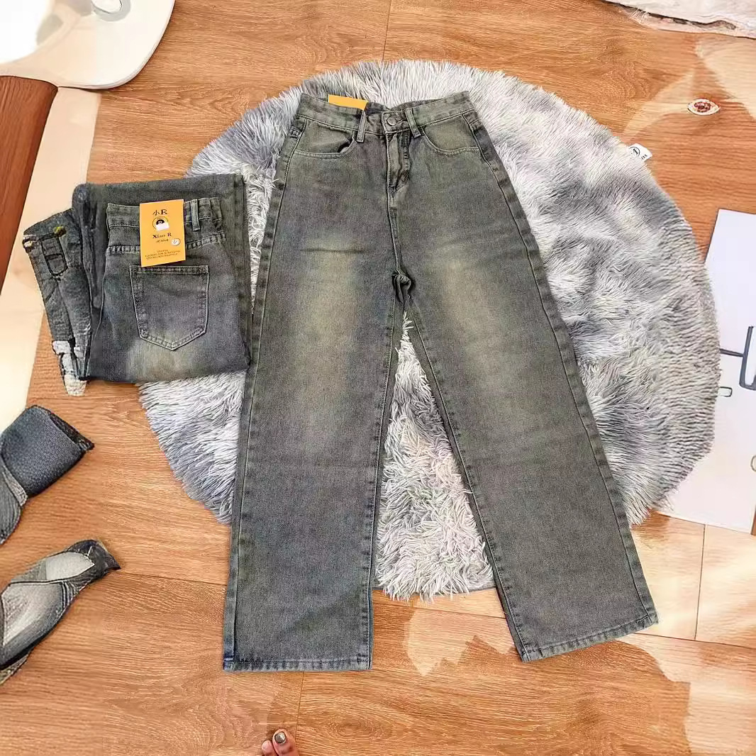 시멘트 그레이 높은 허리 넓은 다리 청바지 여성의 2025 봄과 가을 수 놓은 슬리밍 좁은 버전 레트로 바지스토어 가기