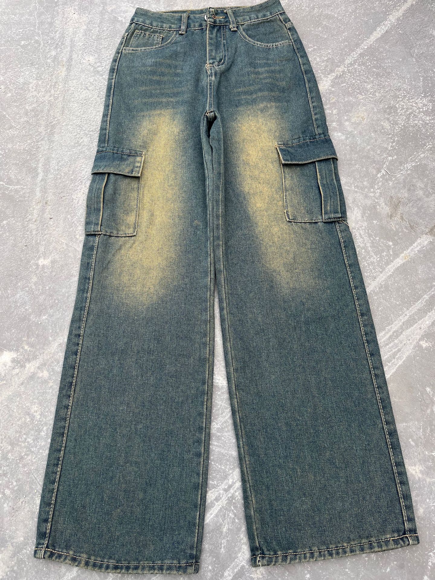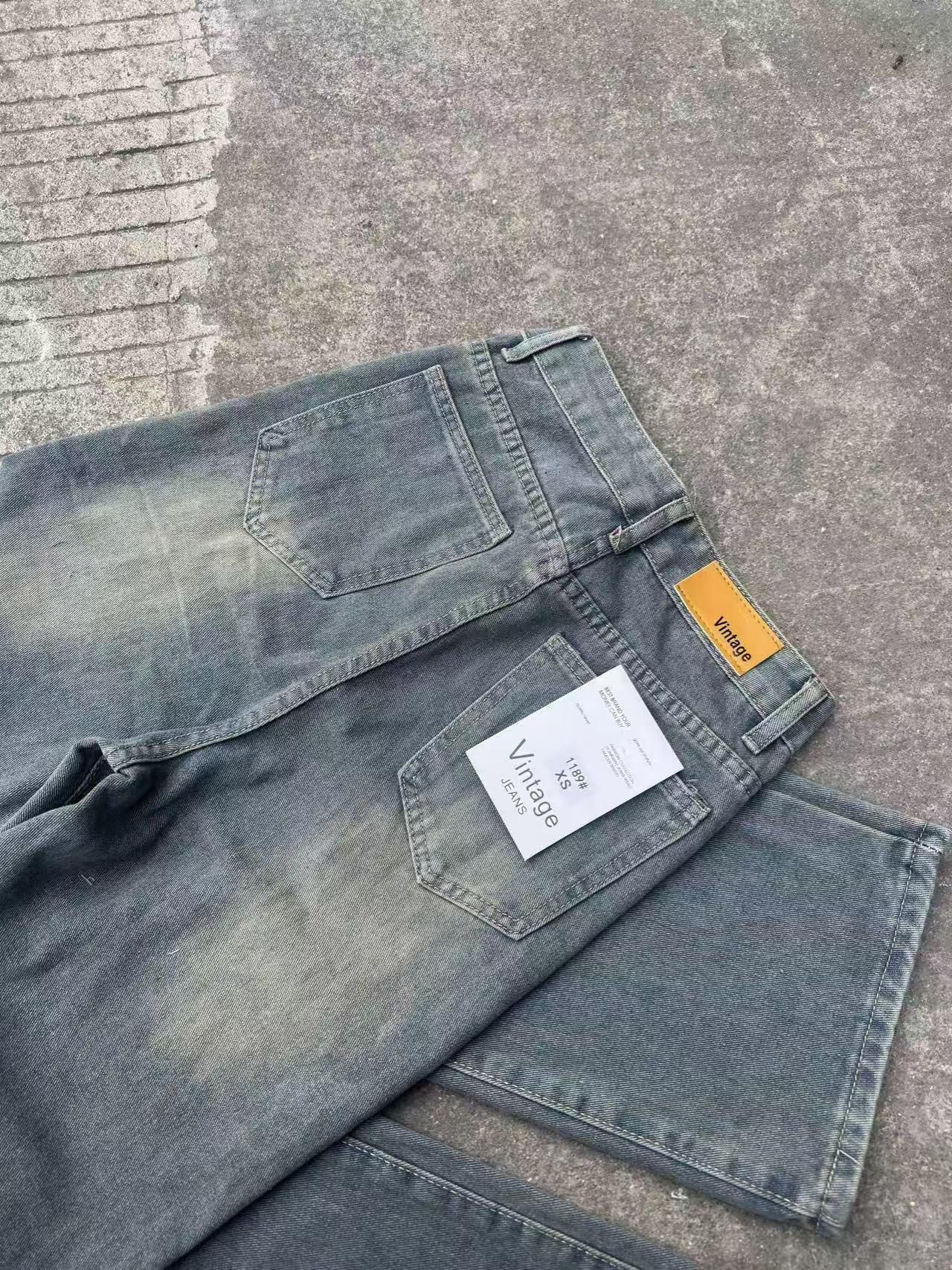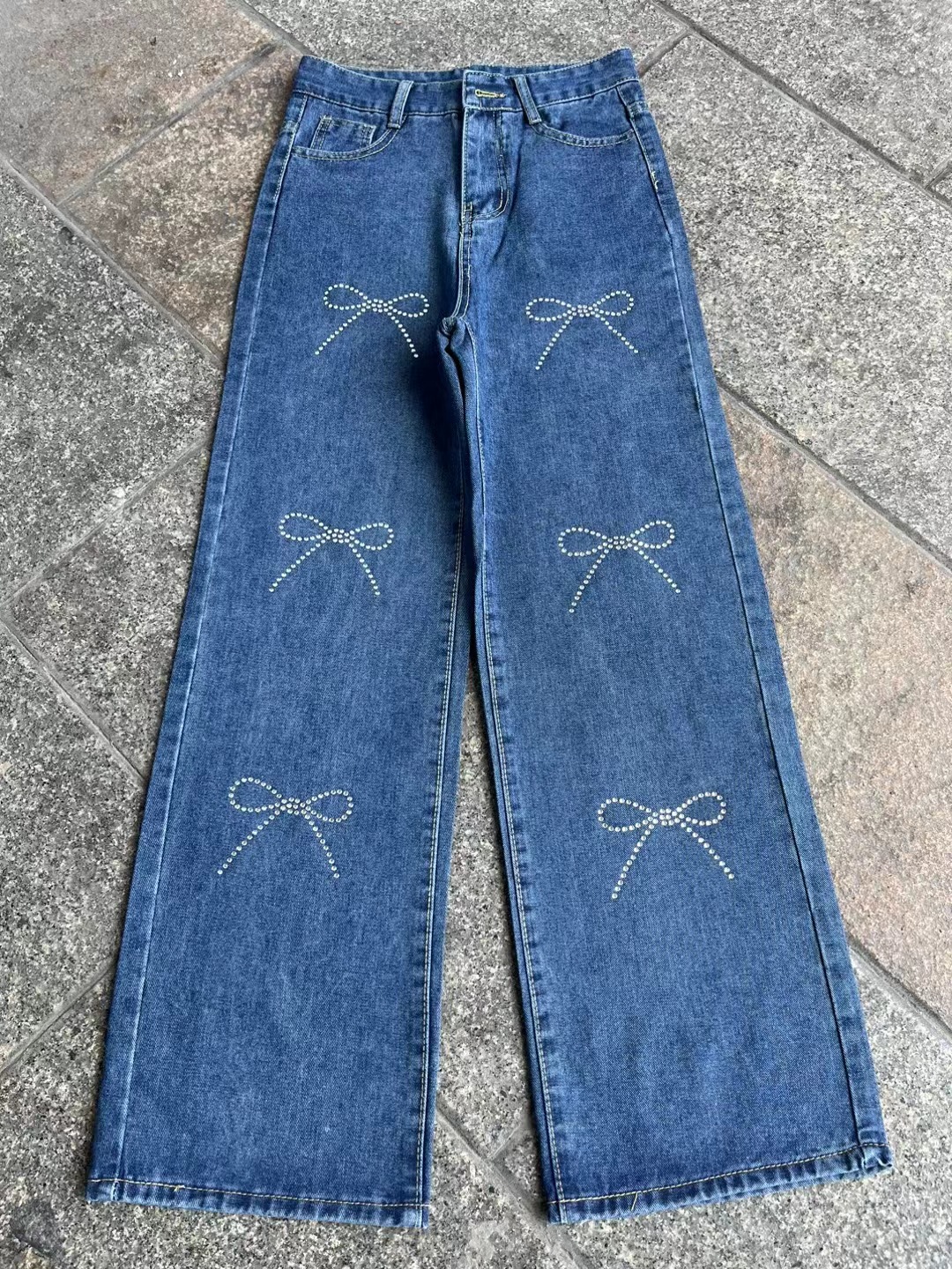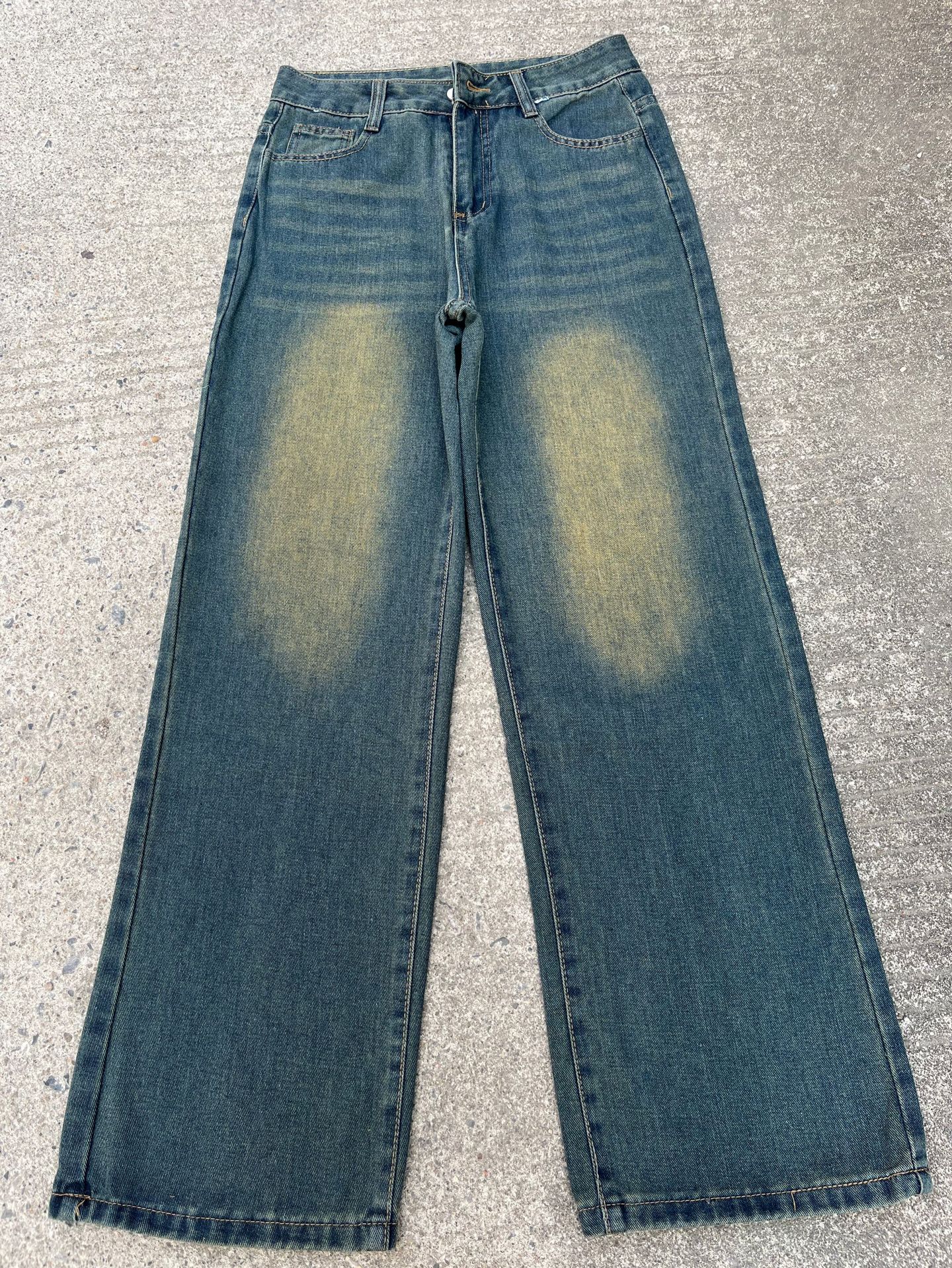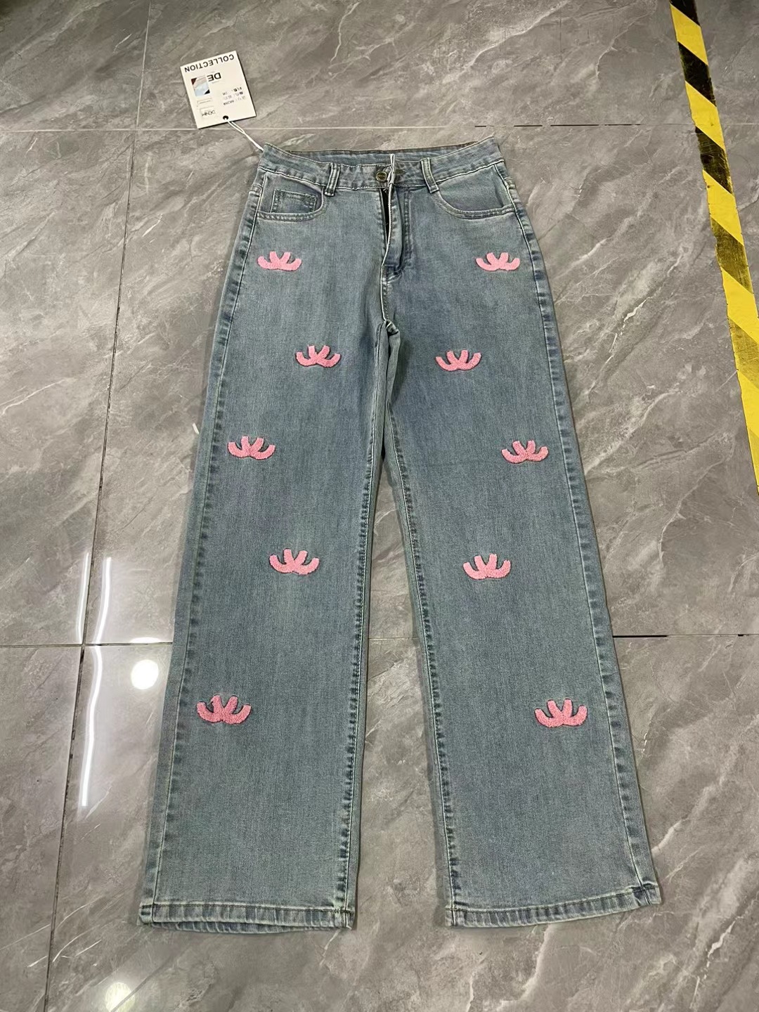 시멘트 그레이 높은 허리 넓은 다리 청바지 여성의 2025 봄과 가을 수 놓은 슬리밍 좁은 버전 레트로 바지스토어 가기