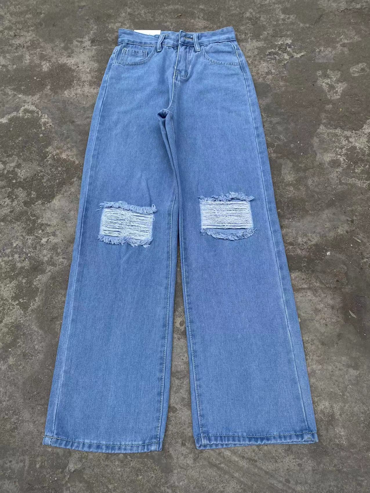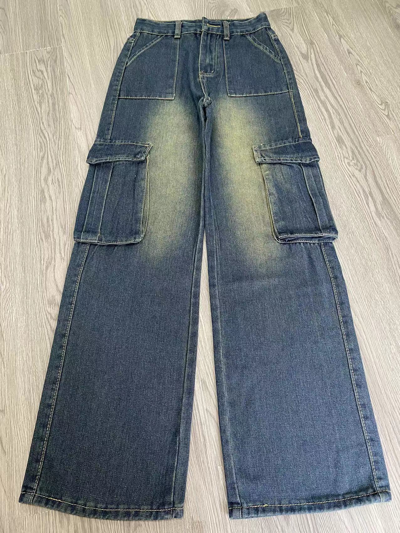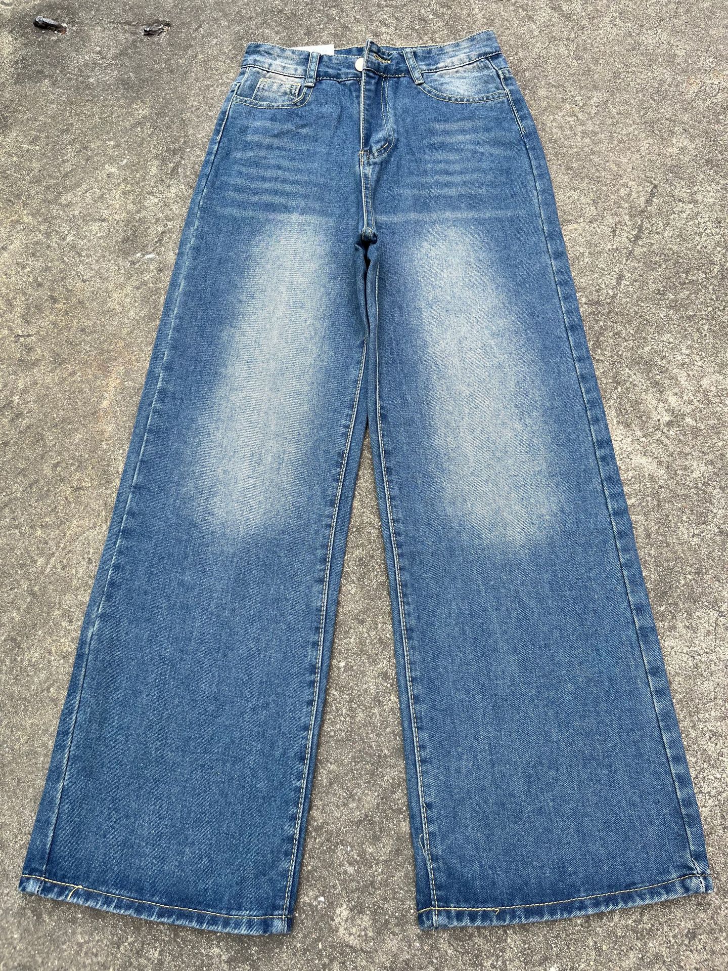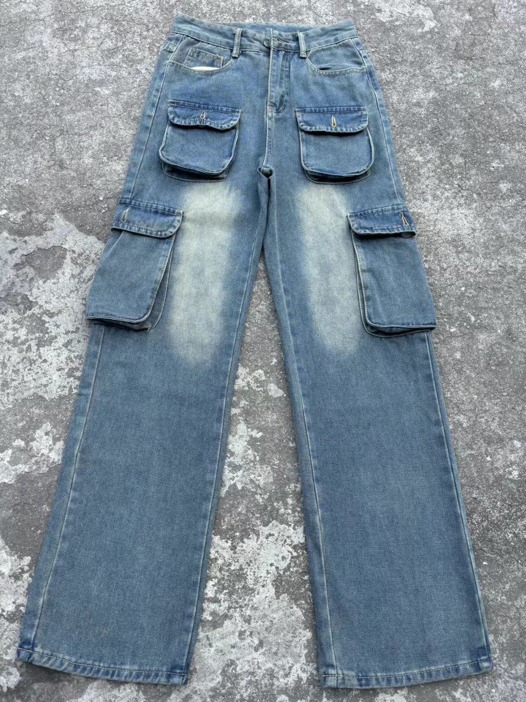 시멘트 그레이 높은 허리 넓은 다리 청바지 여성의 2025 봄과 가을 수 놓은 슬리밍 좁은 버전 레트로 바지스토어 가기