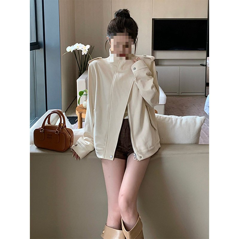 ∝한국 스타일의 살구색 디자인 바이커 재킷 여성용 2025년 가을 신상 레트로 루즈핏 슬림핏 재킷 유행 상의스토어 가기