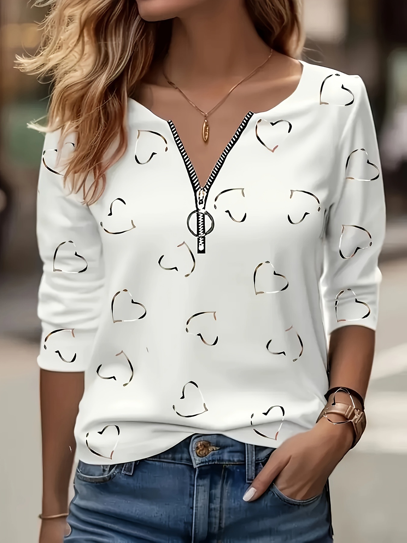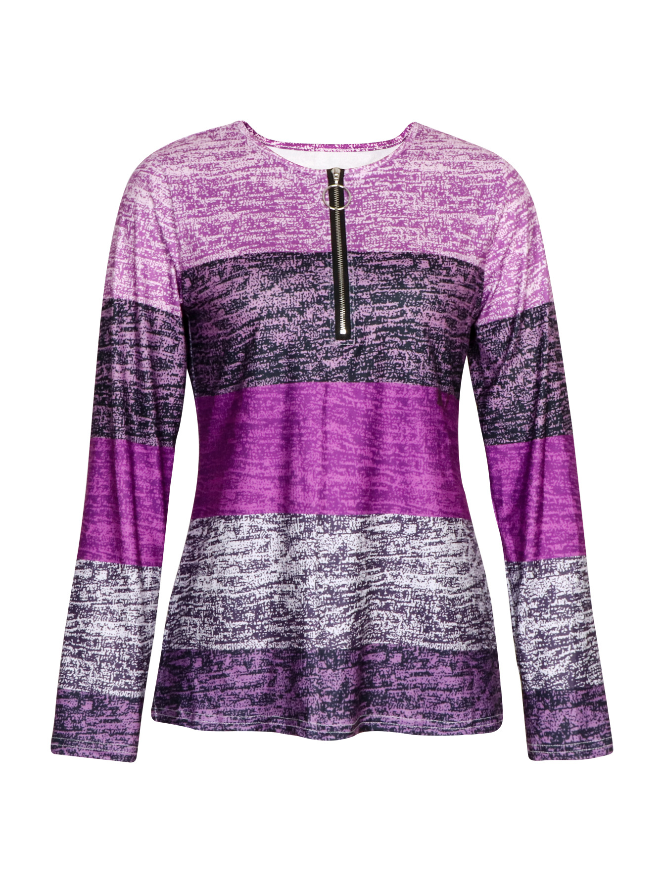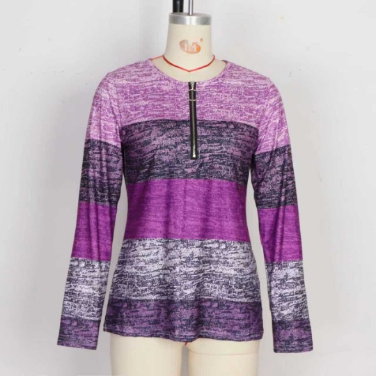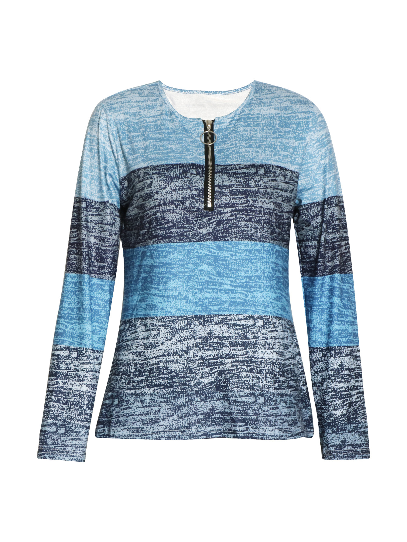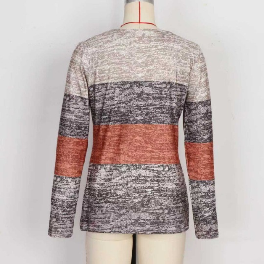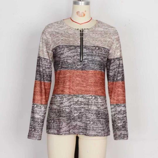 국경 간 여성 셔츠 아마존 봄과 가을 V-목 컬러 블록 새로운 긴 소매 지퍼 탑 새로운 캐주얼 티셔츠스토어 가기