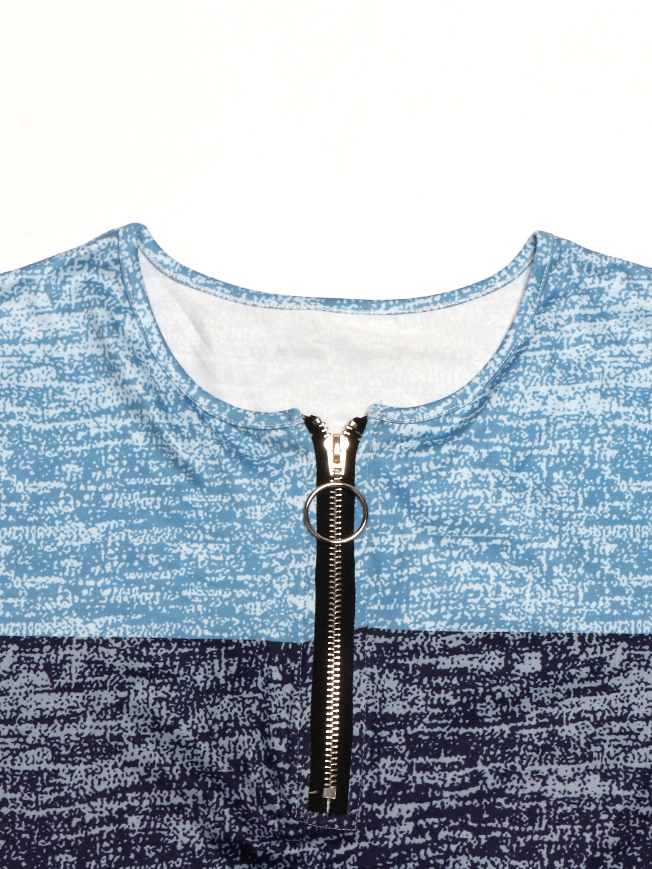 국경 간 여성 셔츠 아마존 봄과 가을 V-목 컬러 블록 새로운 긴 소매 지퍼 탑 새로운 캐주얼 티셔츠