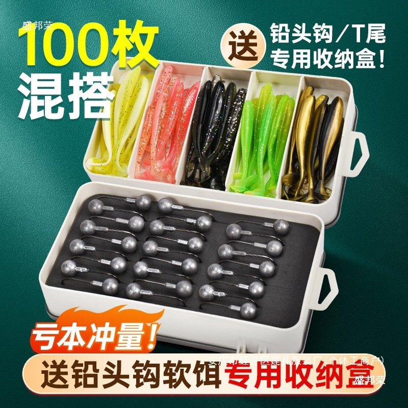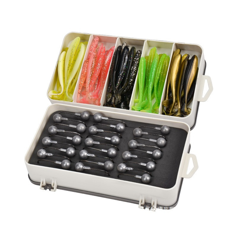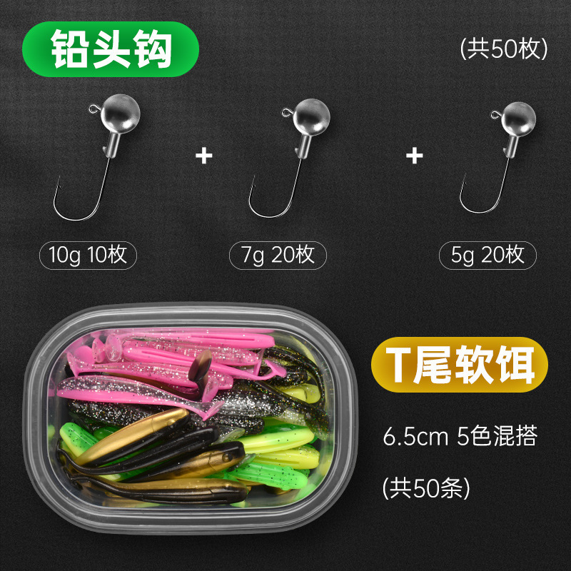 • [60개] 3.5g+5g+7g [작은 무게] 리드 헤드 후크 양면 상자 + T 테일 50개 포함