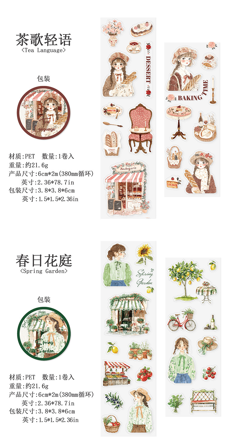 고대 숲 애완 동물 테이프 소녀의 가벼운 언어 시리즈 6 꽃 시즌 소녀 테마 손 계정 백킹 자료