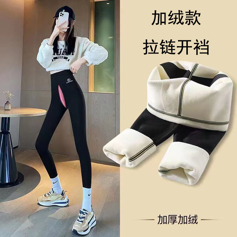 폭발 야외 무료 상어 피부 레깅스 더블 헤드 보이지 않는 지퍼 레깅스 높은 허리 복부 투킹 새로운 스타일스토어 가기