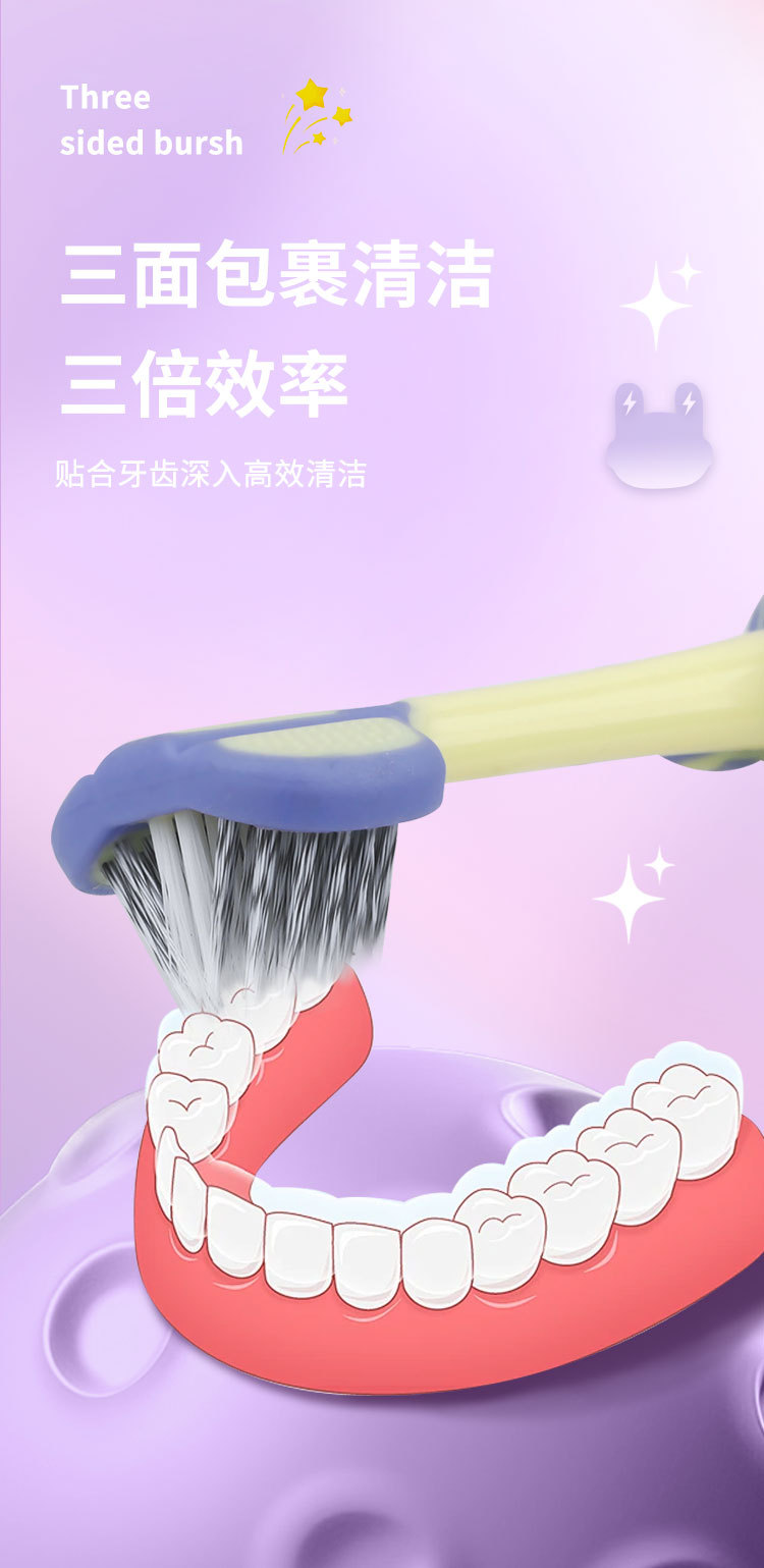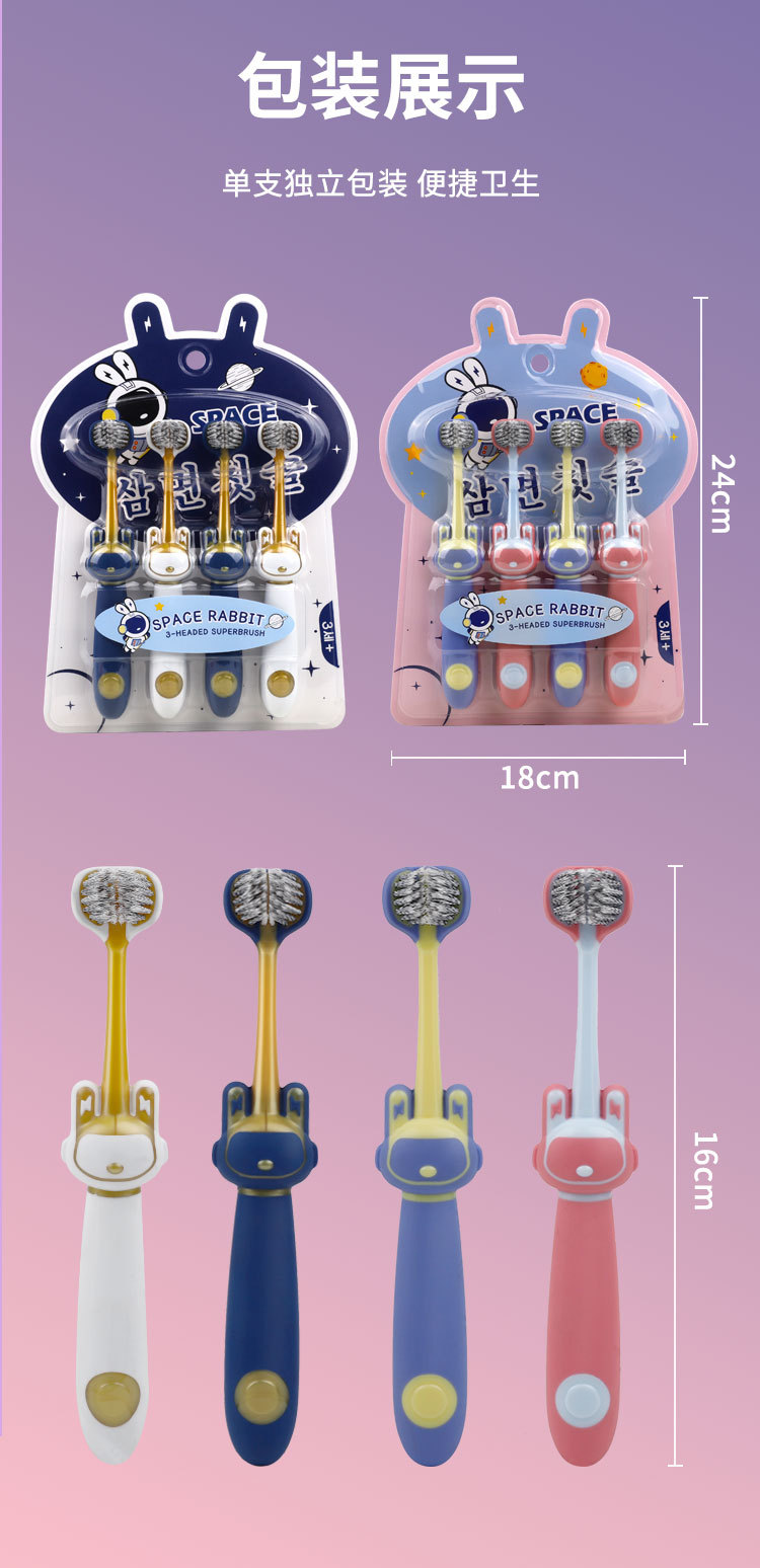 어린이 3 면 칫솔 부드러운 머리 만화 아기 낙엽 4 어린이 칫솔 유아 치아 공장 도매