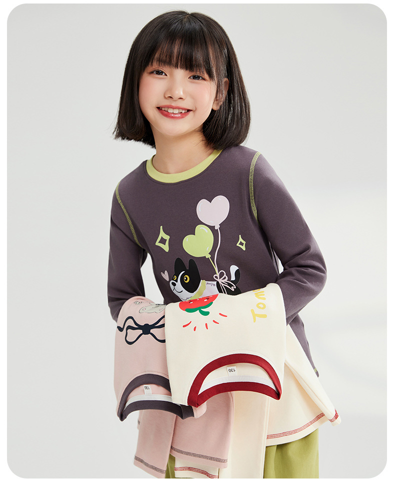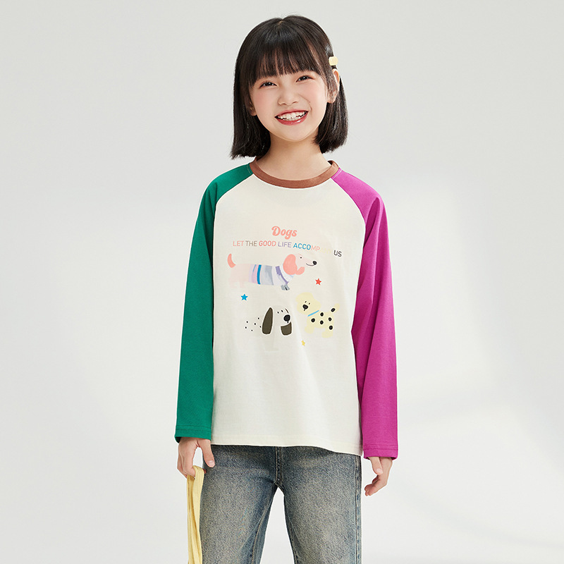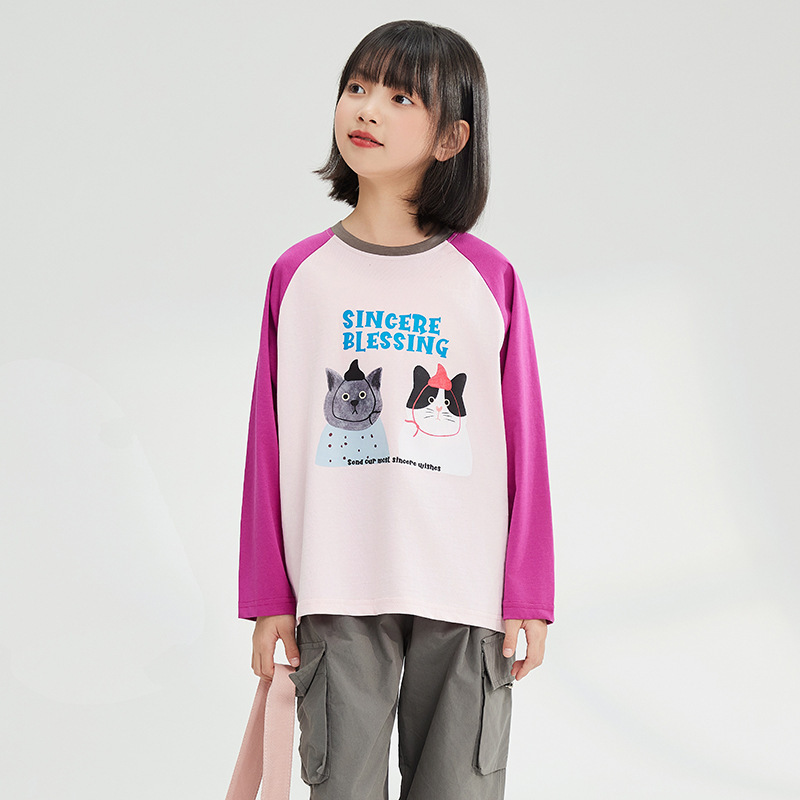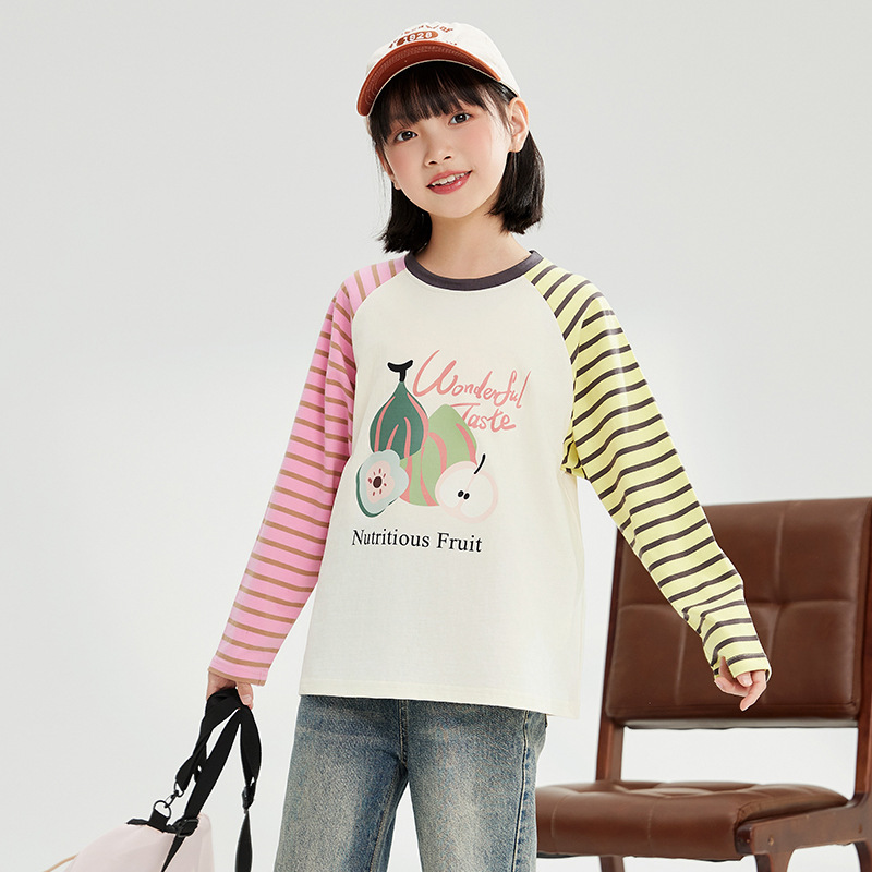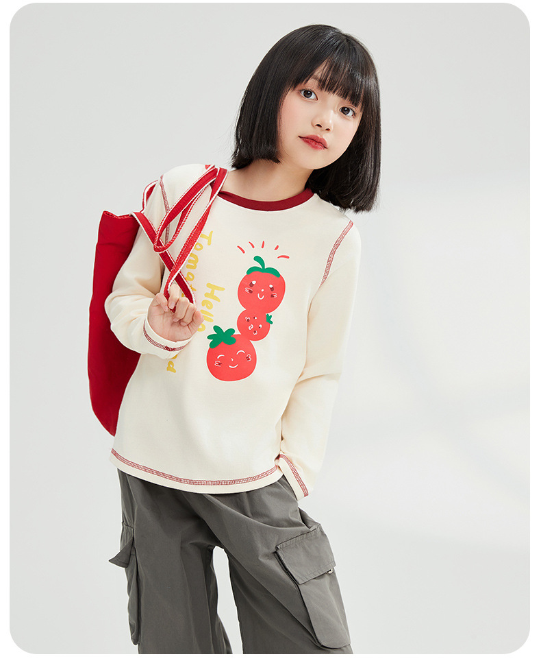 한국어 버전 만화 편안한 면화 소녀 봄 탑 2025 새로운 스타일 외국 스타일 중대형 어린이 프린트 면화 티셔츠 dropshipping스토어 가기