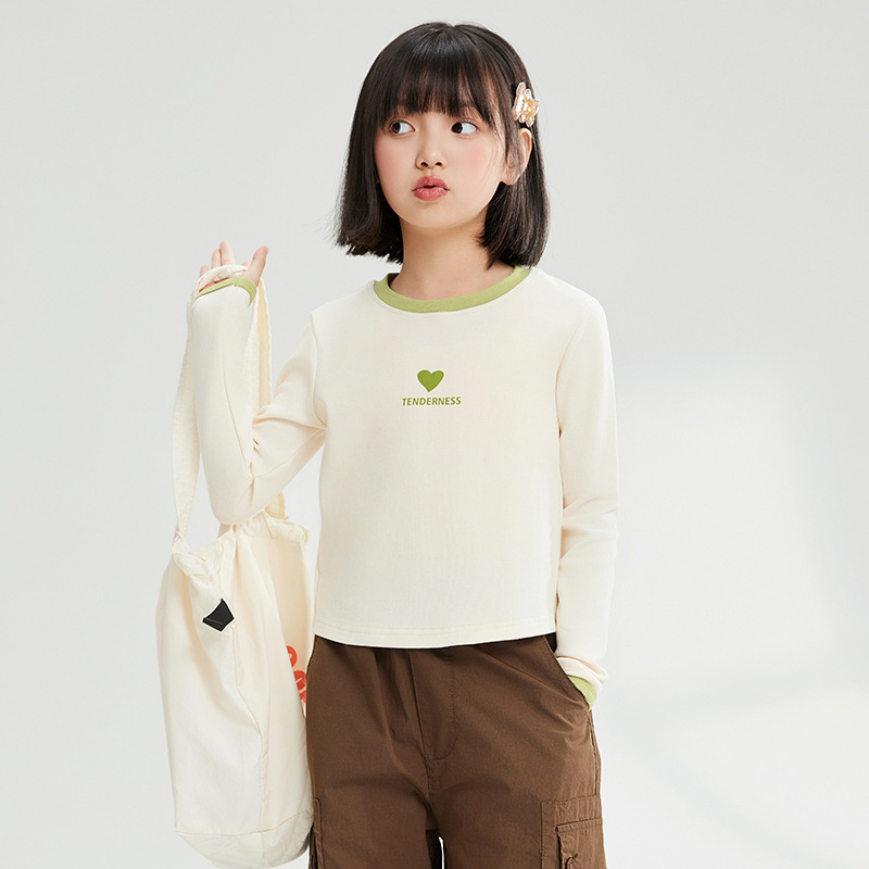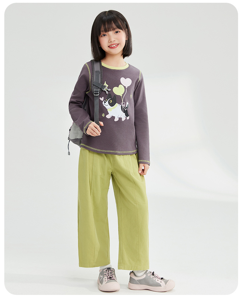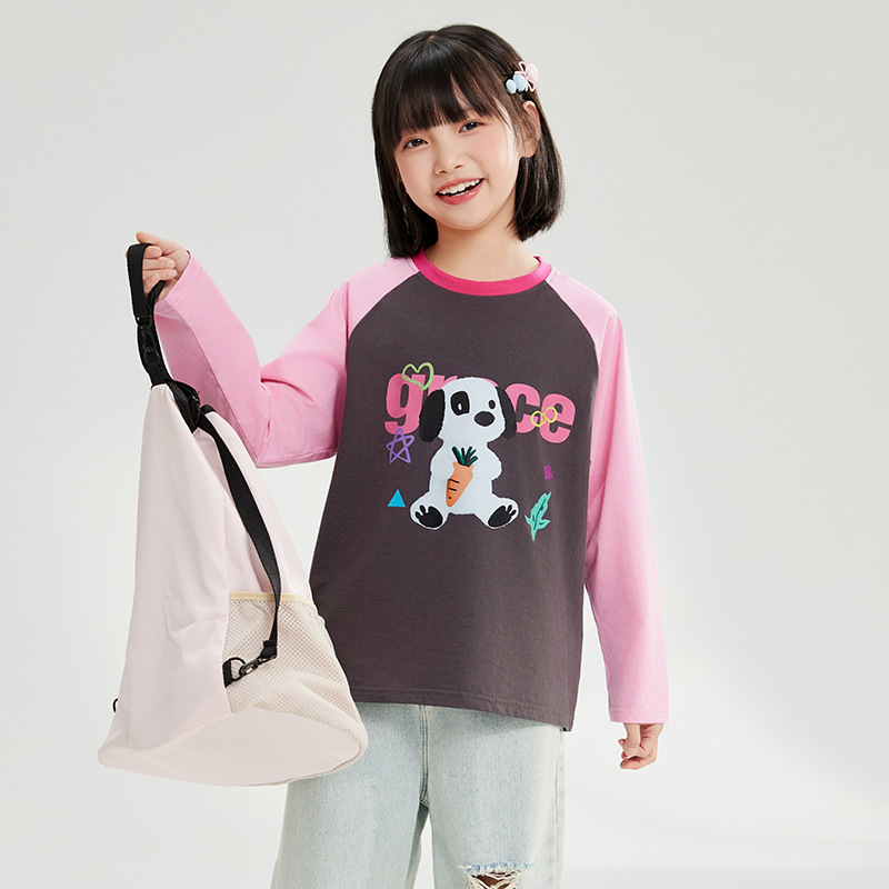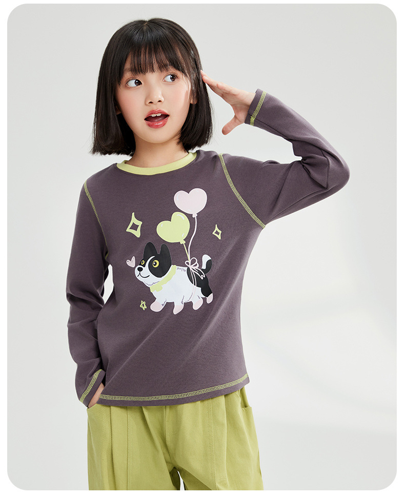 한국어 버전 만화 편안한 면화 소녀 봄 탑 2025 새로운 스타일 외국 스타일 중대형 어린이 프린트 면화 티셔츠 dropshipping스토어 가기