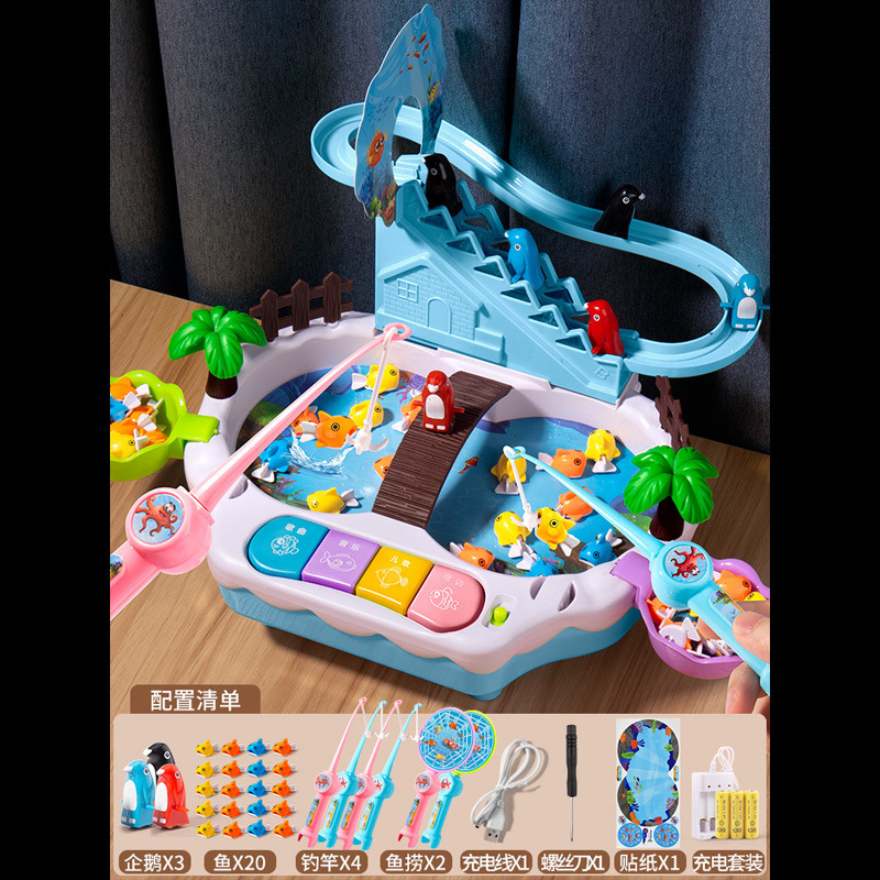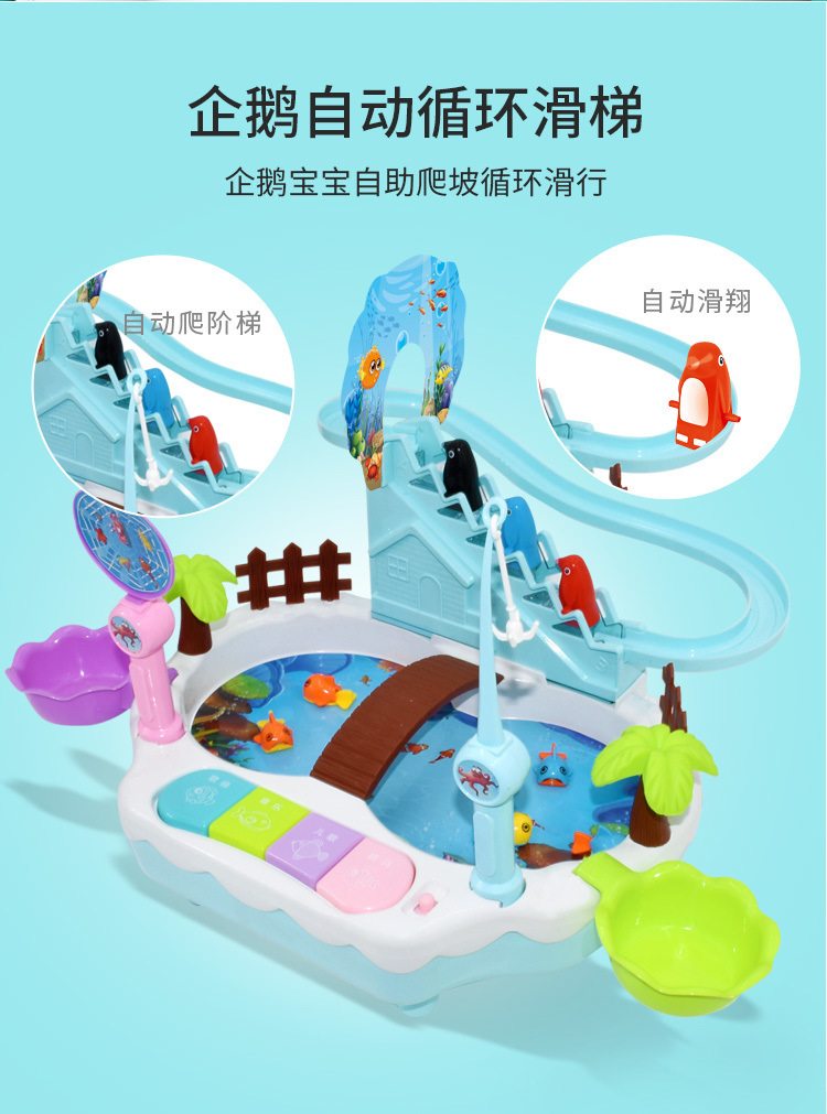 • [블루] 펭귄 슬라이드 낚시 플랫폼 세트 [배터리 버전]