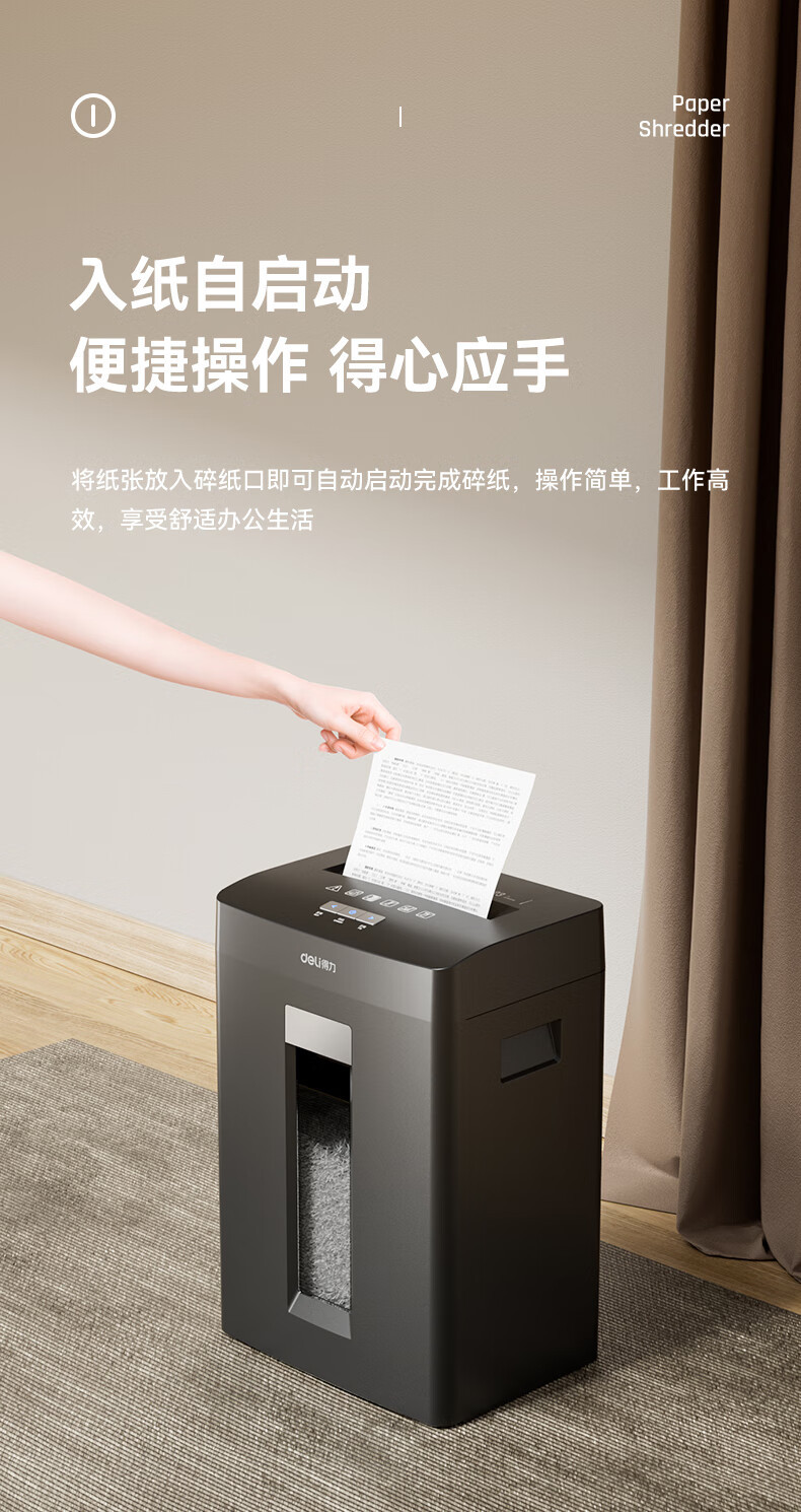델리 문서세단기 GA590 대용량 23L 블랙 독일 표준 5등급 기밀 문서세단기 못이 들어간 문서도 세단 가능 한 번에 8매 도매스토어 가기