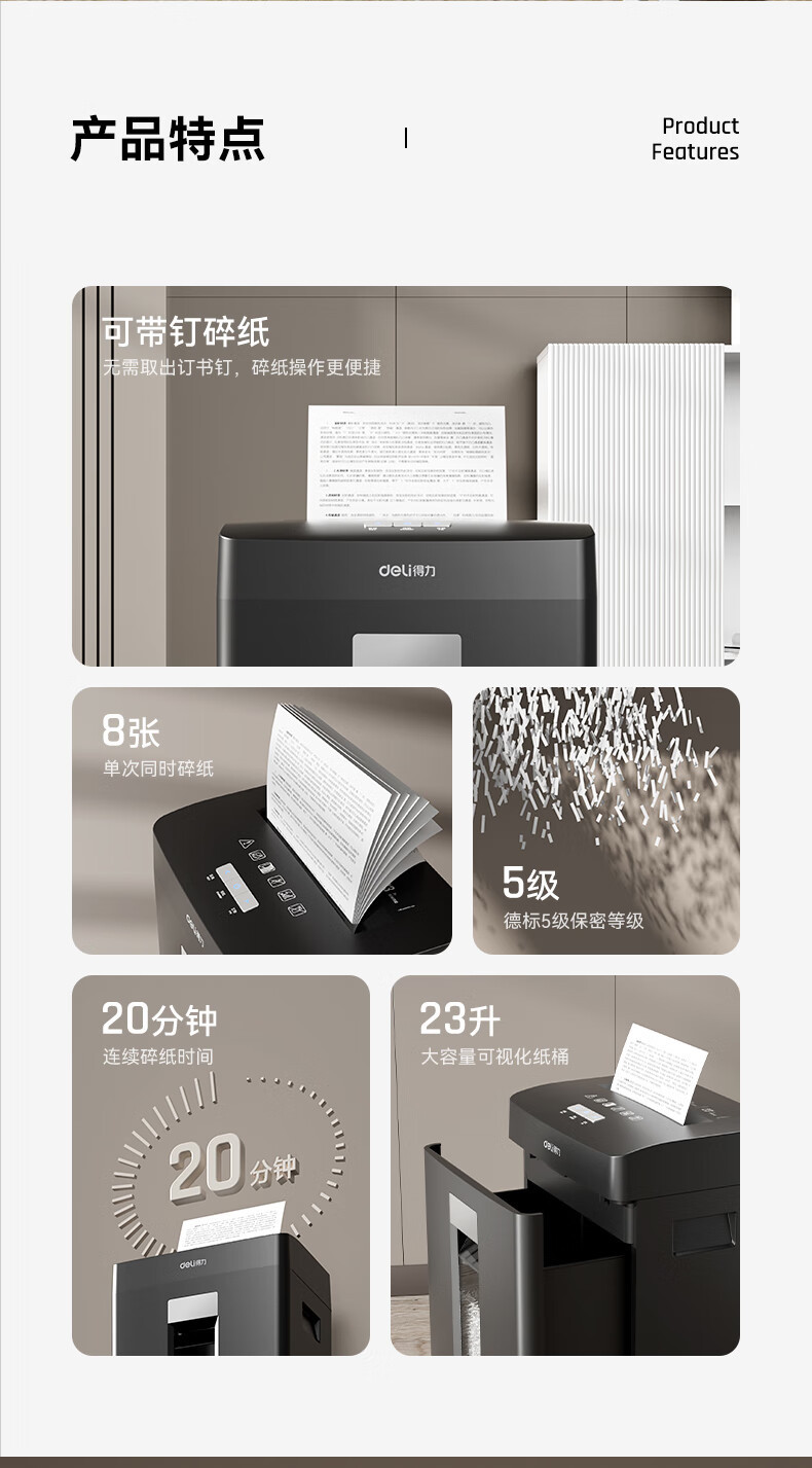 델리 문서세단기 GA590 대용량 23L 블랙 독일 표준 5등급 기밀 문서세단기 못이 들어간 문서도 세단 가능 한 번에 8매 도매