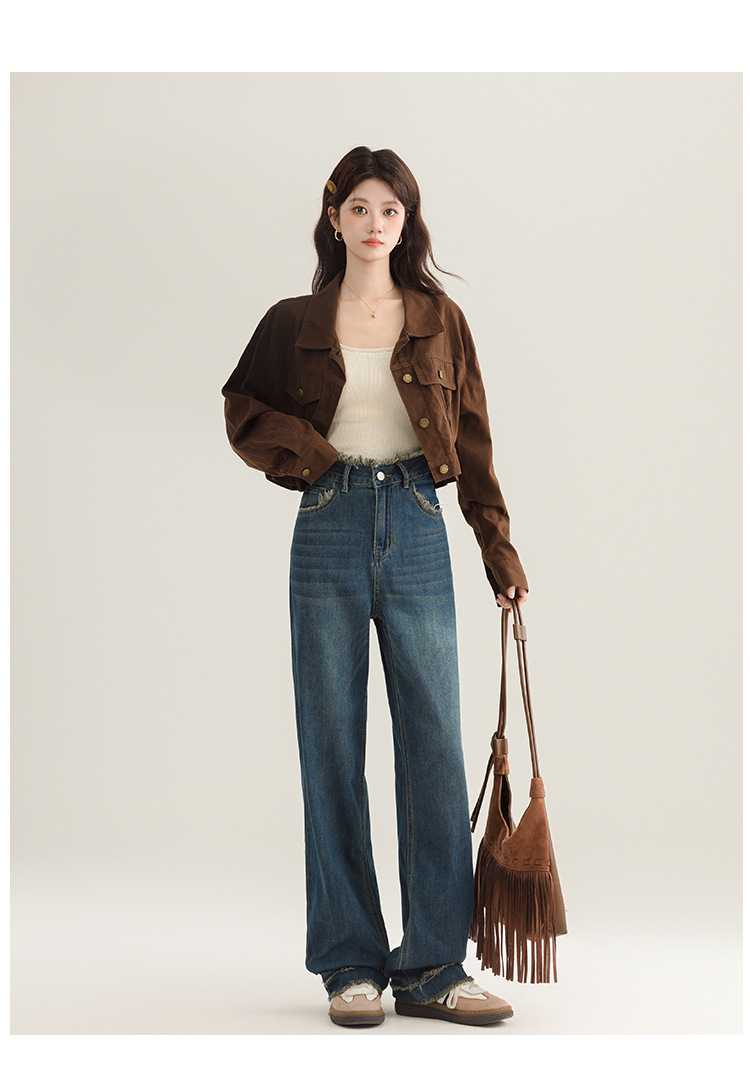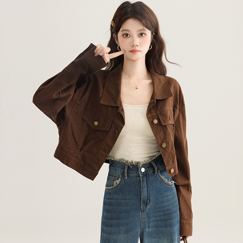 2025 봄과 가을 새로운 한국 스타일 짧은 데님 자켓 여성 홍콩 스타일 루즈 레트로 캐주얼 스트리트 스타일 재킷 탑스토어 가기