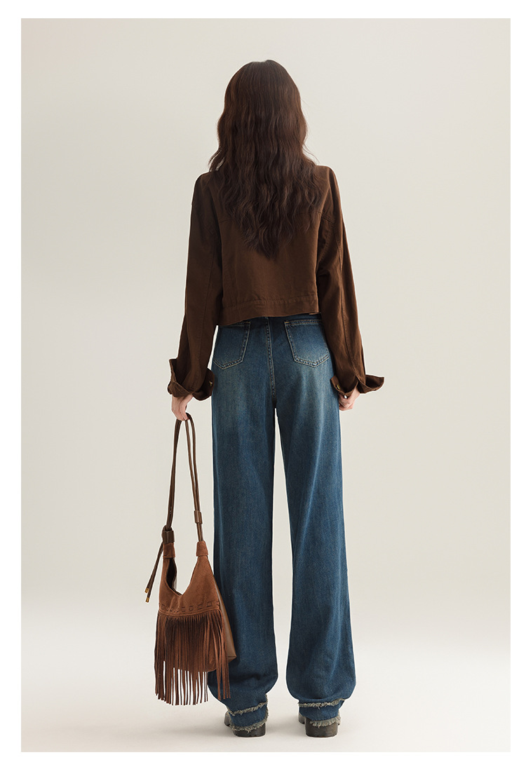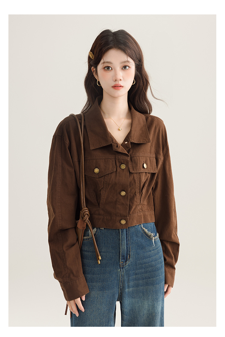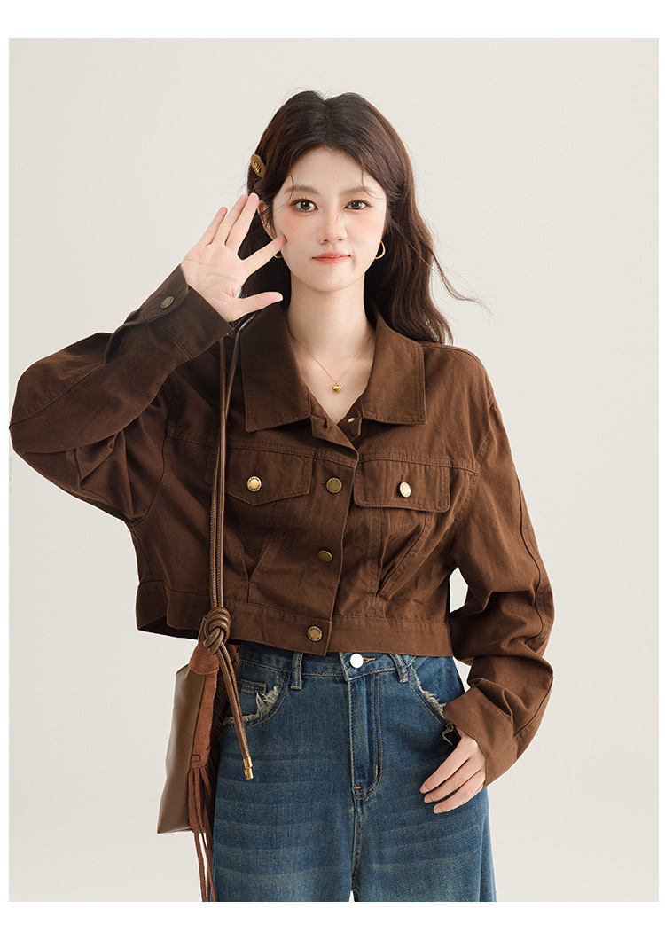 2025 봄과 가을 새로운 한국 스타일 짧은 데님 자켓 여성 홍콩 스타일 루즈 레트로 캐주얼 스트리트 스타일 재킷 탑