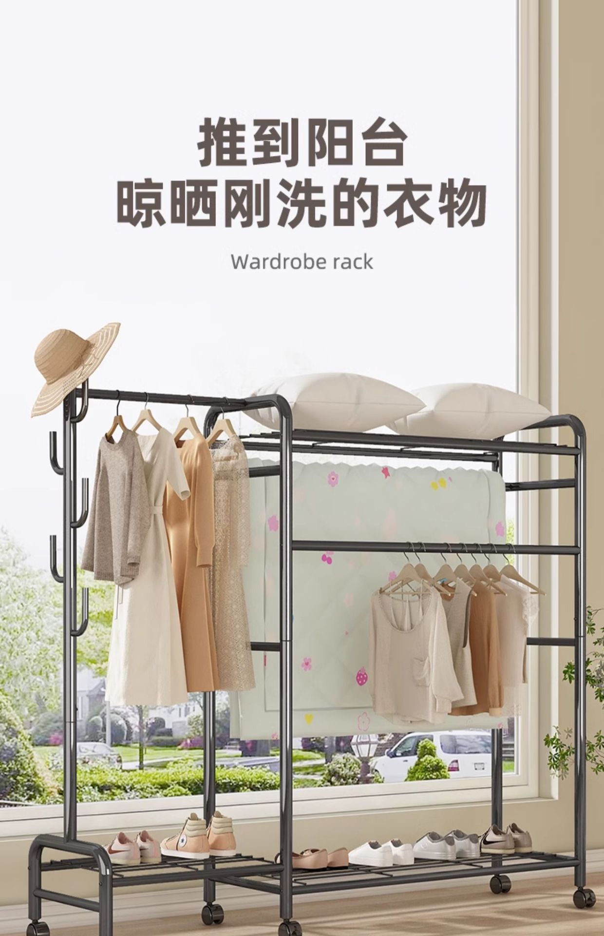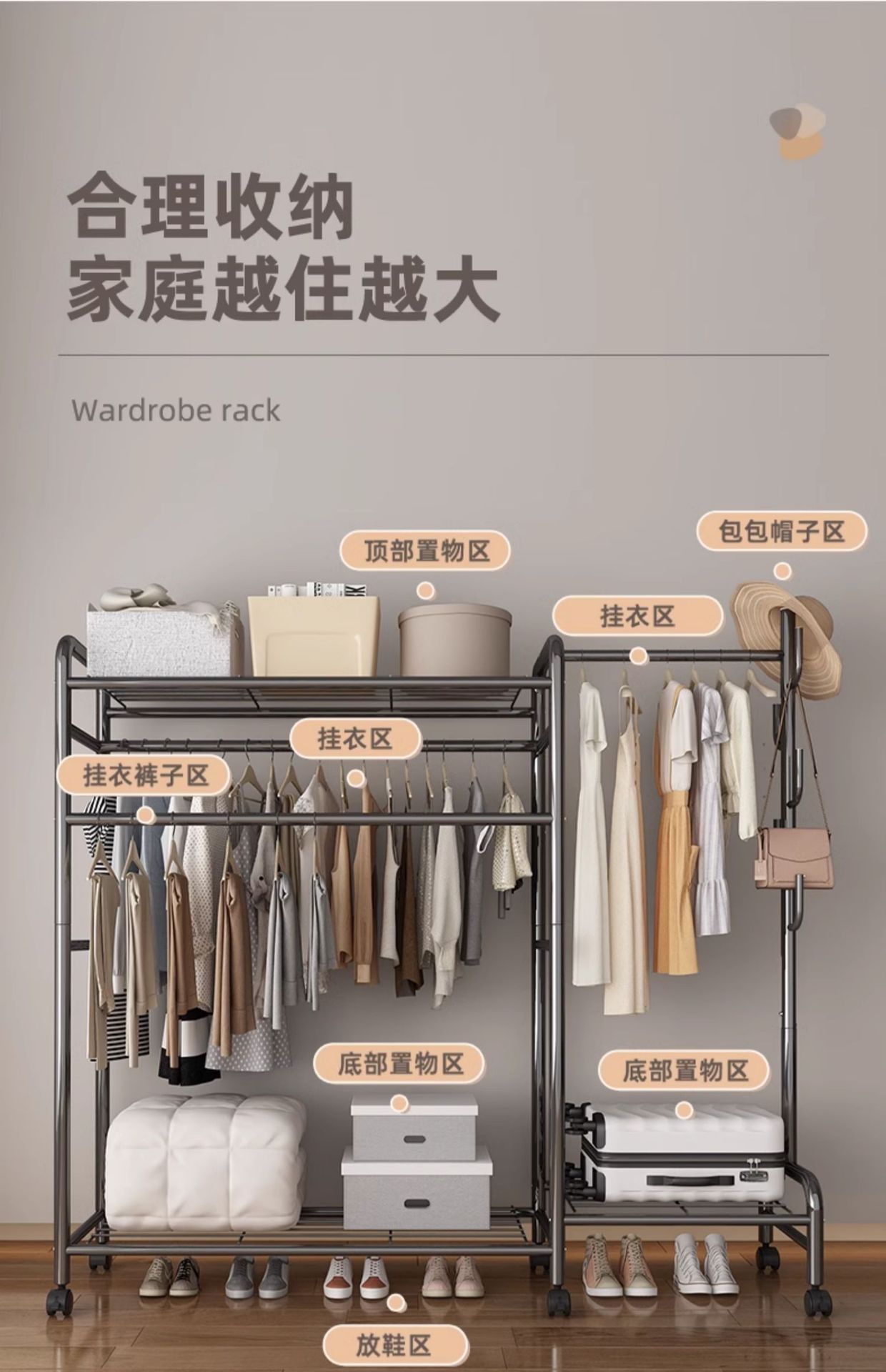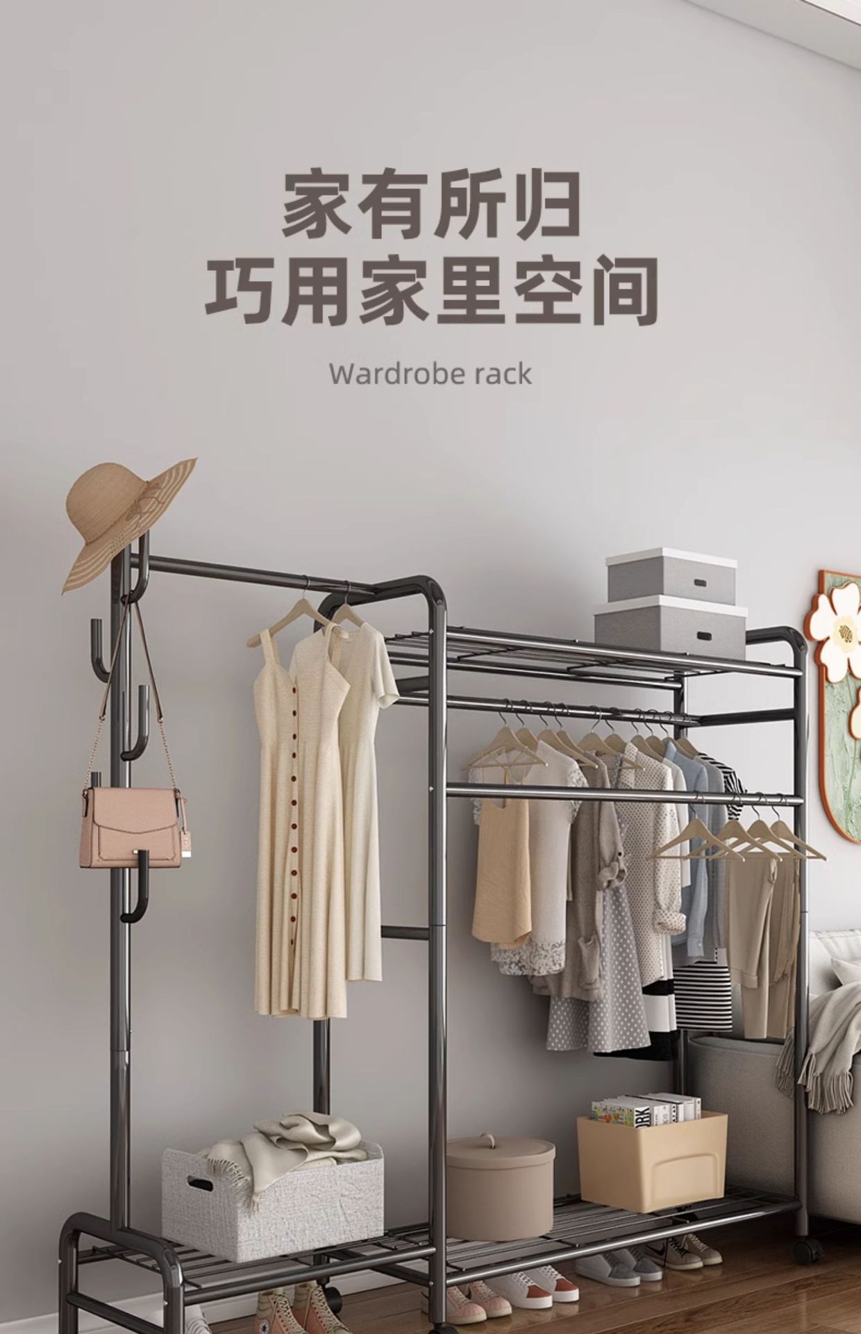 옷걸이 바닥 침실 가정용 이동식 양극 저장 코트 랙 간단한 스토리지 랙 수직 건조 랙