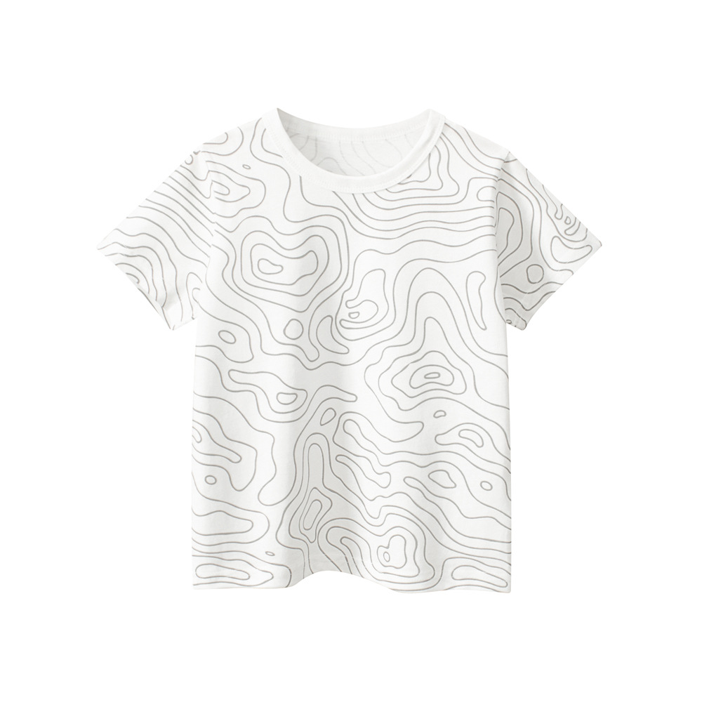 27 어린이 반팔 2025 여름 새 소년 풀 프린트 티셔츠 아기 옷 둥근 목 머리카락