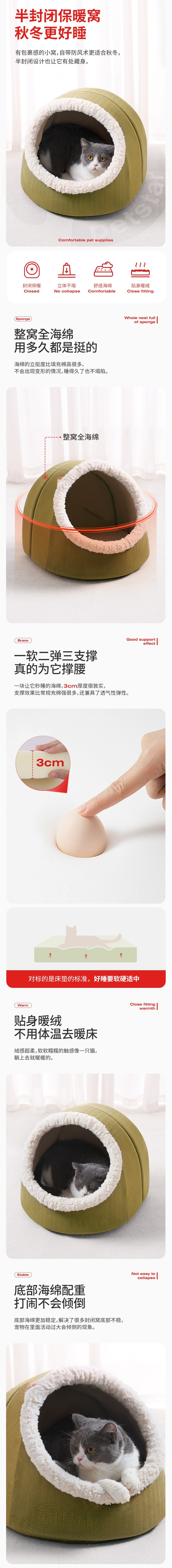 [Pet_Eggshell Sponge Nest] 겨울 고양이 집에서 따뜻하고 안전한 고양이 반 폐쇄 Xiao Mao 잠자는 둥지 스타스토어 가기