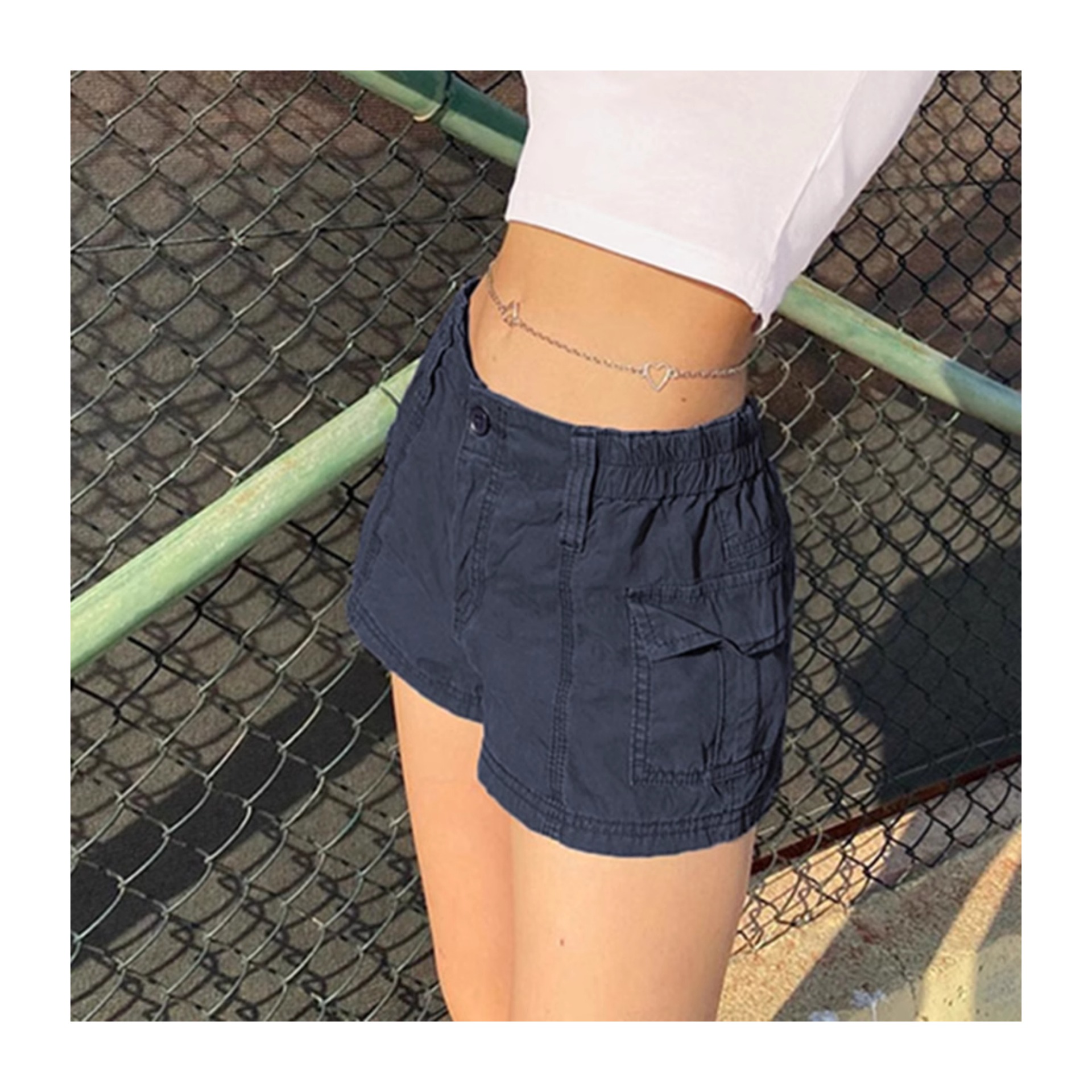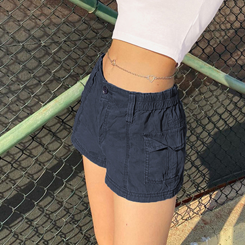 핫 스타일 H 홈 유럽과 미국 여성의 심플한 디자인 탄성 허리 헤드 포켓 작업복 반바지 여성 올 매치 배송 및 다이파 뉴 스타일