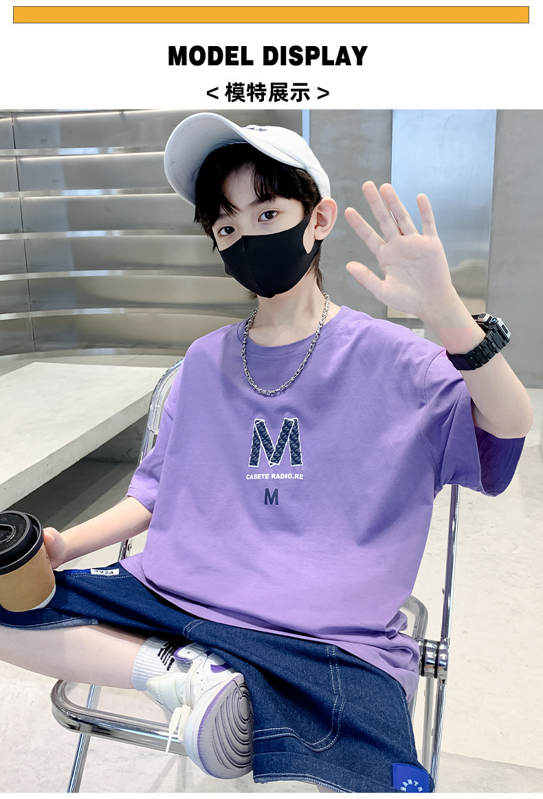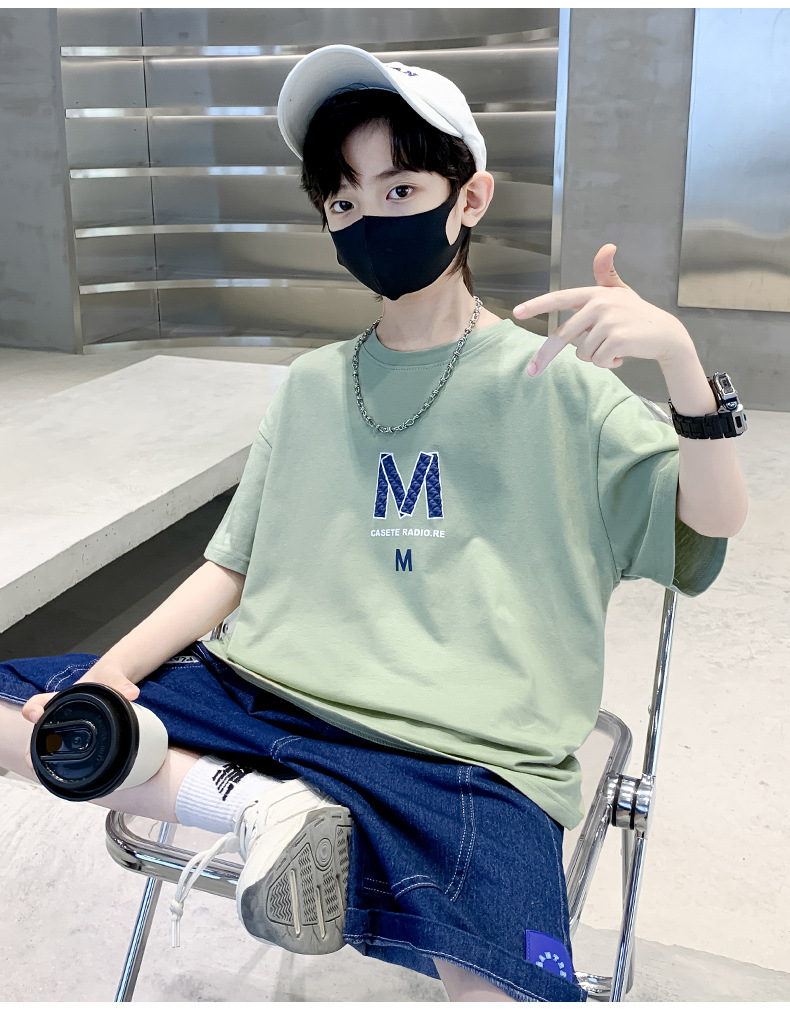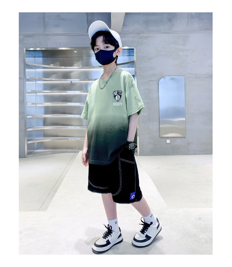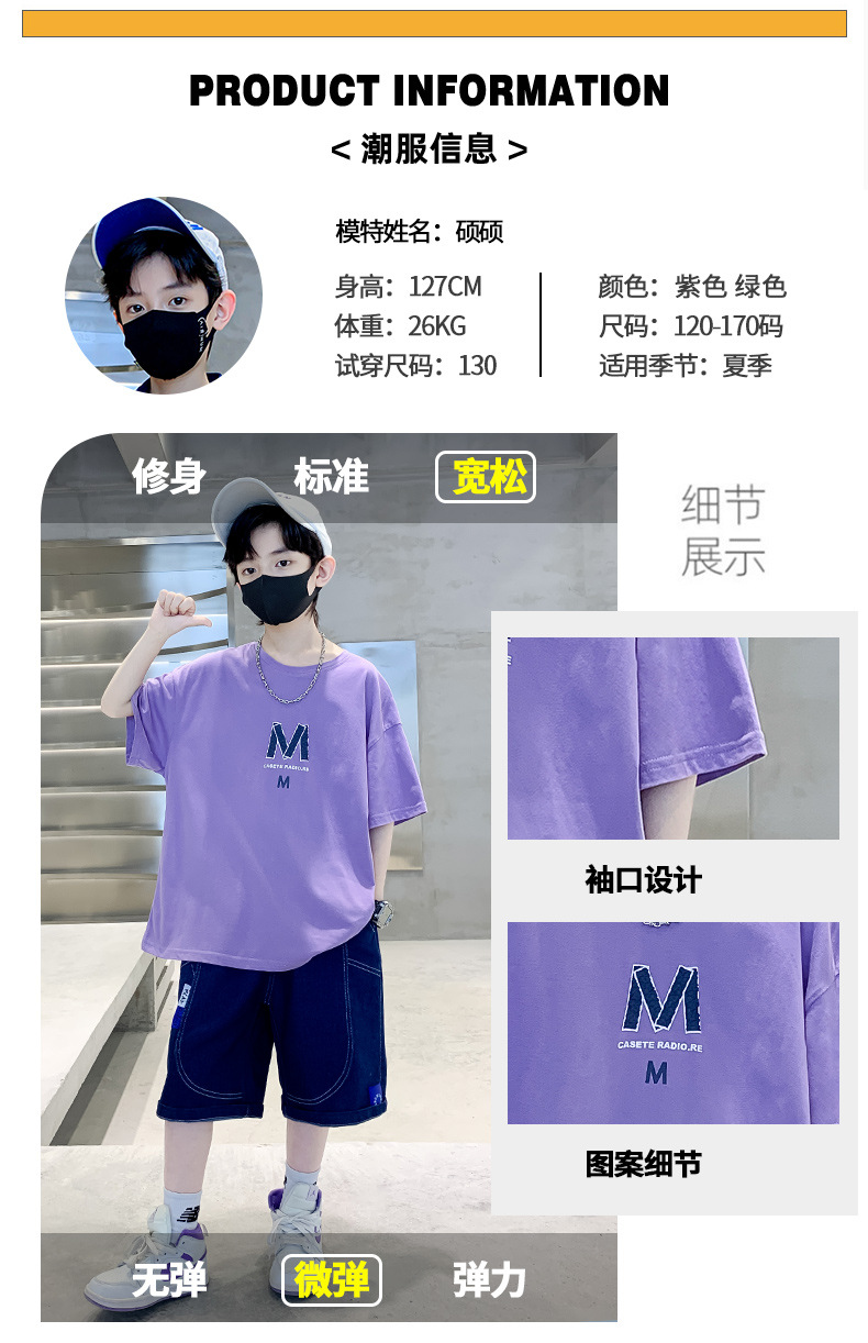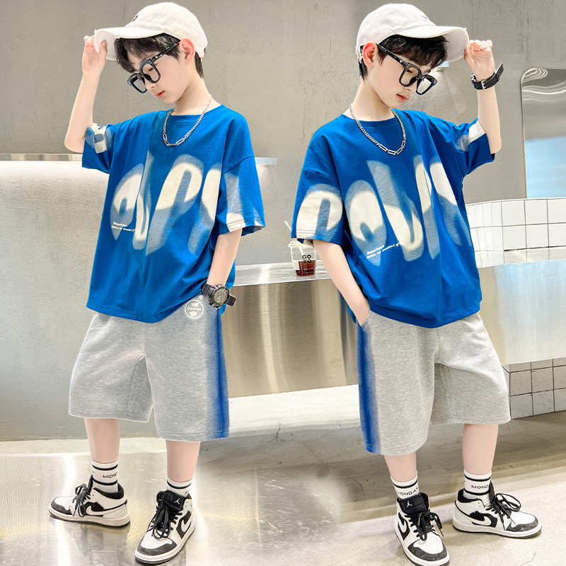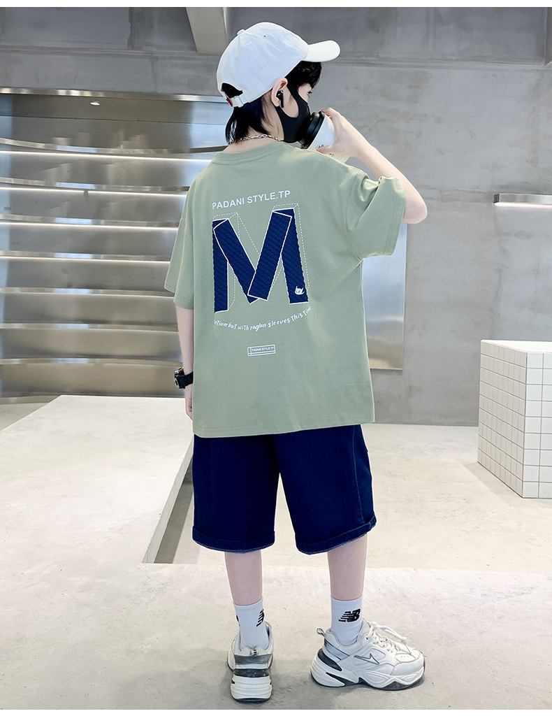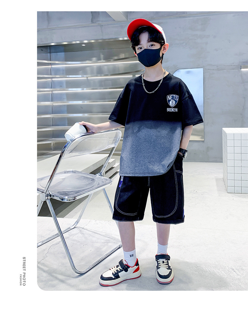 아동복 소년 여름 세트 2025 새로운 여름복 소년 중 · 대형 어린이 반팔 티셔츠 데님 반바지 투피스 세트