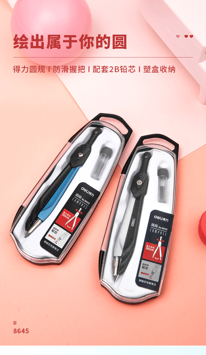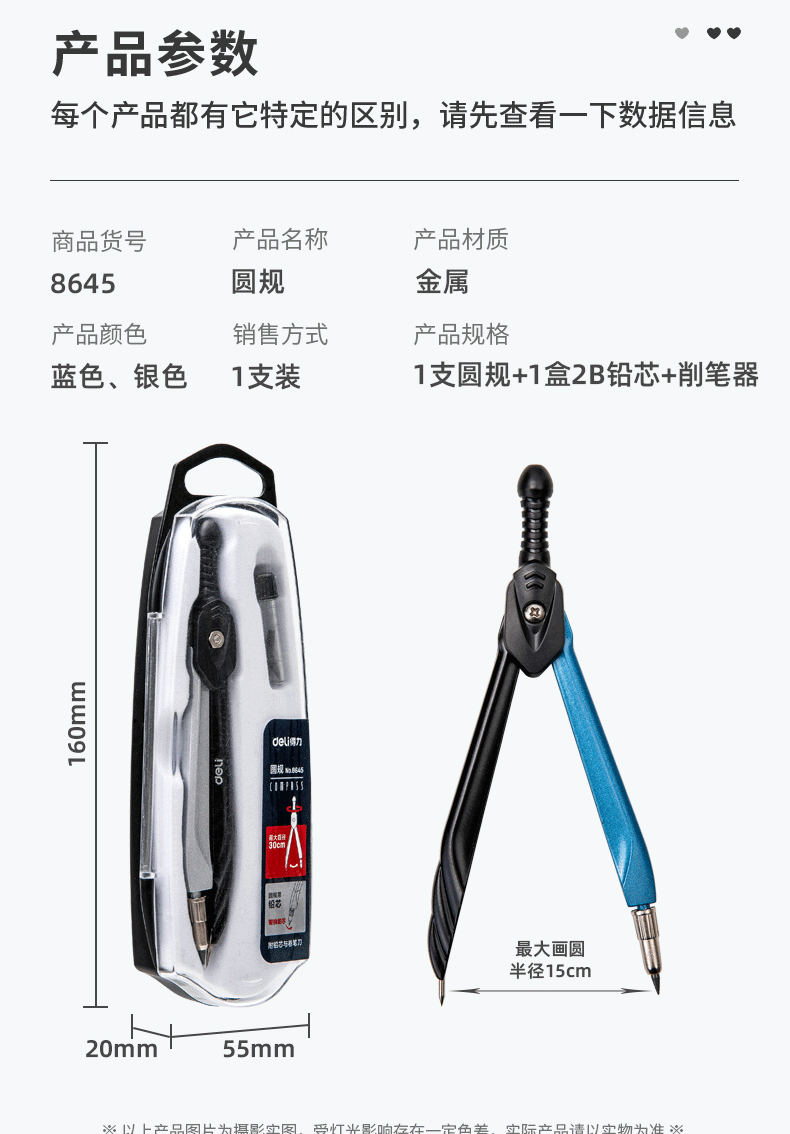 Deli 8645 금속 리드 나침반 학생들은 수학 기하학 원형 그리기 나침반 학습스토어 가기