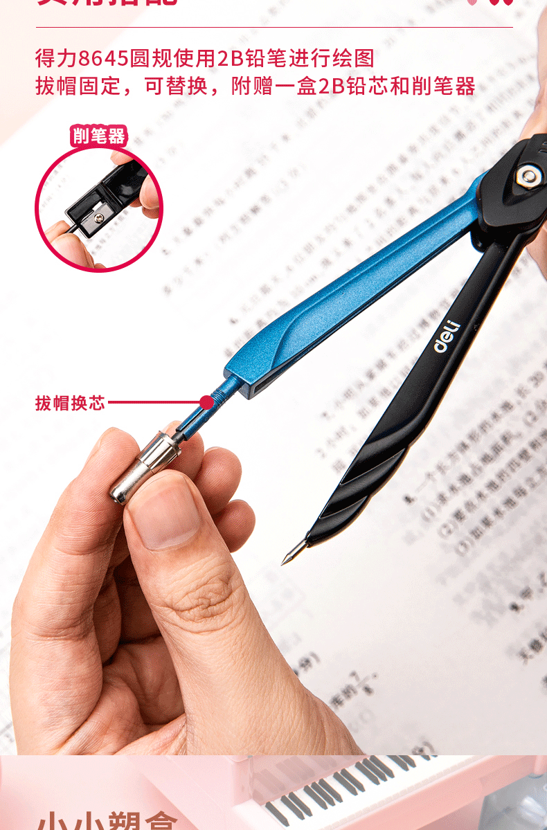 Deli 8645 금속 리드 나침반 학생들은 수학 기하학 원형 그리기 나침반 학습