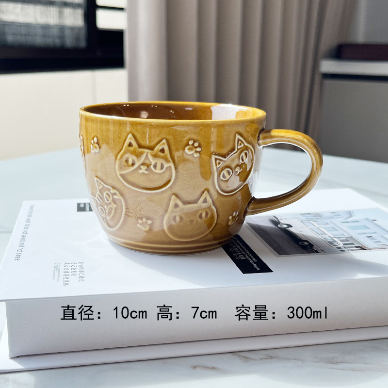 일본식 세라믹 귀여운 만화 고양이 3 형 입체 구호 식기 빈티지 바이노럴 베이킹 플레이트 디저트 베이킹 오일 팬스토어 가기