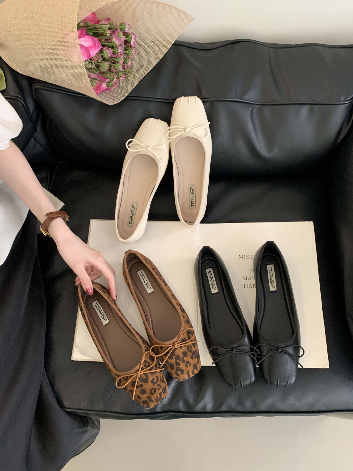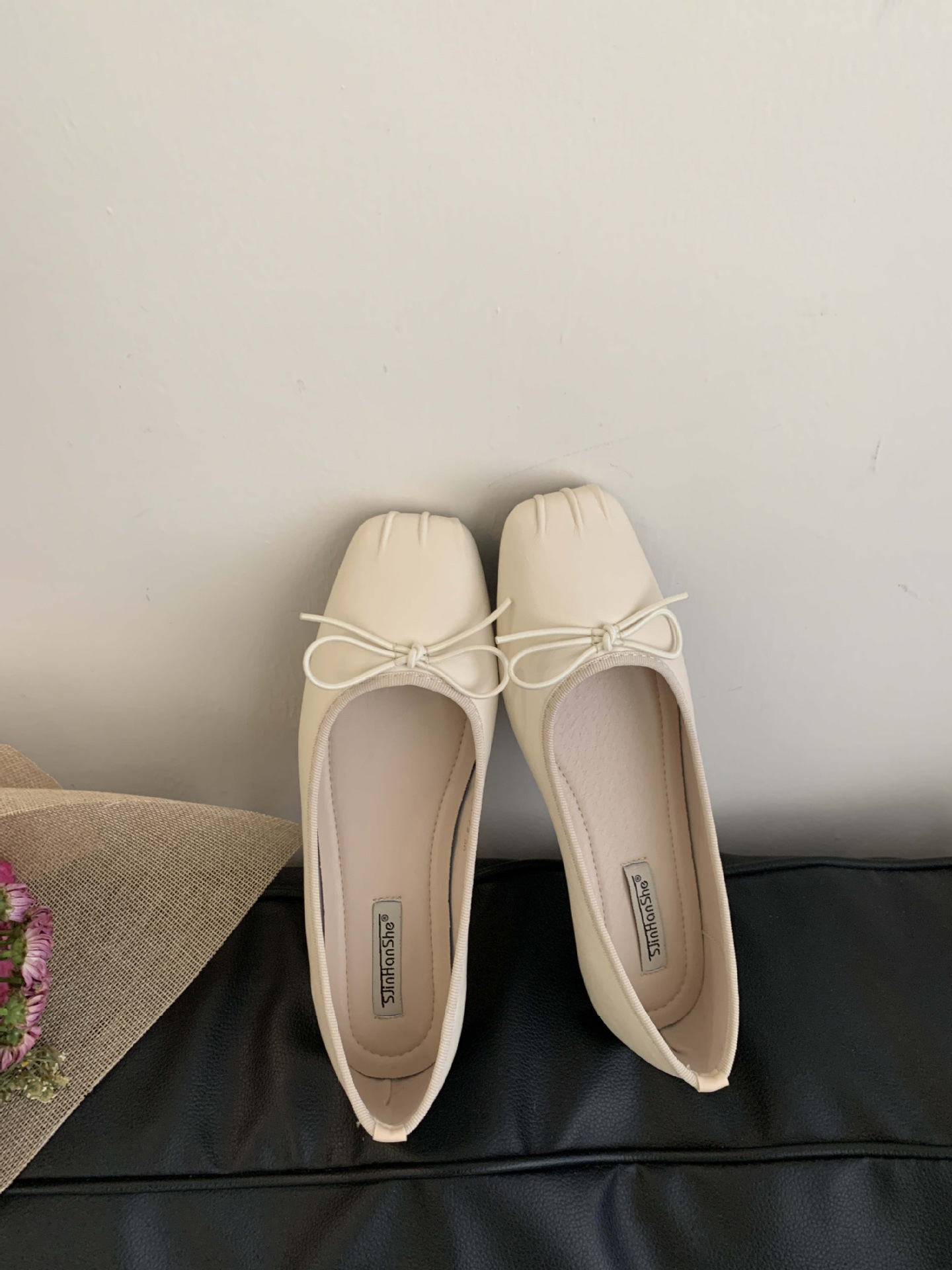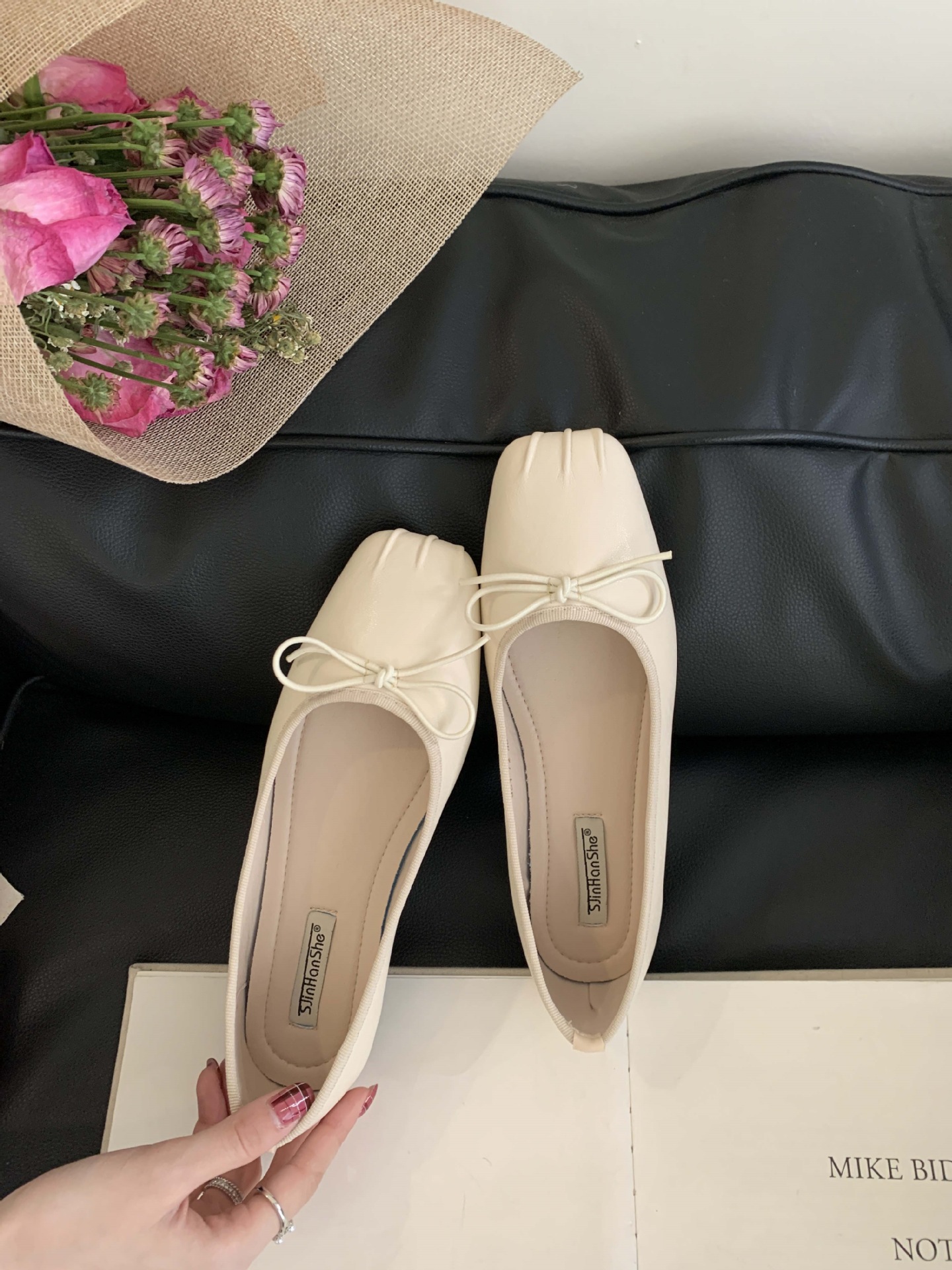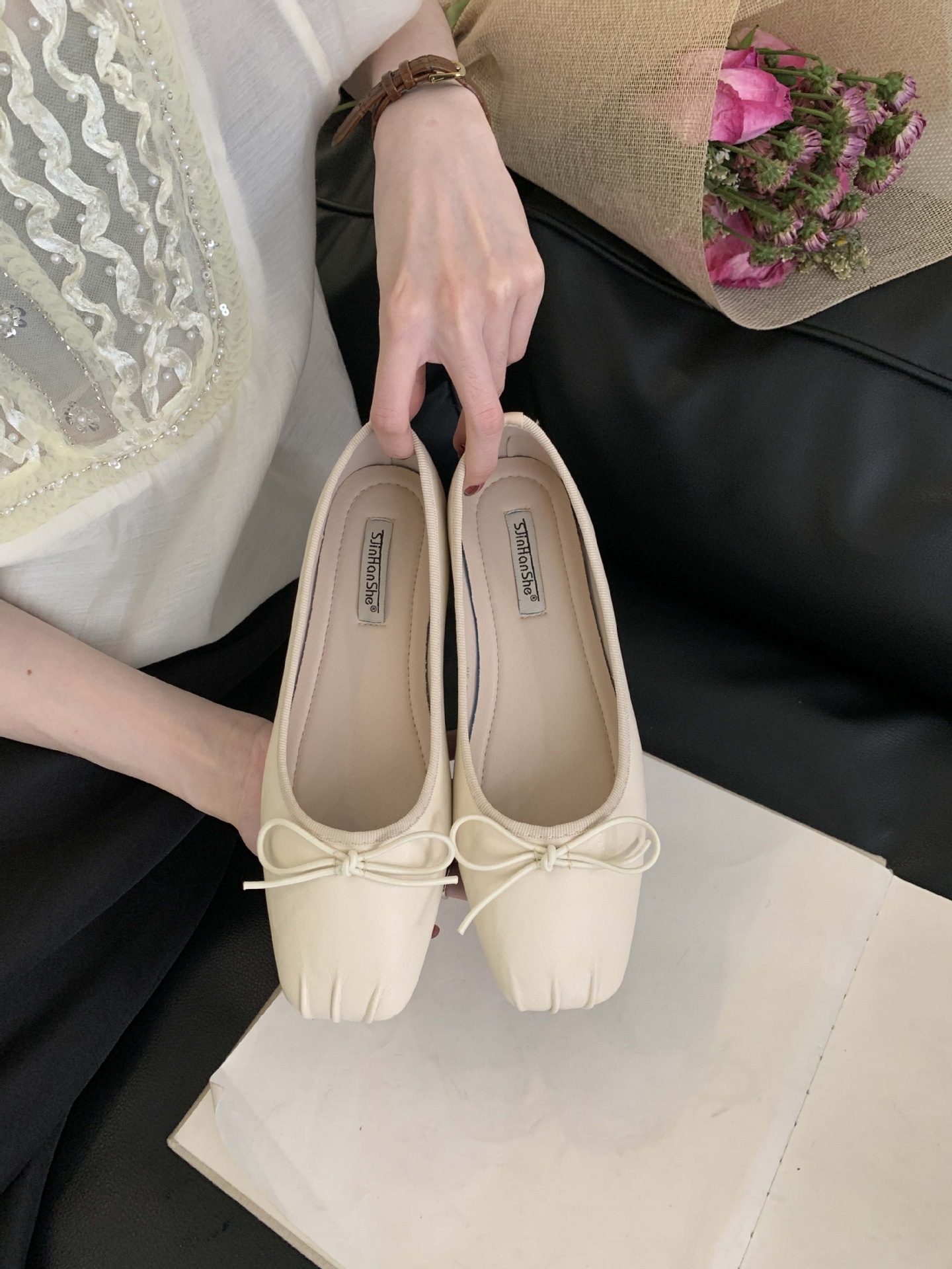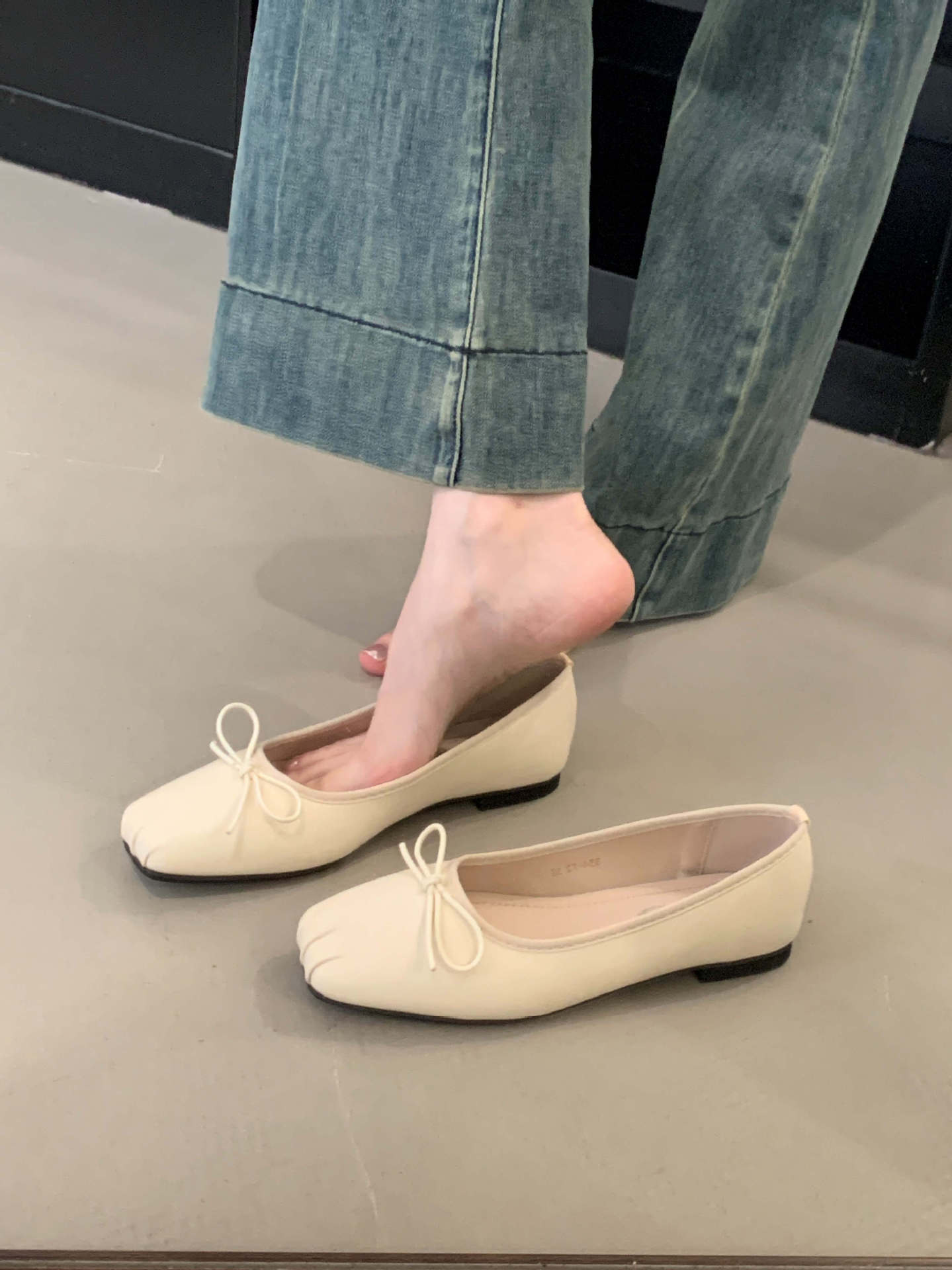 2025 년 이른 봄 새로운 한국 스타일 스타일 활 주름 광장 발가락 얕은 입 싱글 레이어 신발스토어 가기