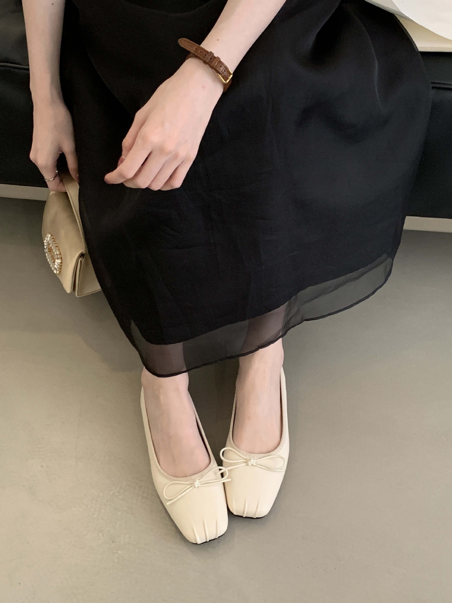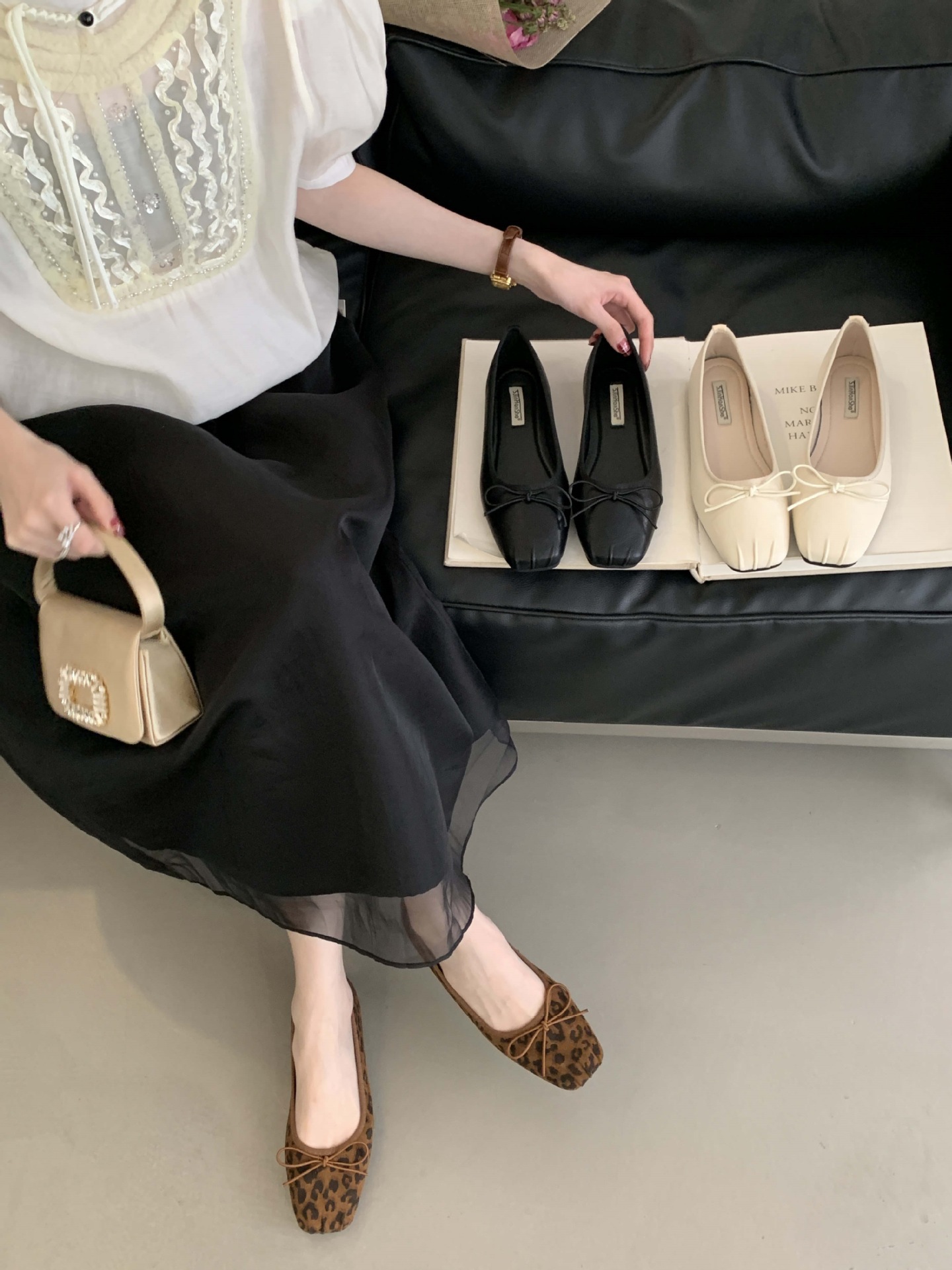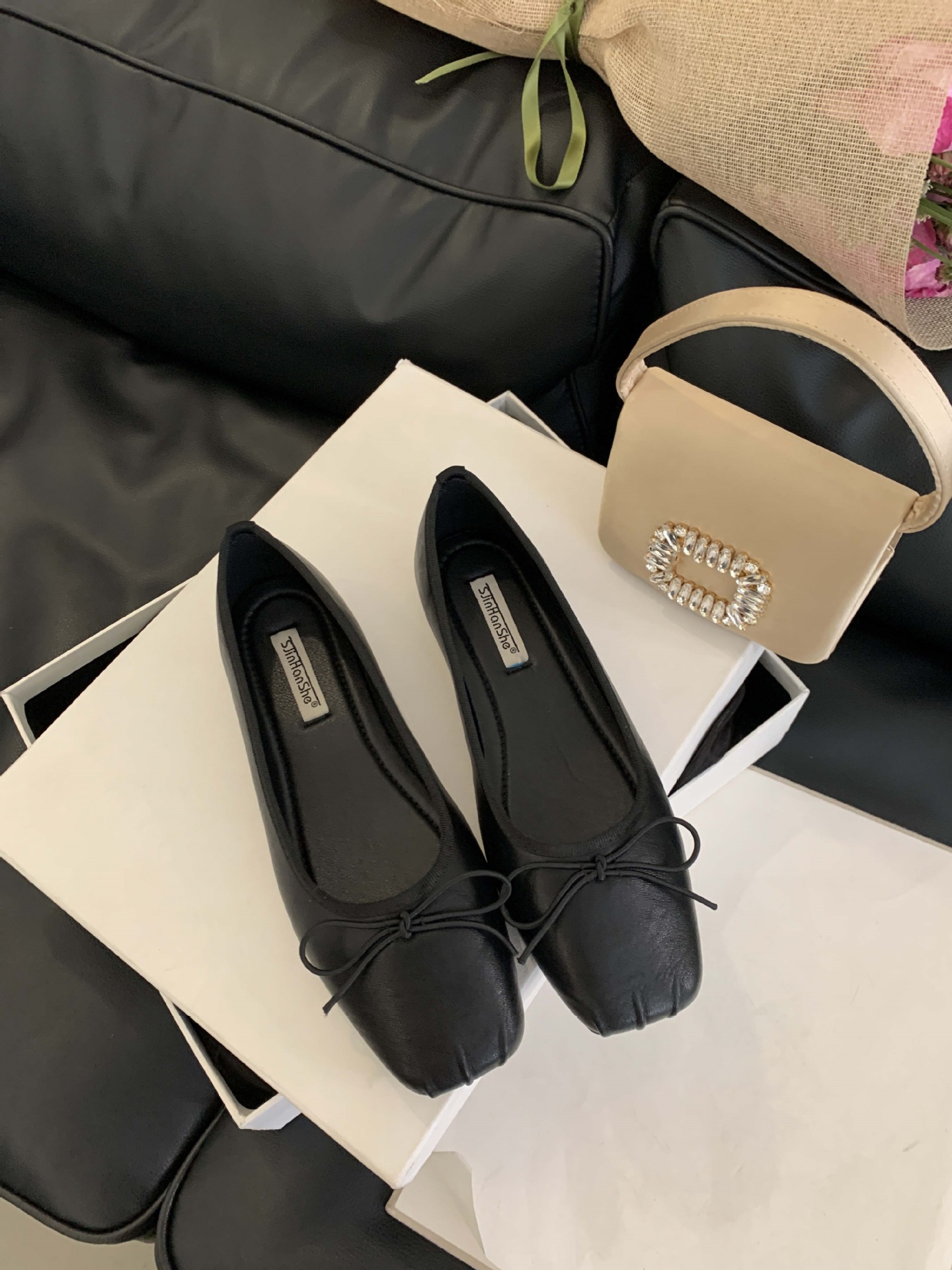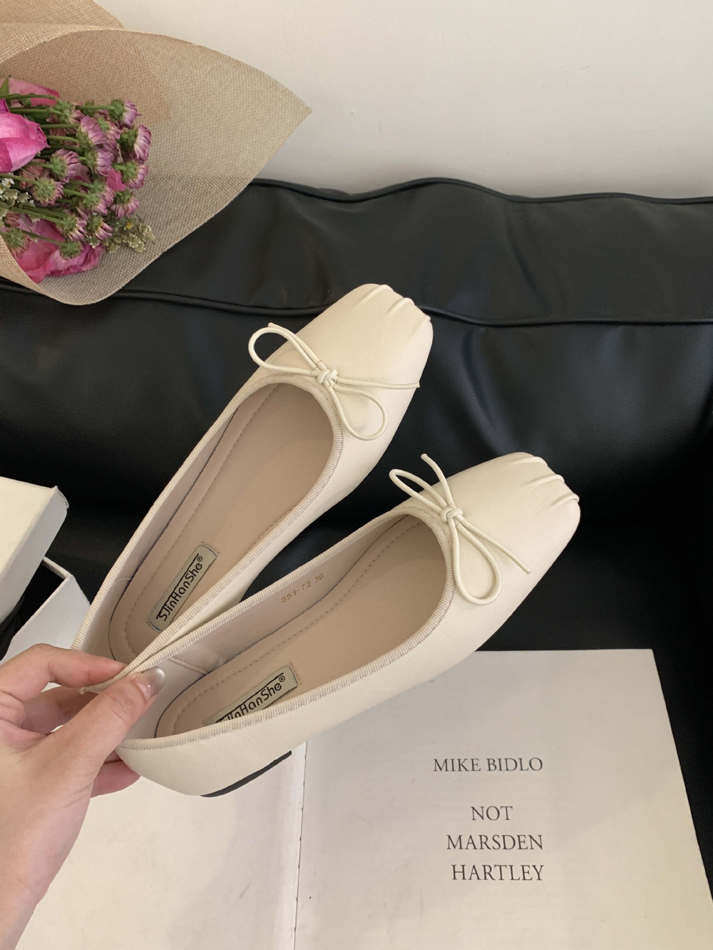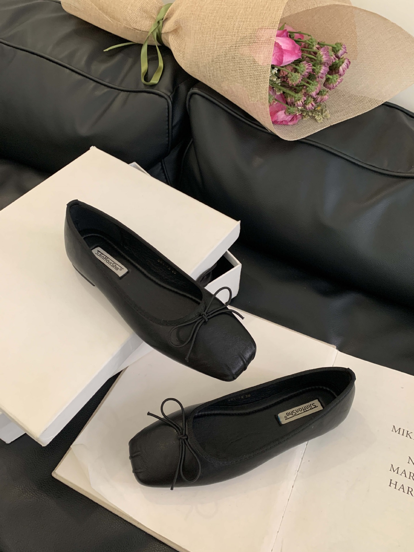 2025 년 이른 봄 새로운 한국 스타일 스타일 활 주름 광장 발가락 얕은 입 싱글 레이어 신발스토어 가기