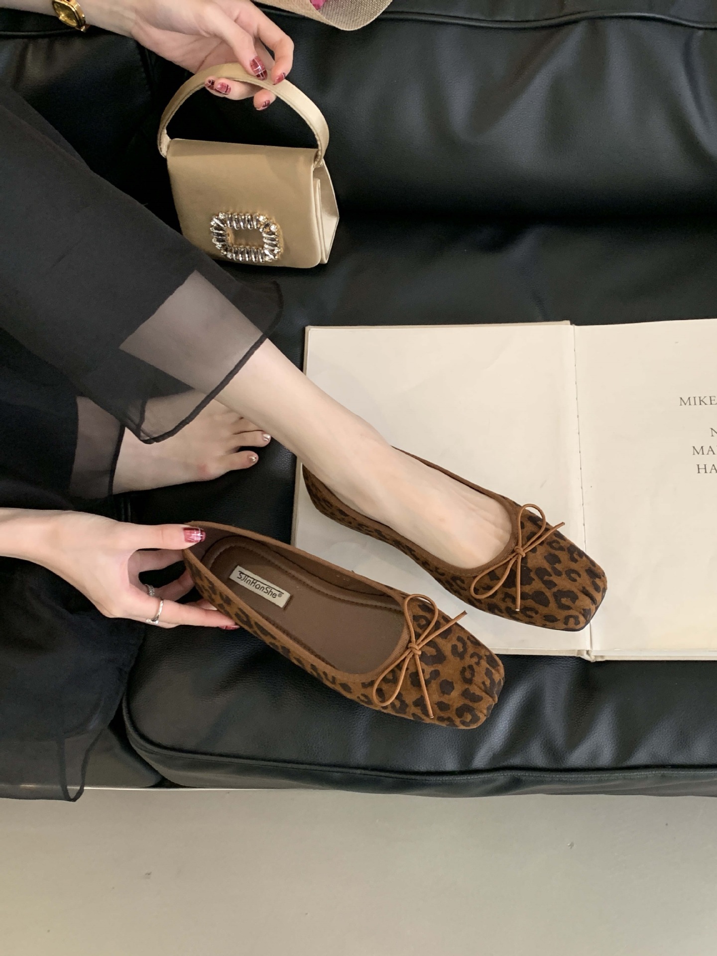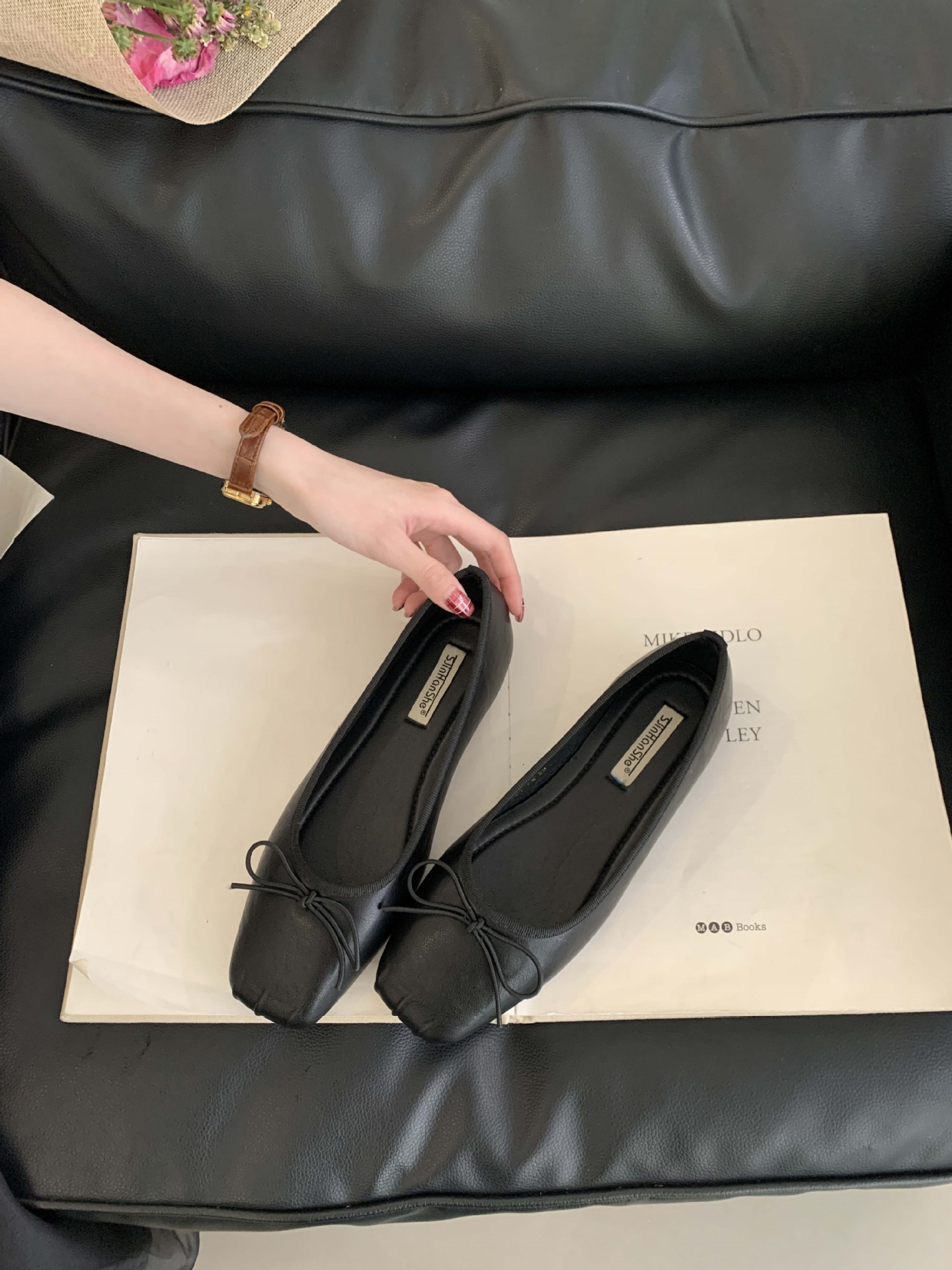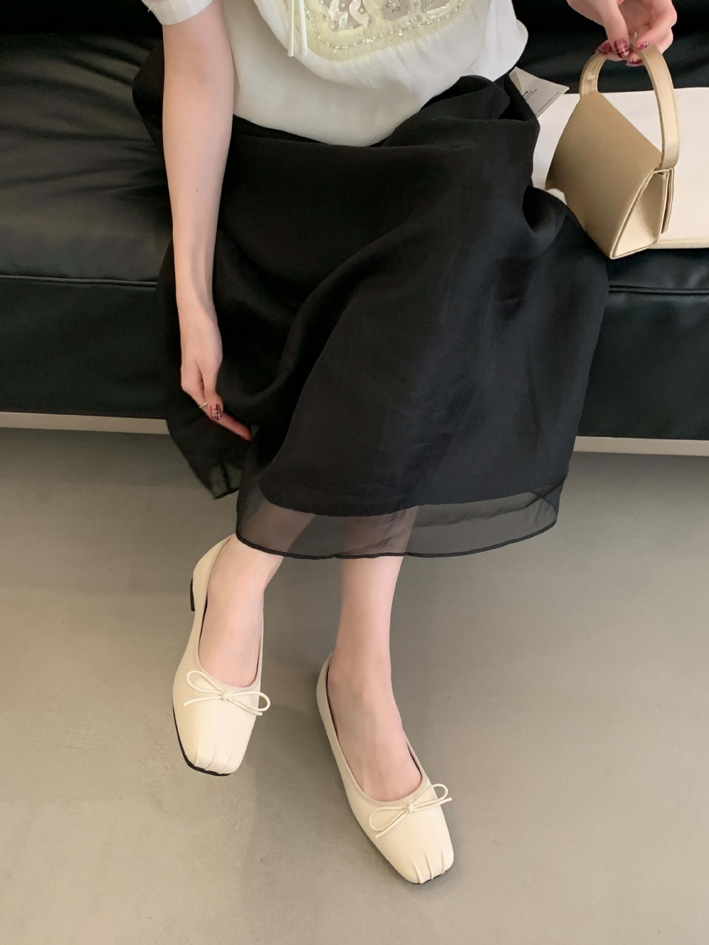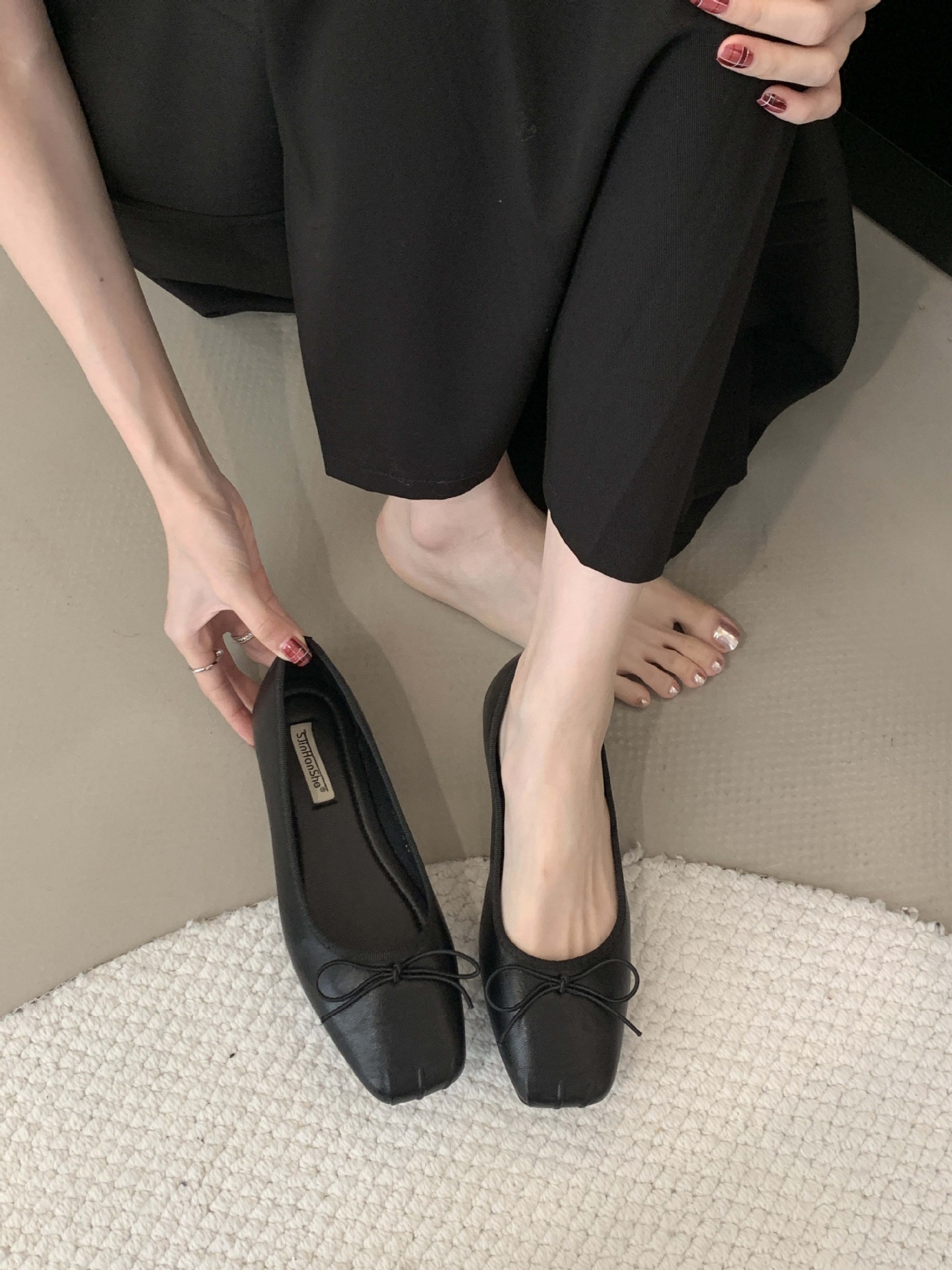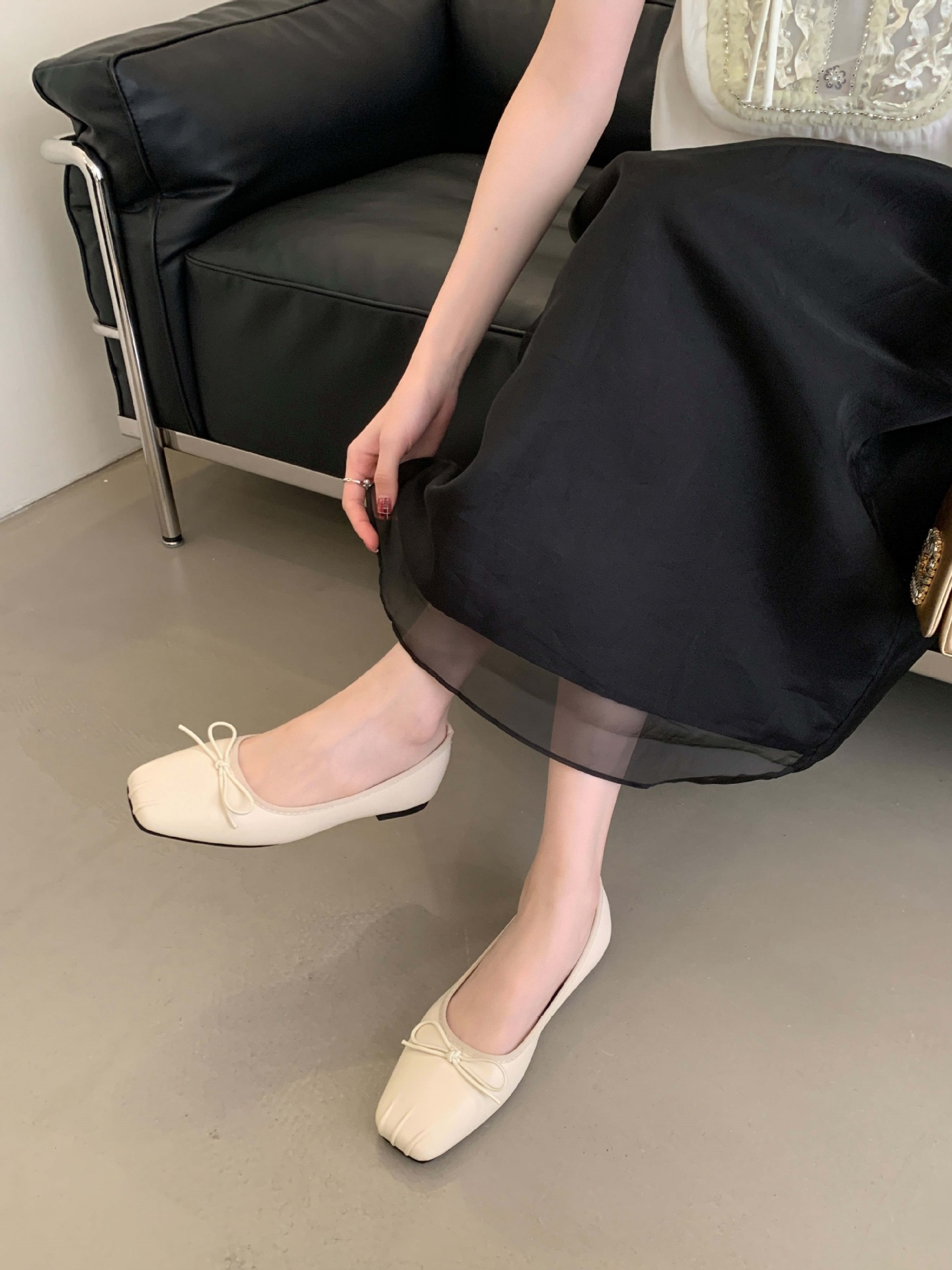 2025 년 이른 봄 새로운 한국 스타일 스타일 활 주름 광장 발가락 얕은 입 싱글 레이어 신발