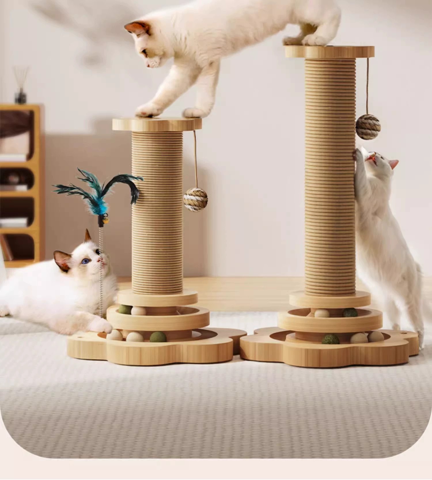• [원목 모델과 품질을 위한 첫 번째 선택! 】4-in-1 고양이 긁는 기둥