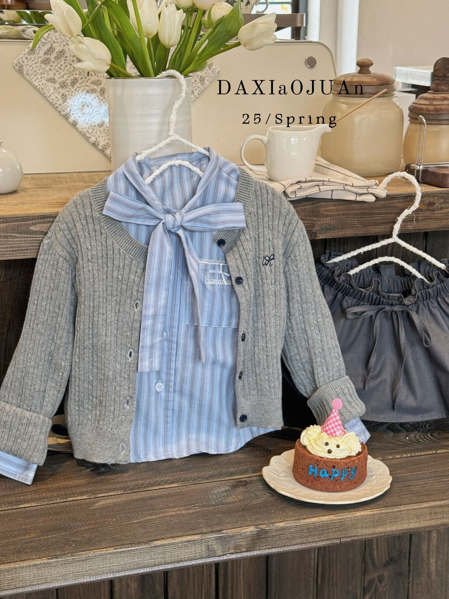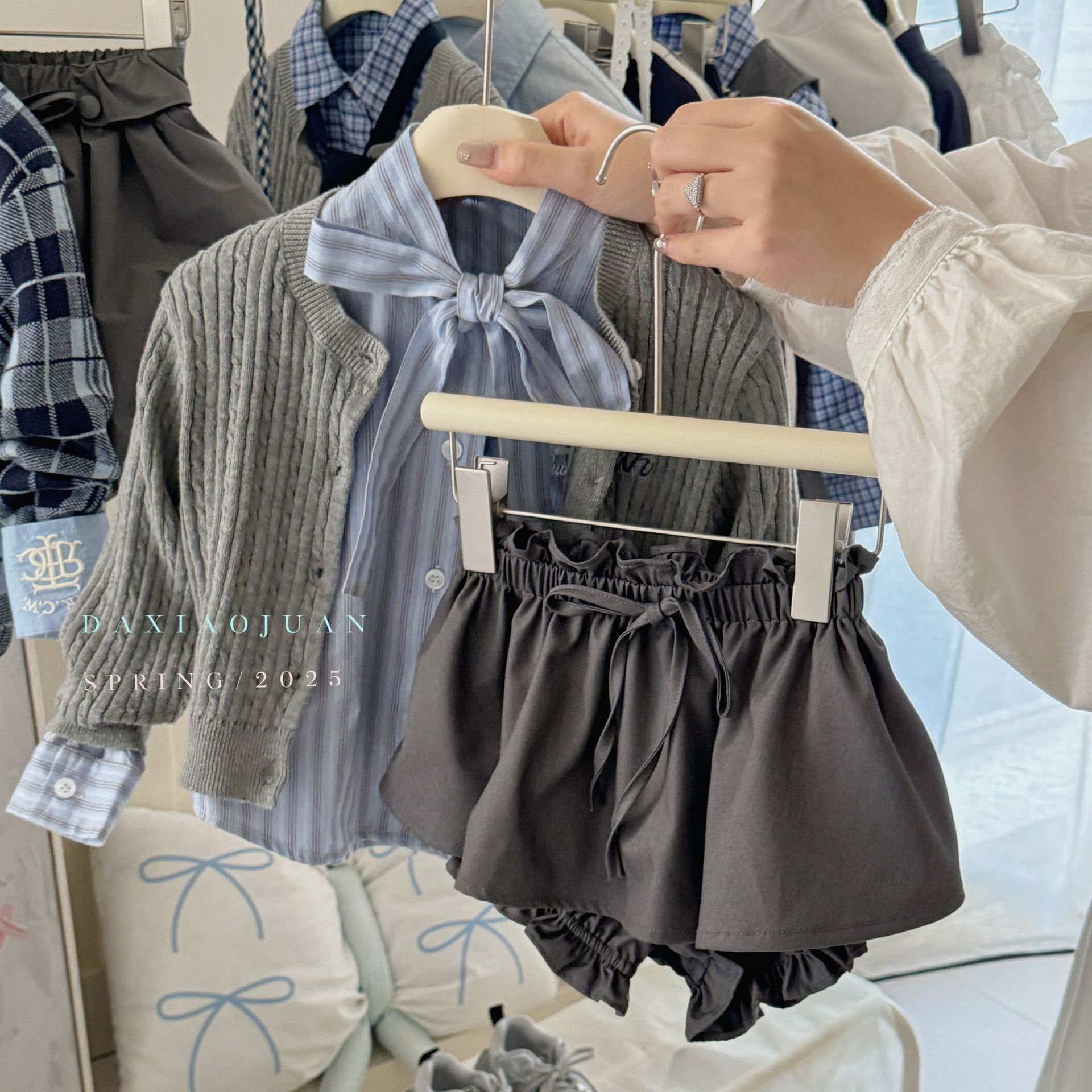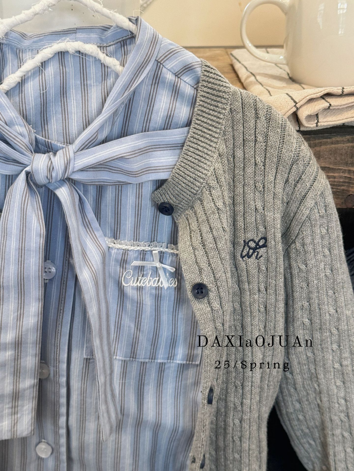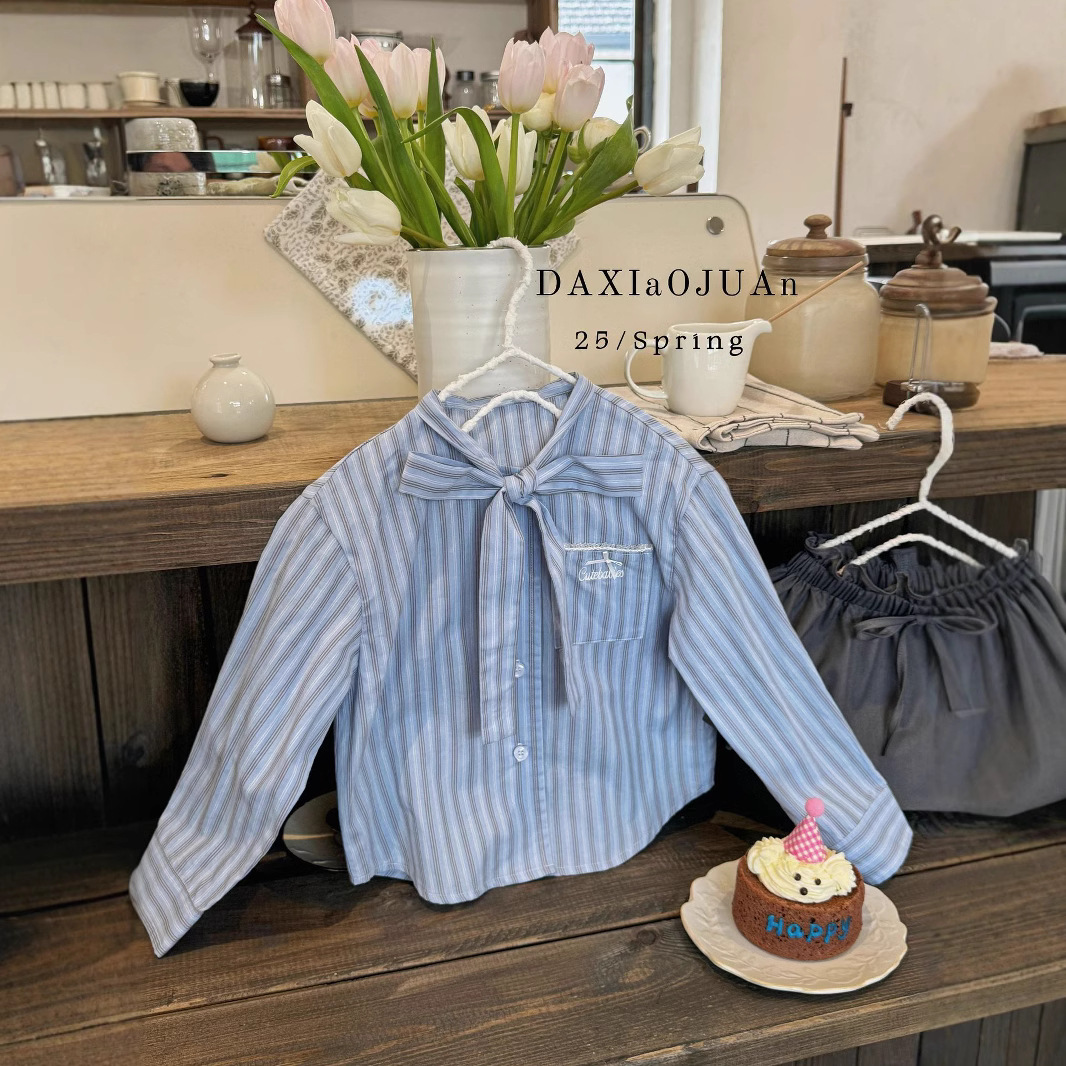 작고 작은 롤 소녀의 인쇄 된 줄무늬 셔츠 2025 봄 새로운 어린이 세련 된 느슨한 유행 셔츠스토어 가기