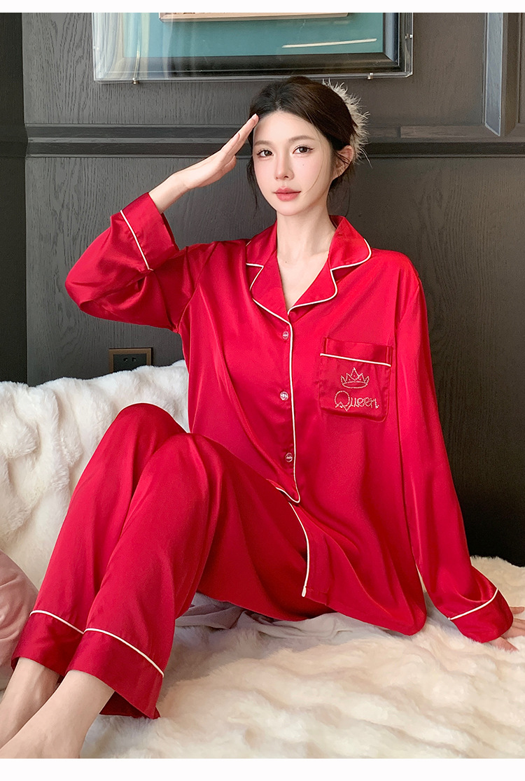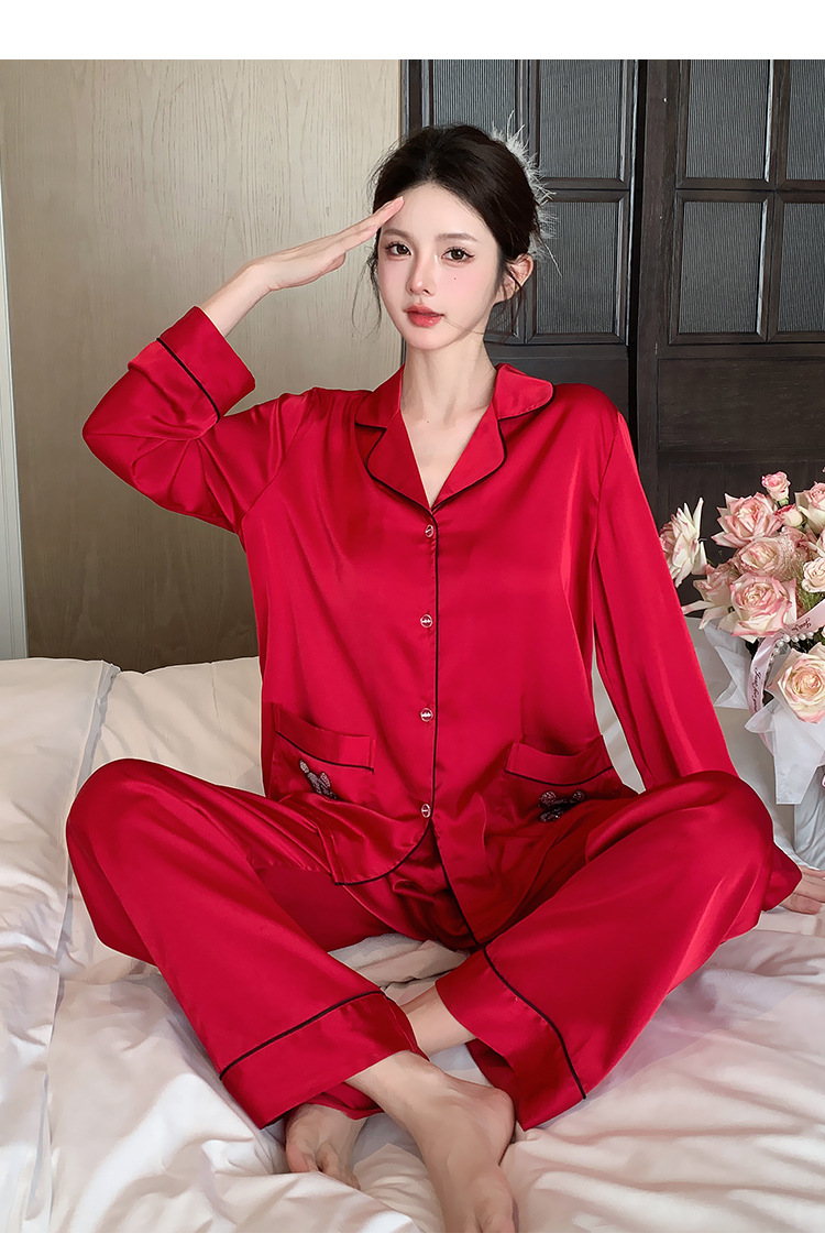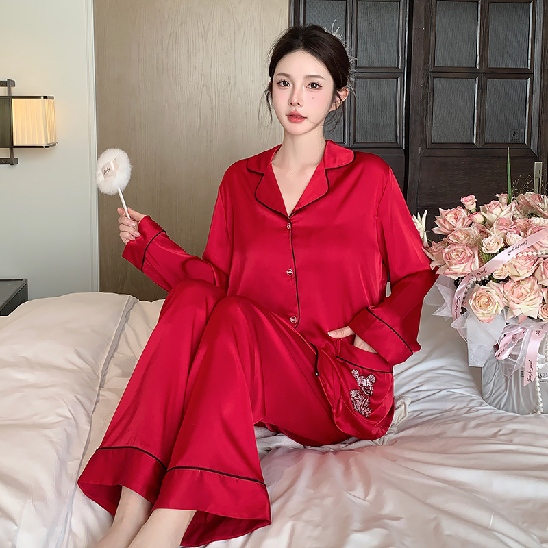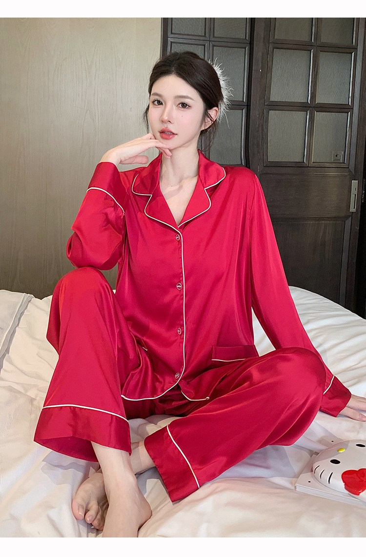봄 새로운 잠옷 단색 고급 핫 긴팔 바지스토어 가기