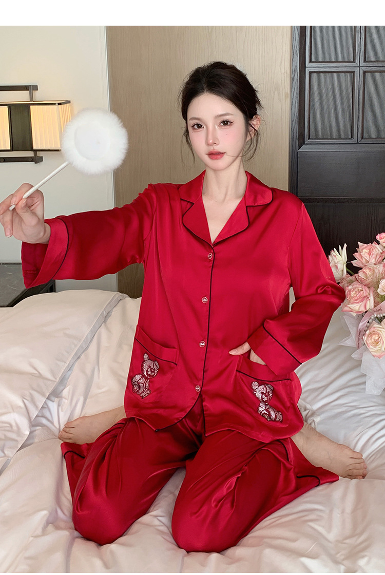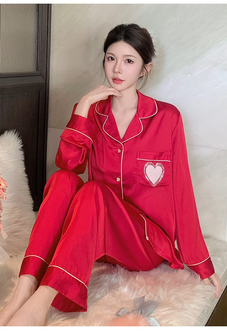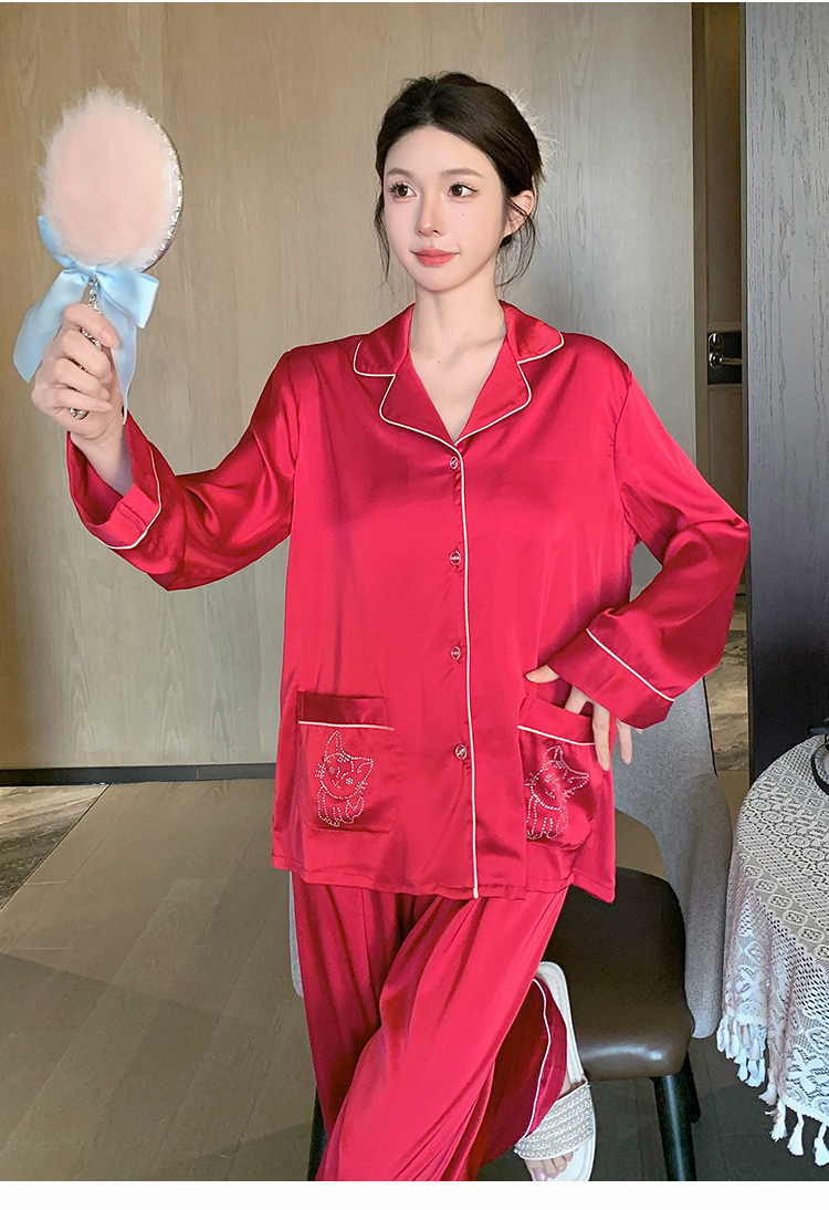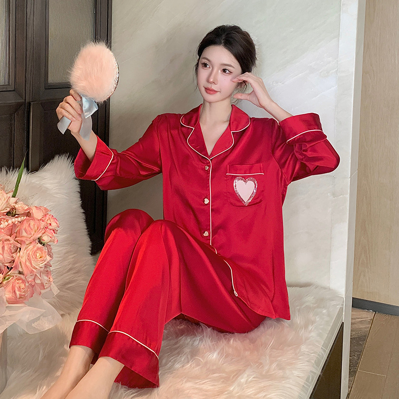 봄 새로운 잠옷 단색 고급 핫 긴팔 바지스토어 가기