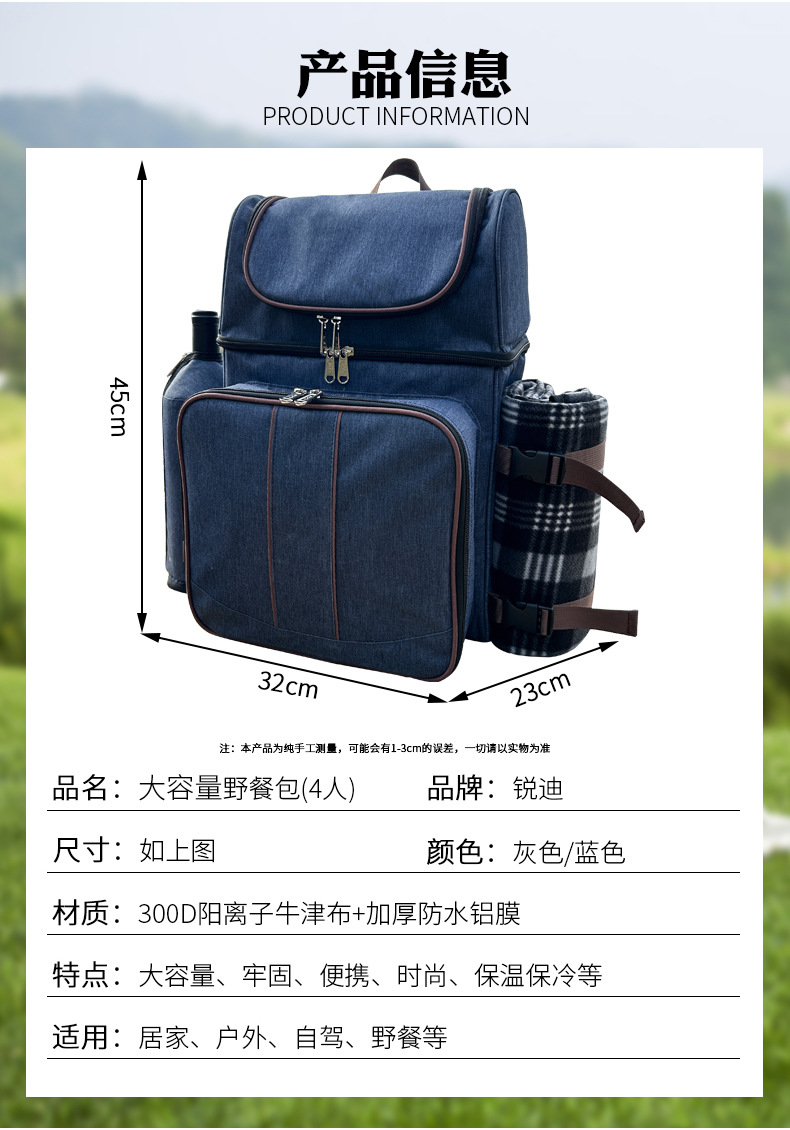 국경을 넘는 신형 두꺼운 피크닉 가방 야외 캠핑 보온 휴대용 배낭 대용량 아이스백스토어 가기