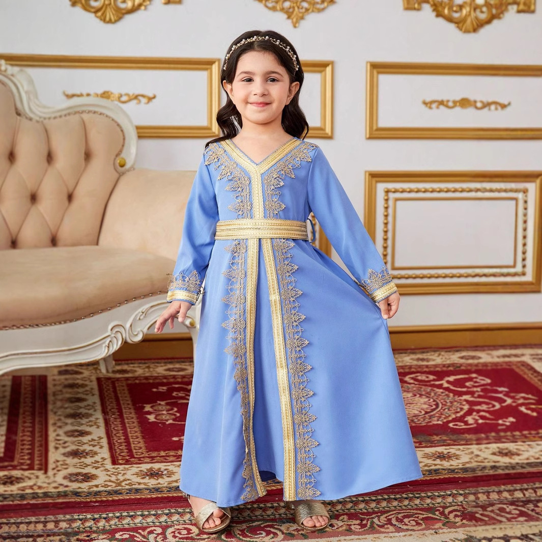 중동 아랍 어린이 로브 벨트 원피스 국경 간 소녀 대외 무역 두바이 소녀 레이스 원피스 V-Neck스토어 가기
